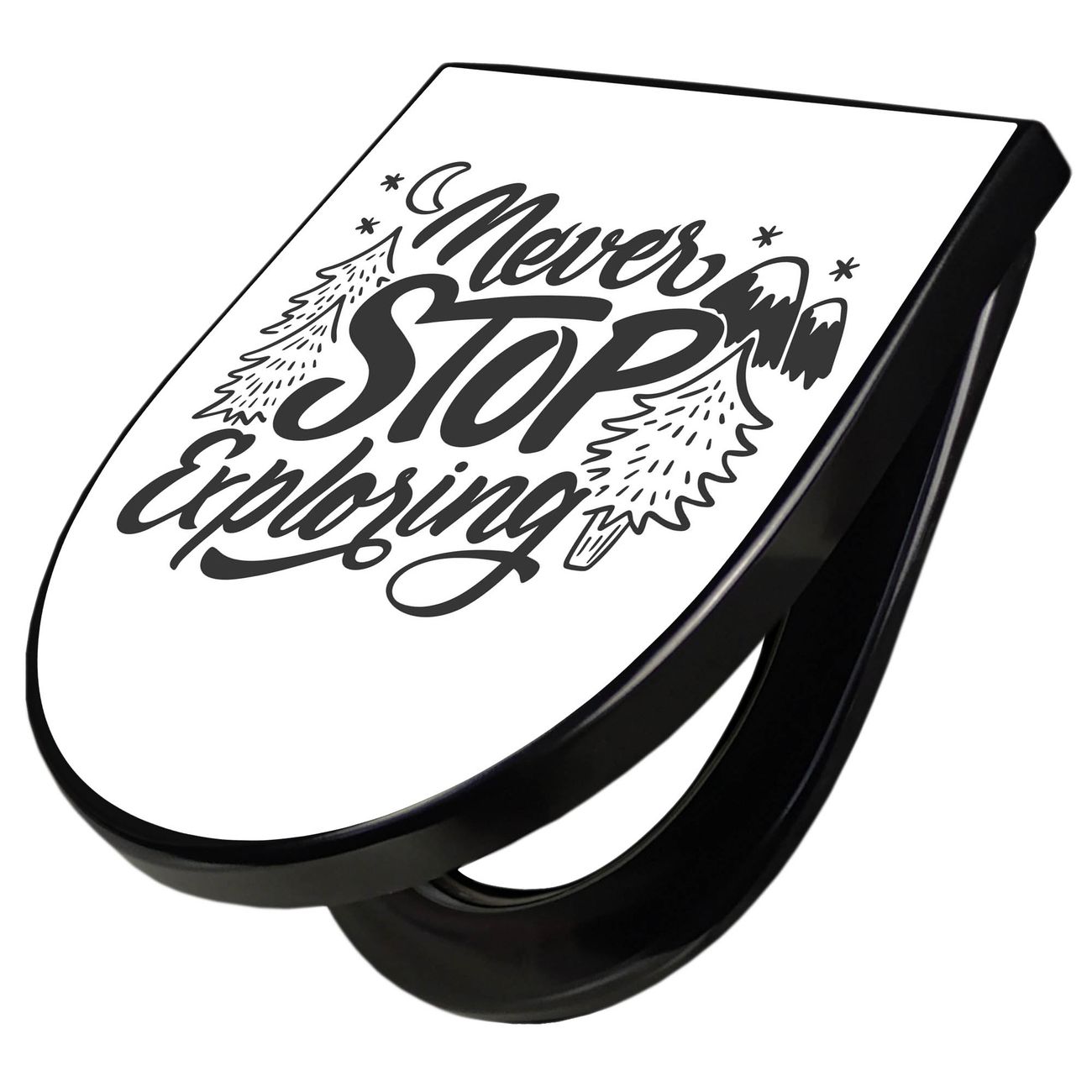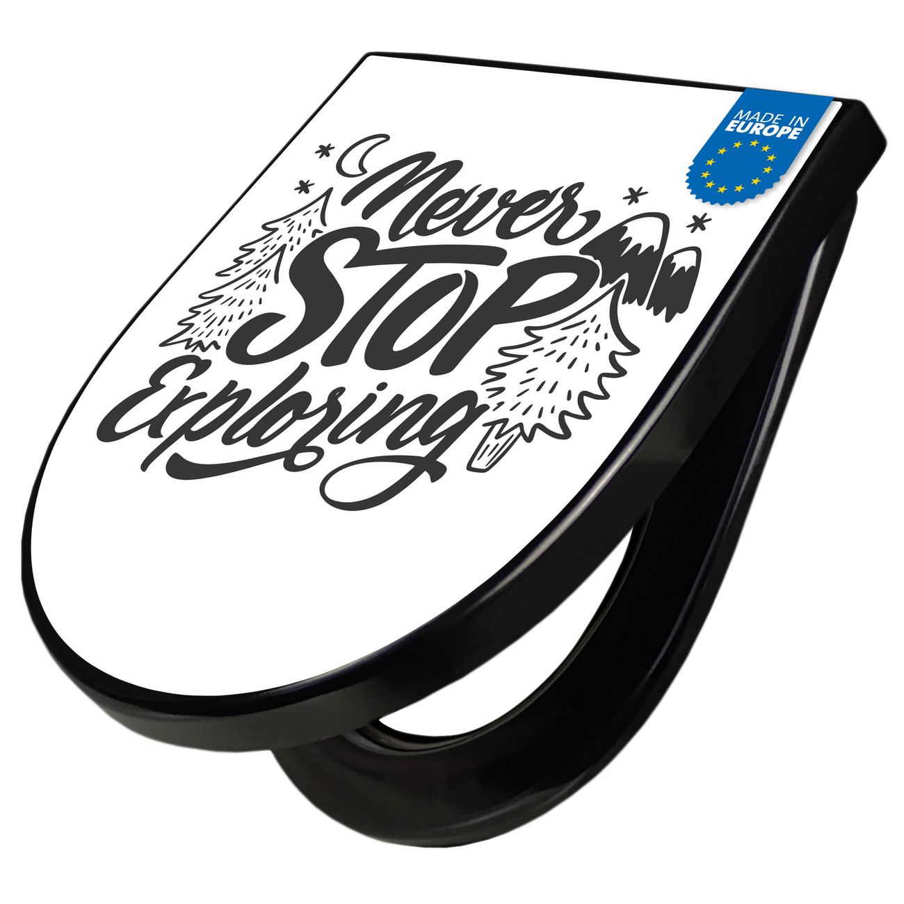 WC Sitz D-Form Schwarz mit Absenkautomatik Motiv Never stop Exploring