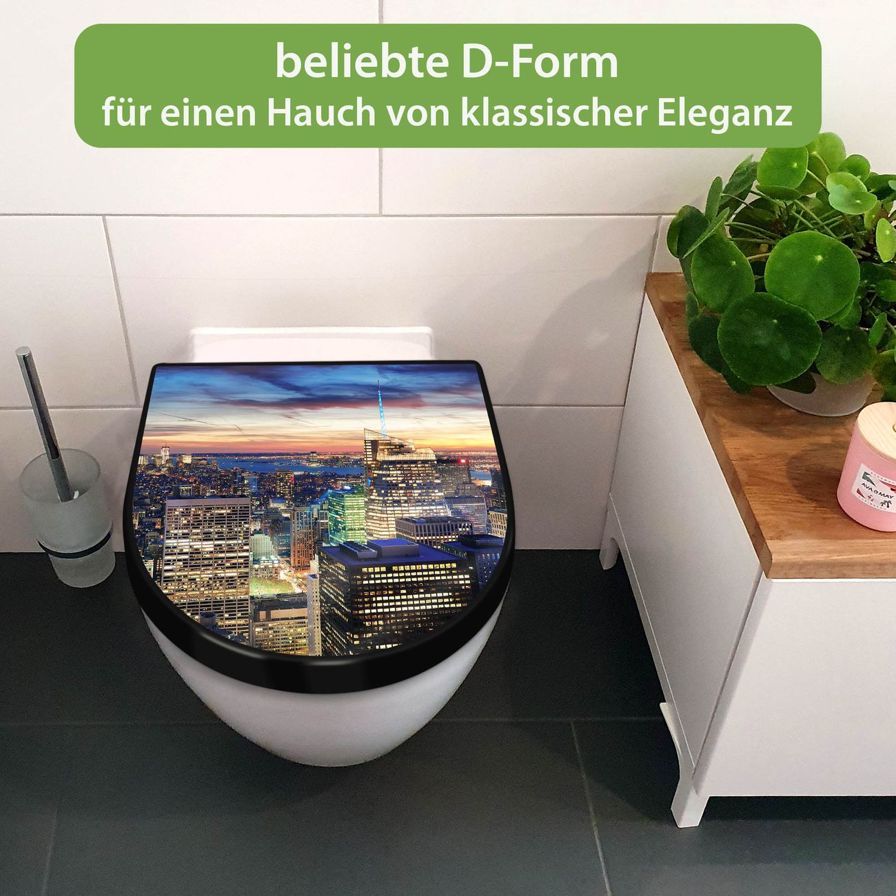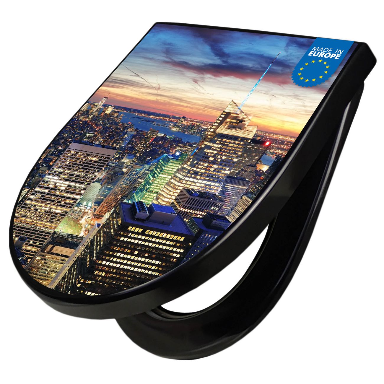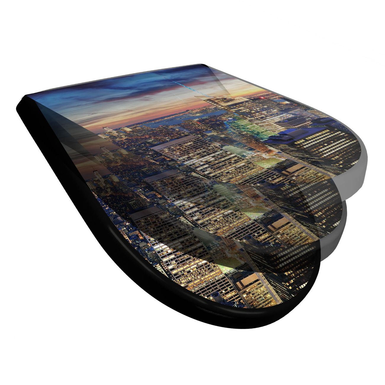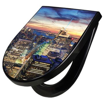 WC Sitz D-Form Schwarz mit Absenkautomatik Motiv New York Sunset