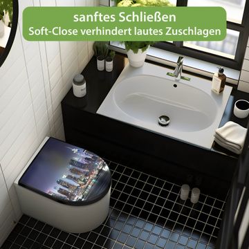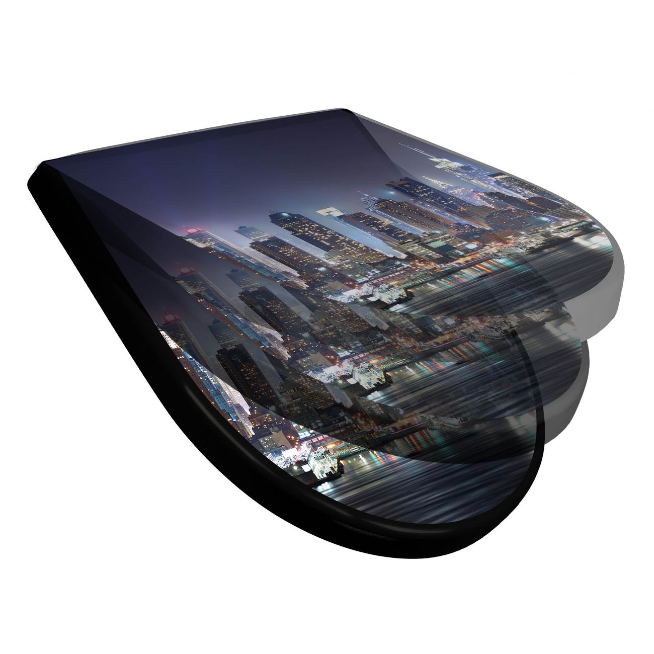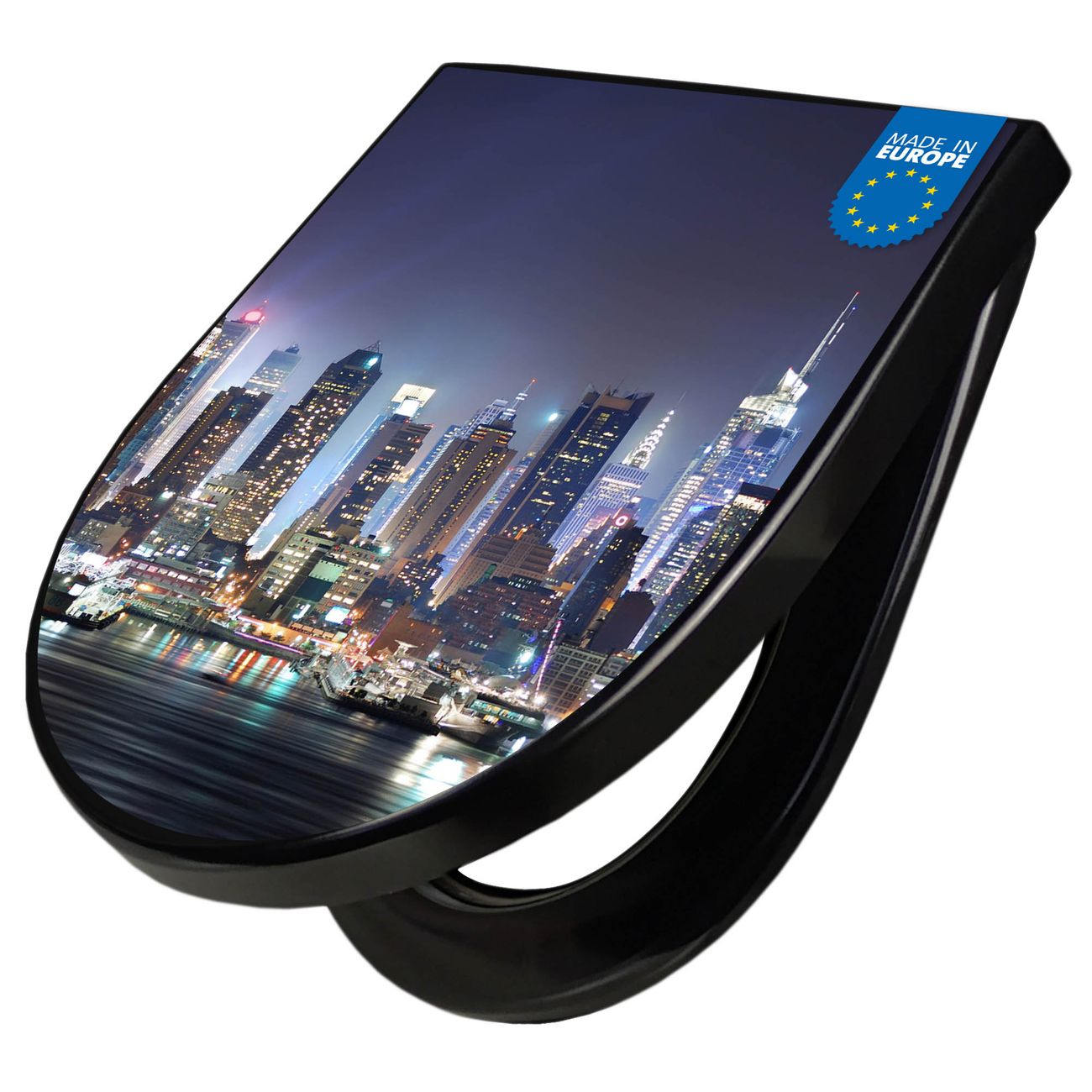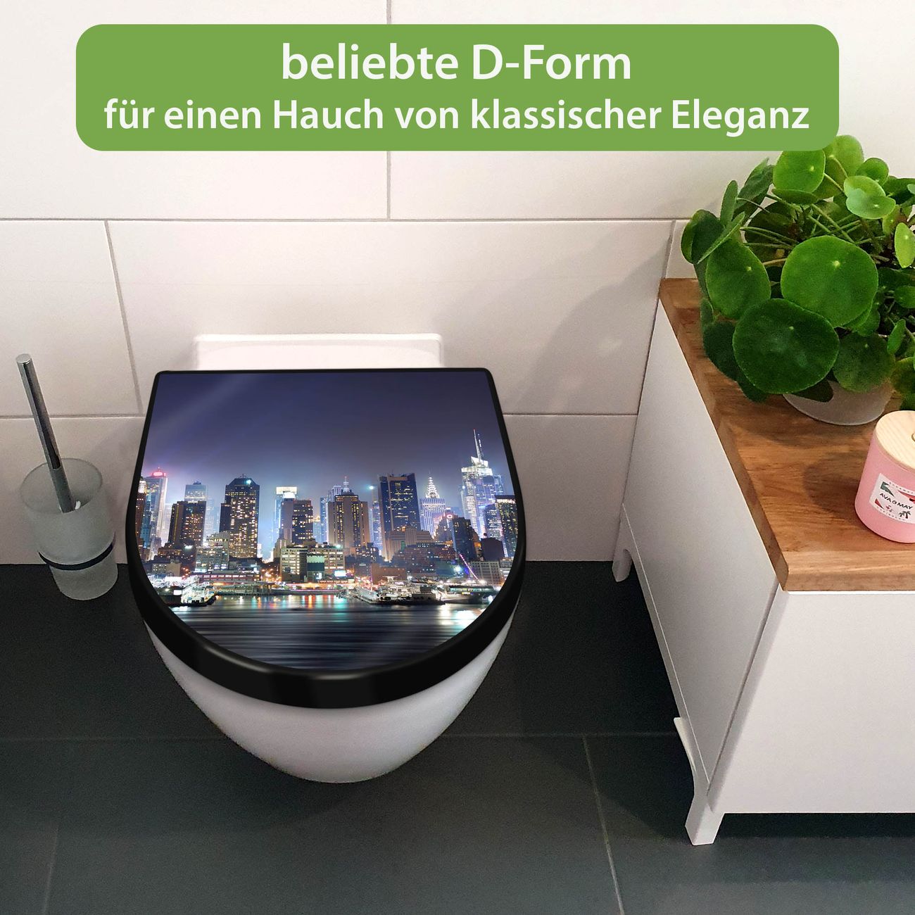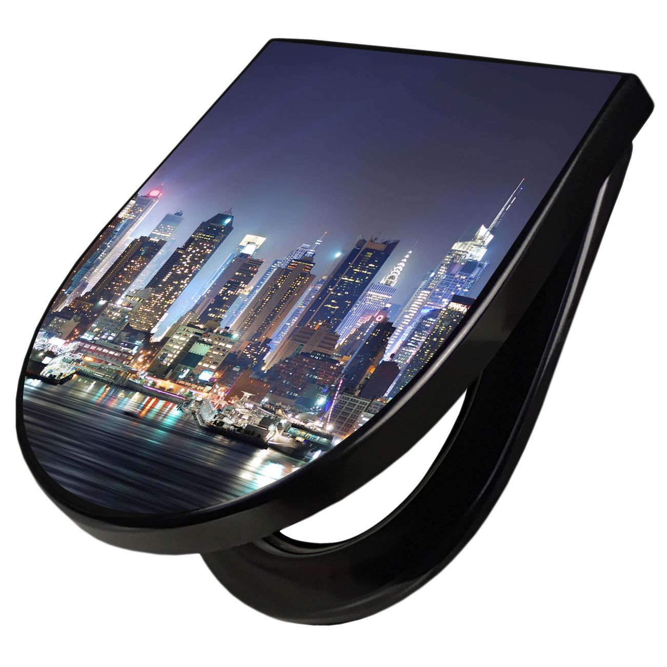 WC Sitz D-Form Schwarz mit Absenkautomatik Motiv New York