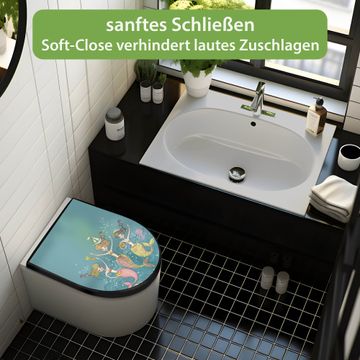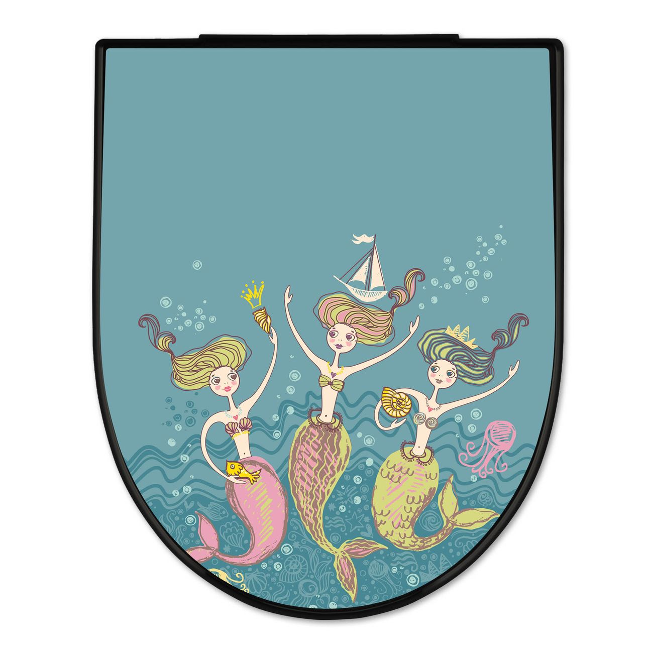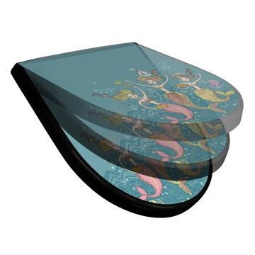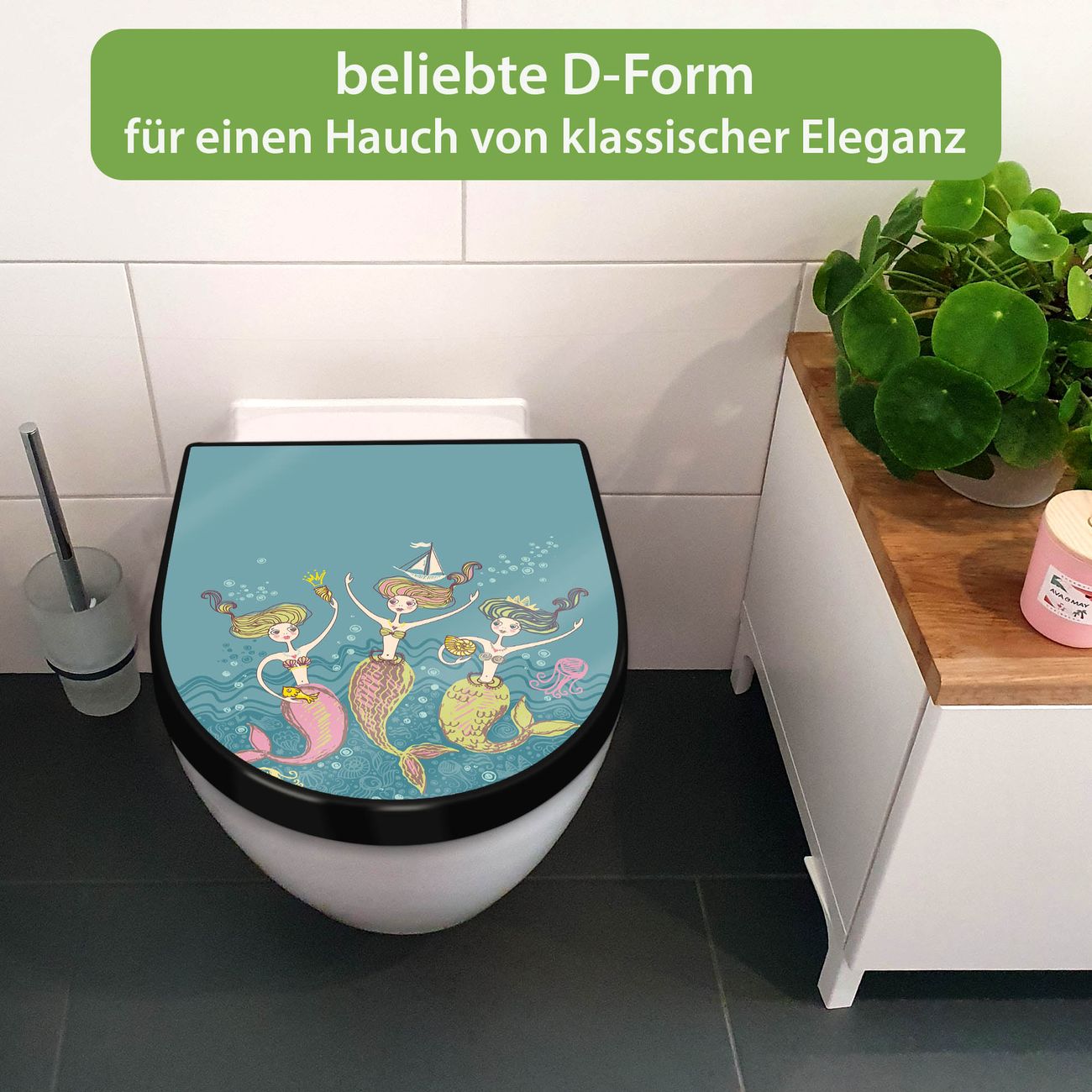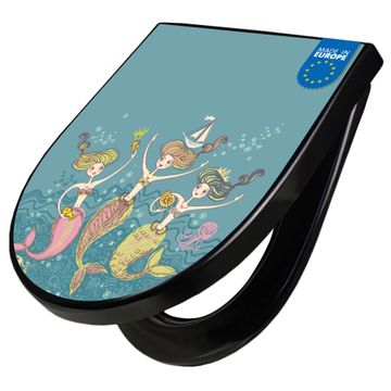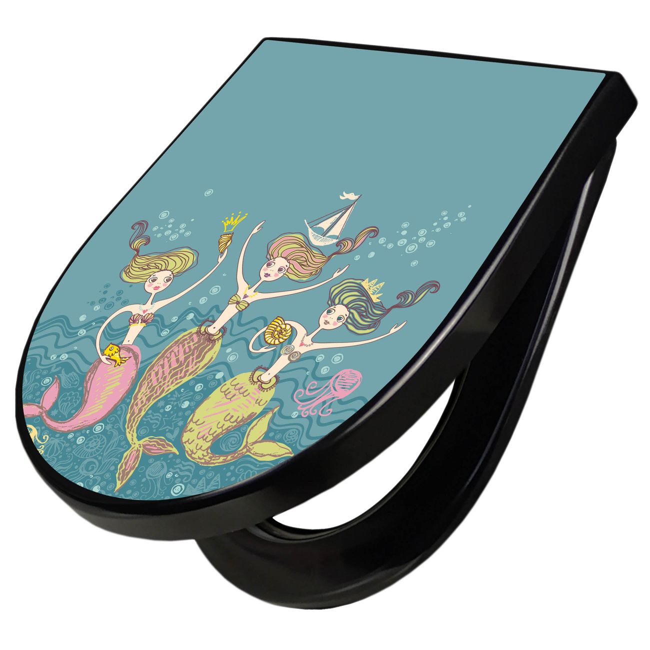 WC Sitz D-Form Schwarz mit Absenkautomatik Motiv Nixen