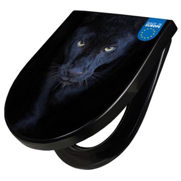 WC Sitz D-Form Schwarz mit Absenkautomatik Motiv Nora
