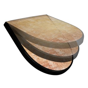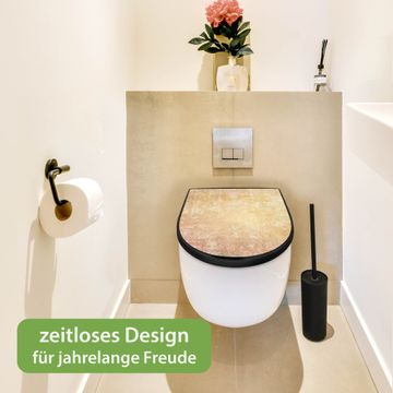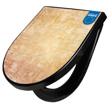 WC Sitz D-Form Schwarz mit Absenkautomatik Motiv Nostalgische Tapetenstruktur