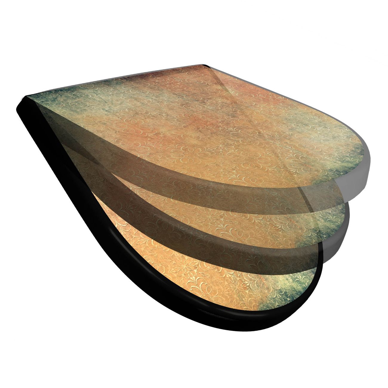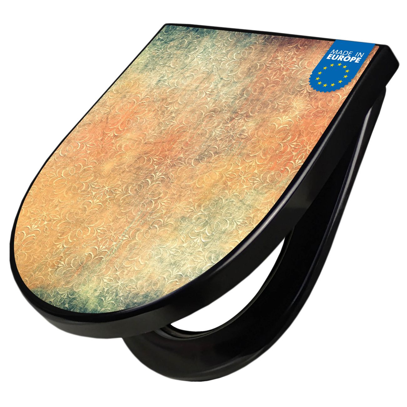 WC Sitz D-Form Schwarz mit Absenkautomatik Motiv Nostalgisches Muster