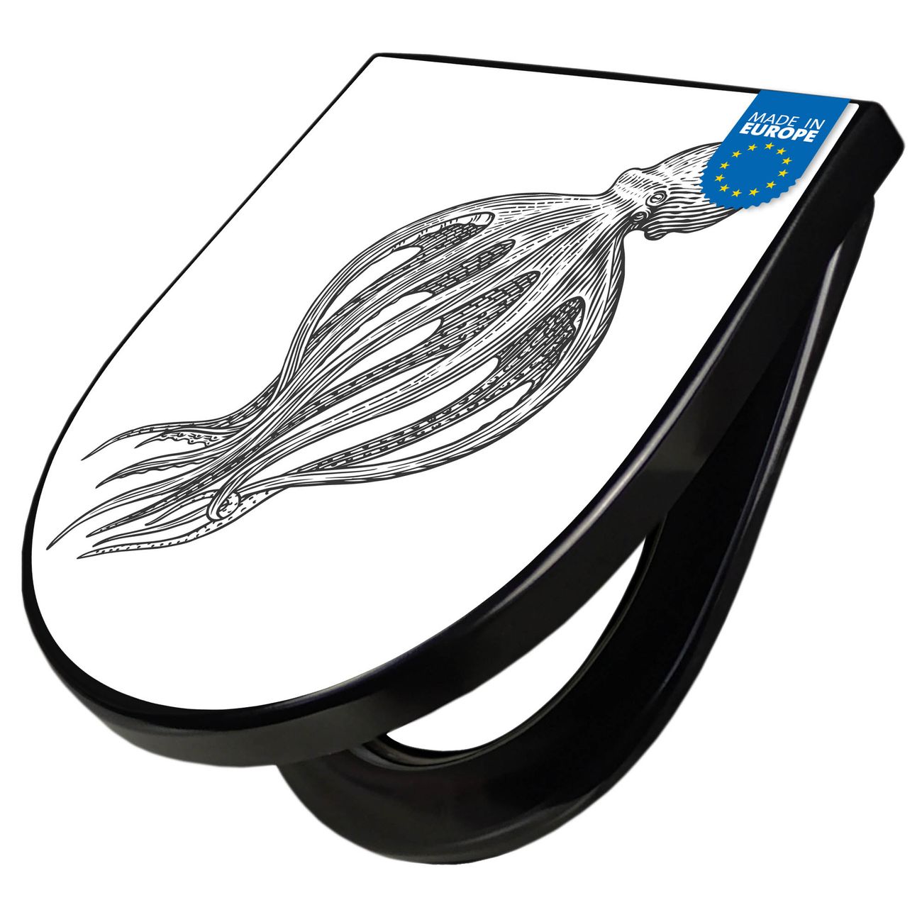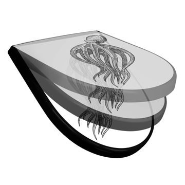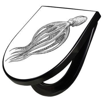 WC Sitz D-Form Schwarz mit Absenkautomatik Motiv Oktopus 8