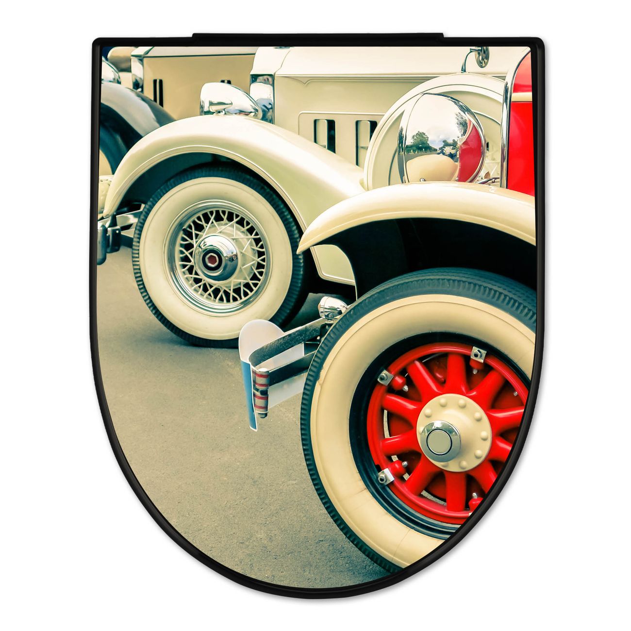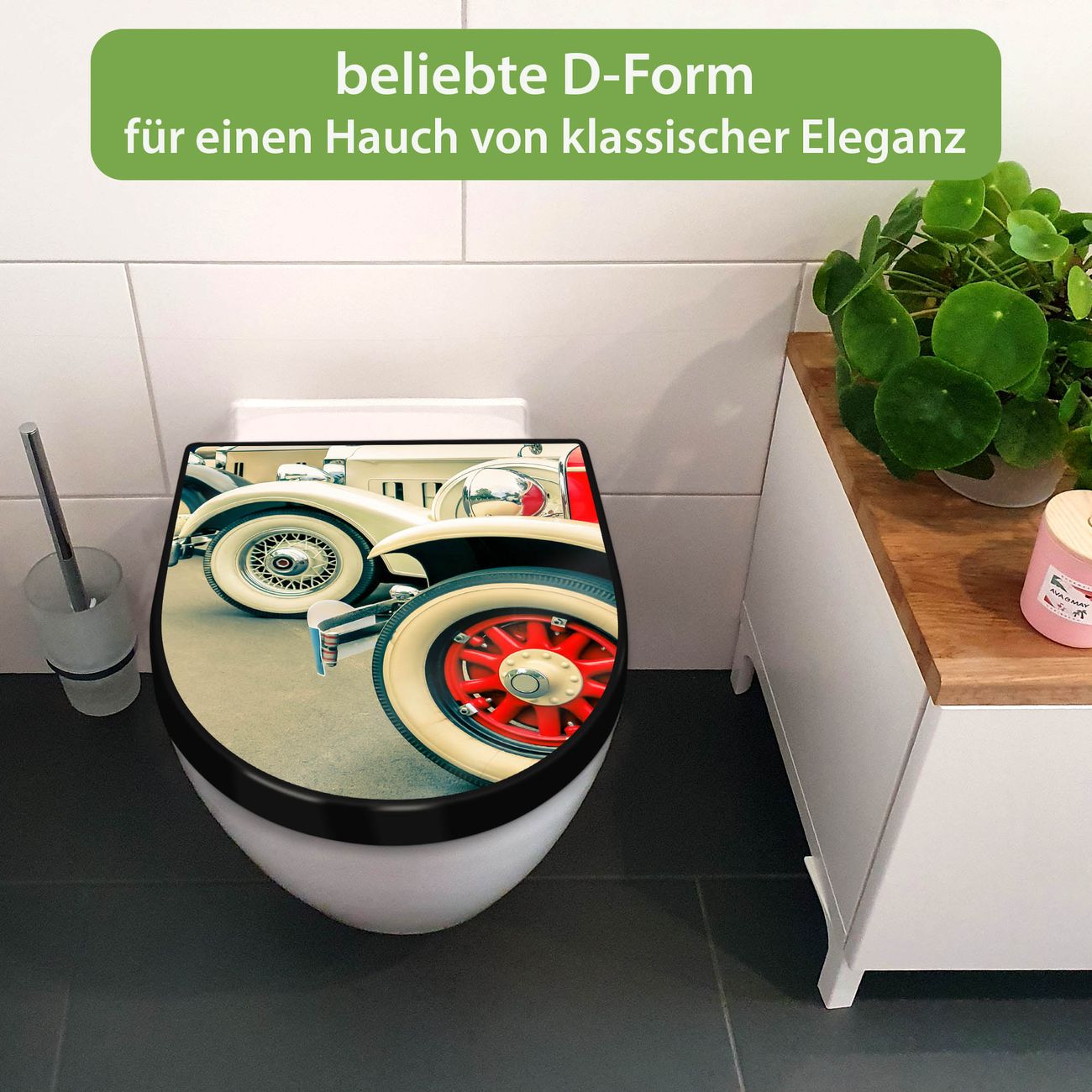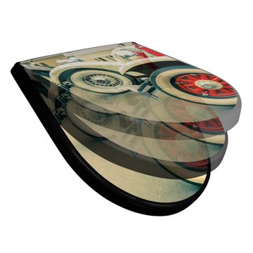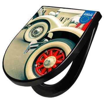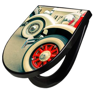 WC Sitz D-Form Schwarz mit Absenkautomatik Motiv Oldtimer Räder
