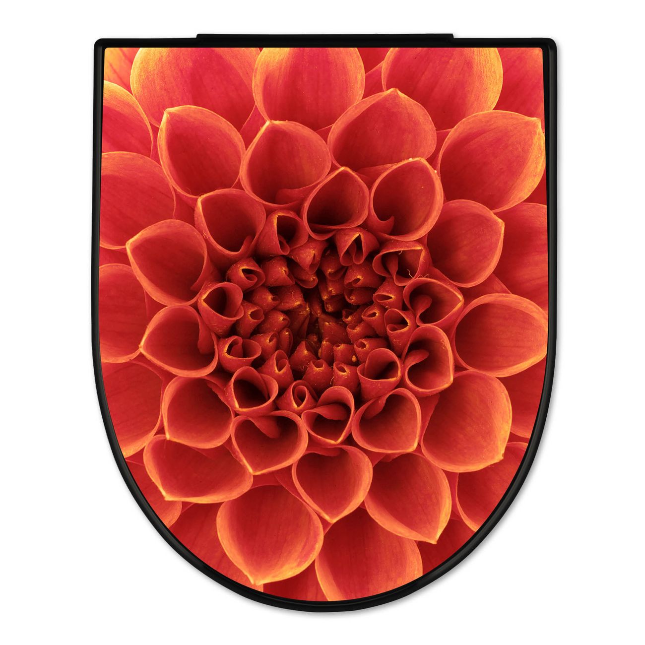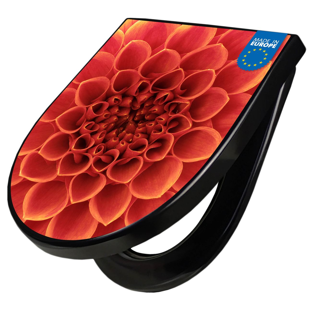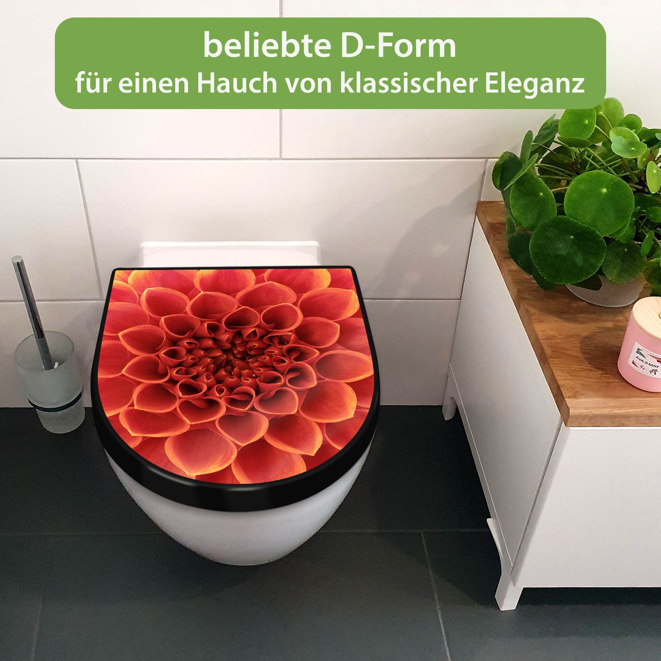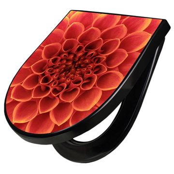 WC Sitz D-Form Schwarz mit Absenkautomatik Motiv Orange Chrysantheme