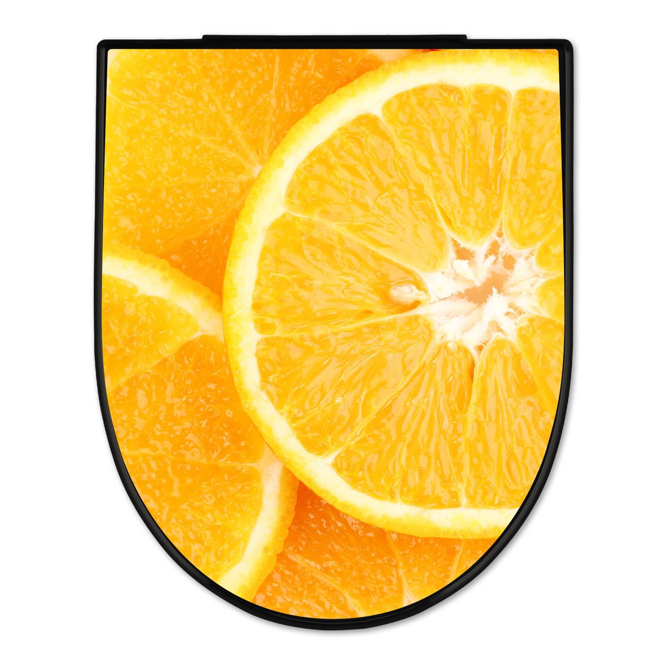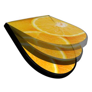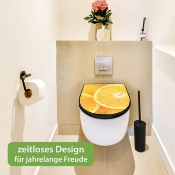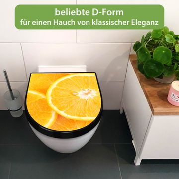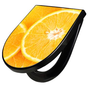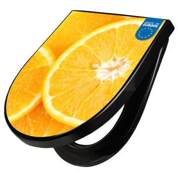 WC Sitz D-Form Schwarz mit Absenkautomatik Motiv Orangenscheiben