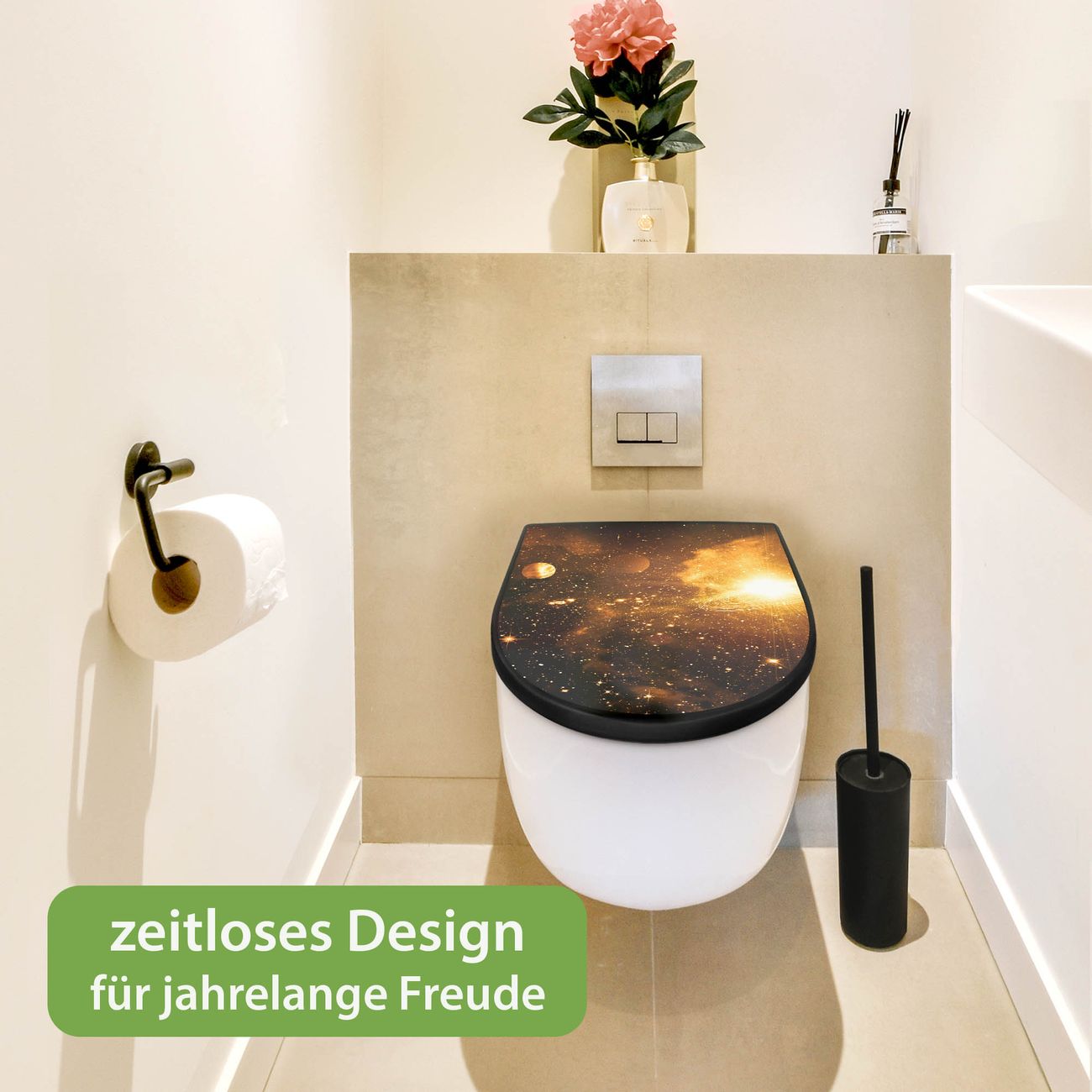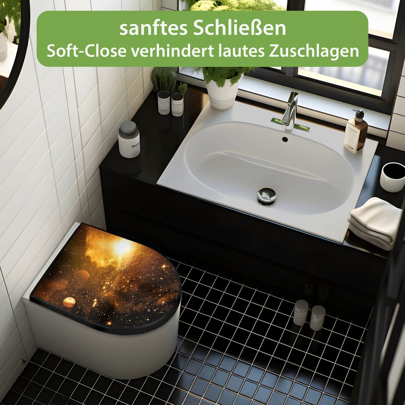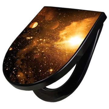 WC Sitz D-Form Schwarz mit Absenkautomatik Motiv Outer Space