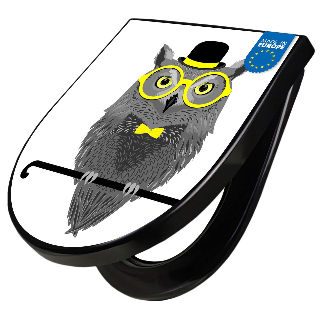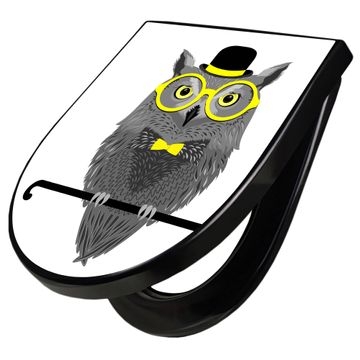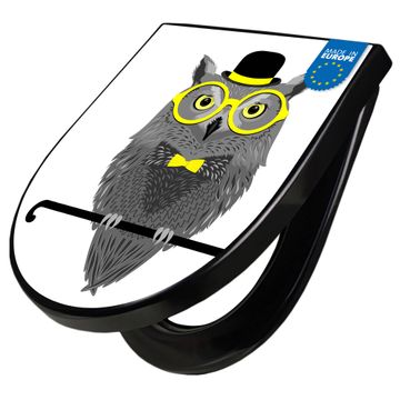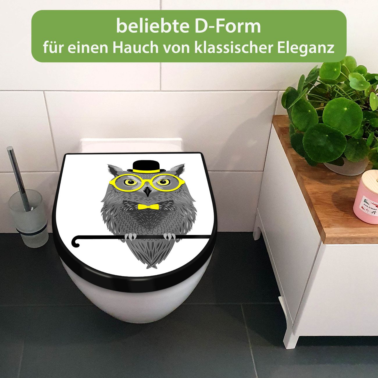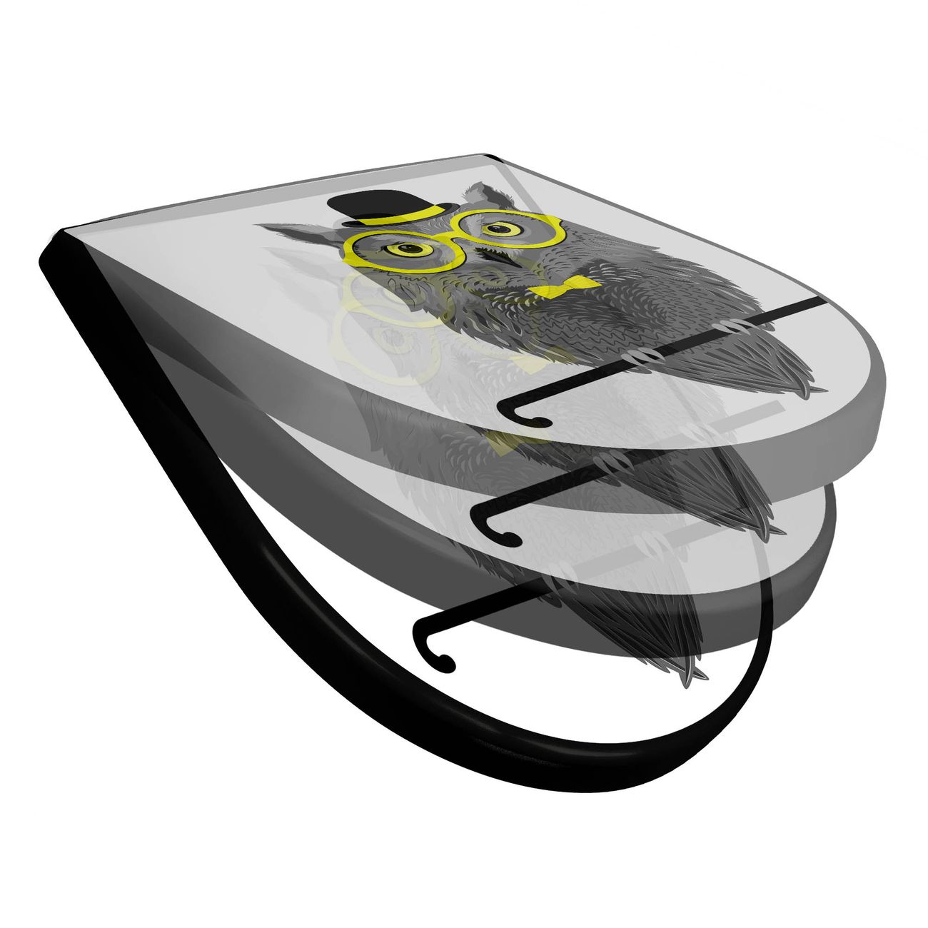 WC Sitz D-Form Schwarz mit Absenkautomatik Motiv Owling