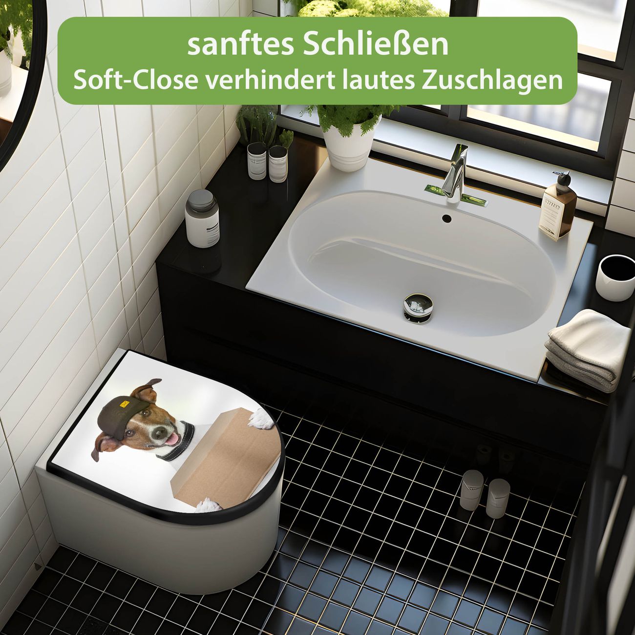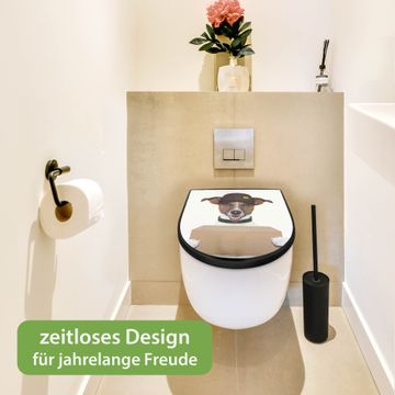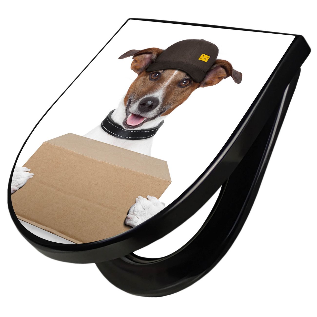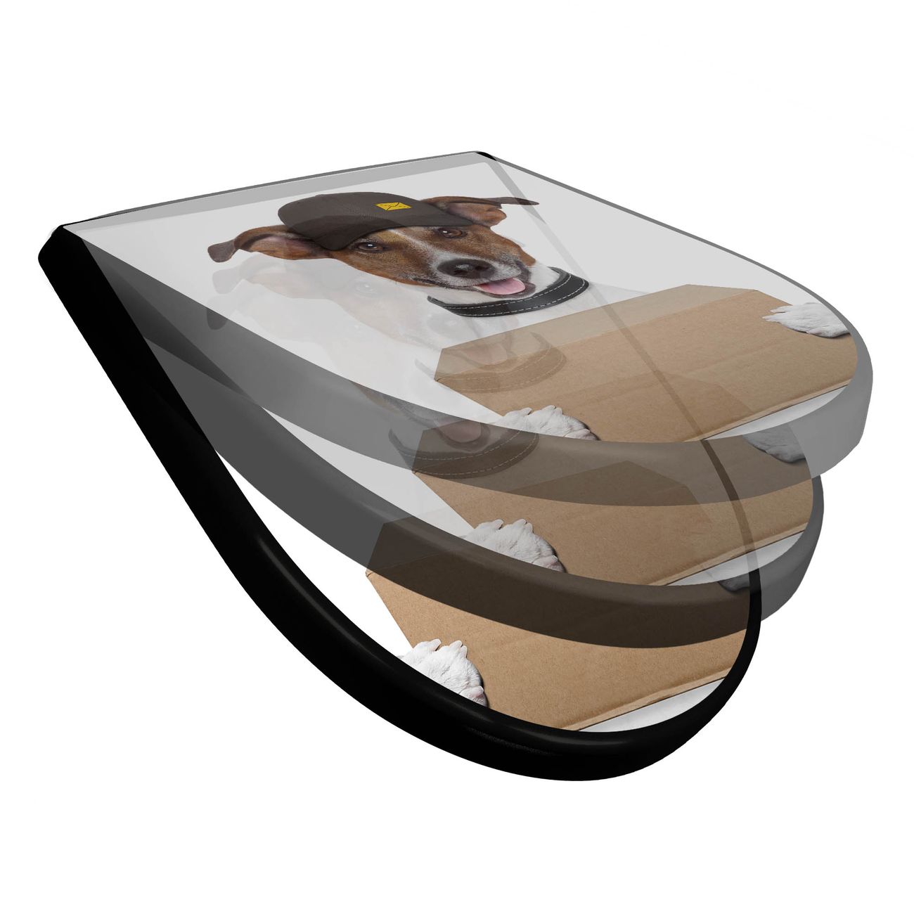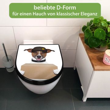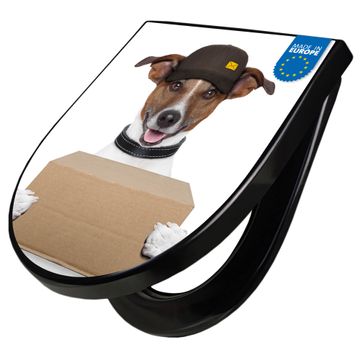 WC Sitz D-Form Schwarz mit Absenkautomatik Motiv Paketdienst Jack Russel