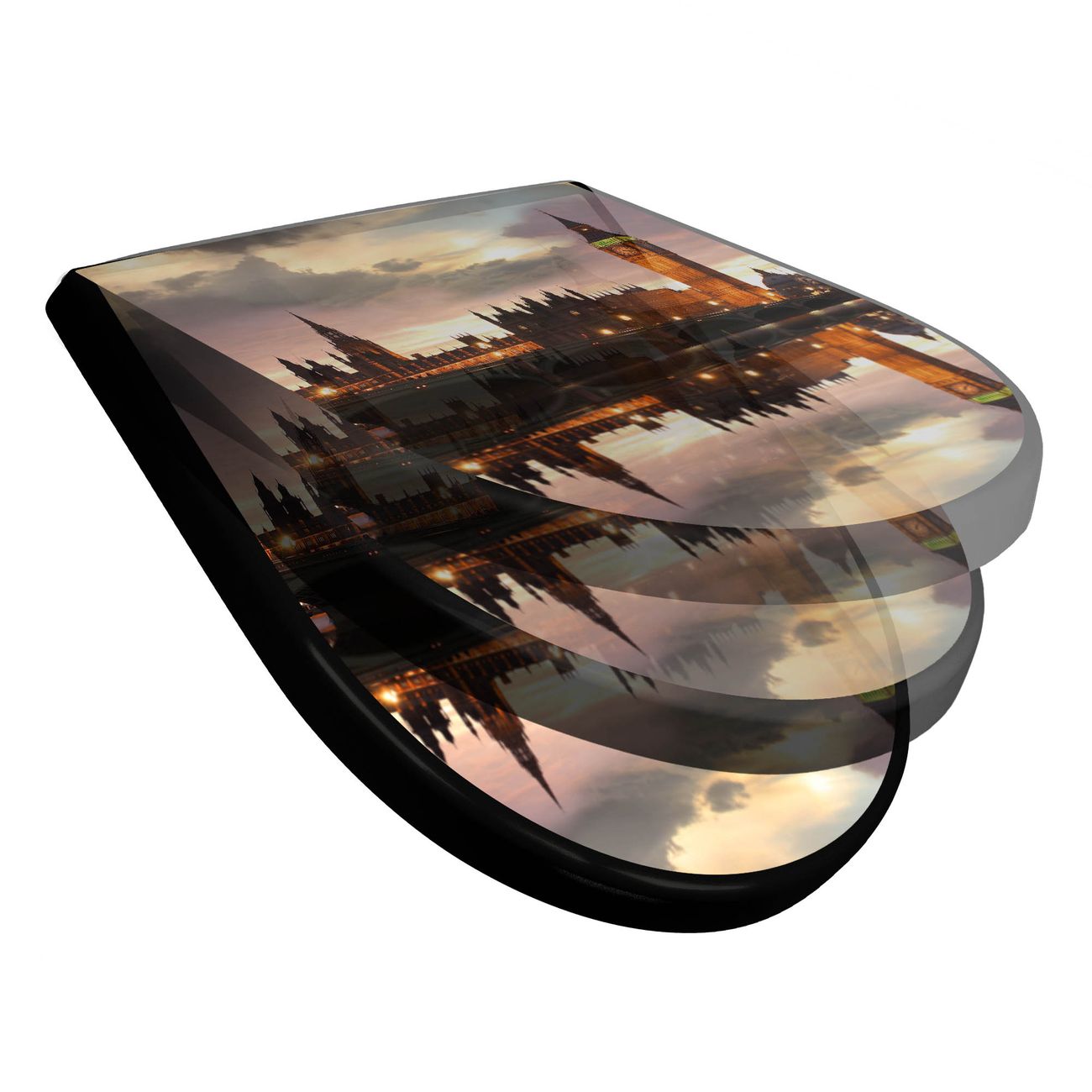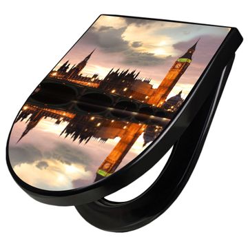 WC Sitz D-Form Schwarz mit Absenkautomatik Motiv Palace of Westminster