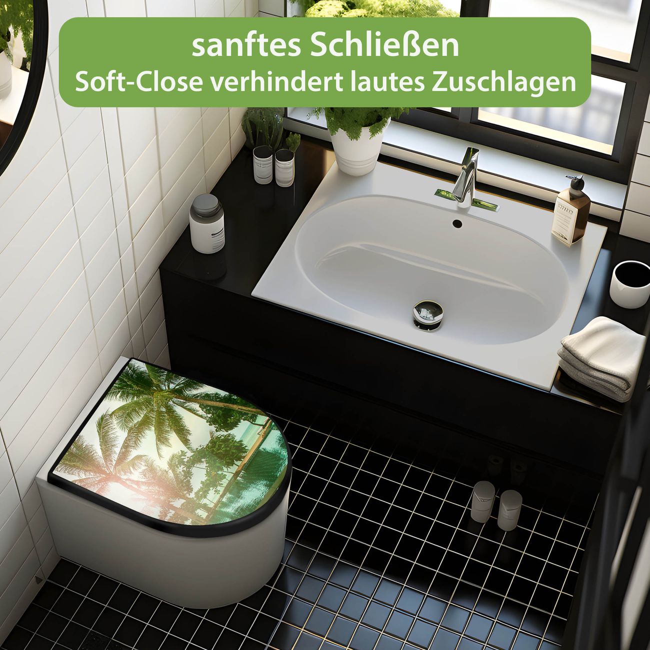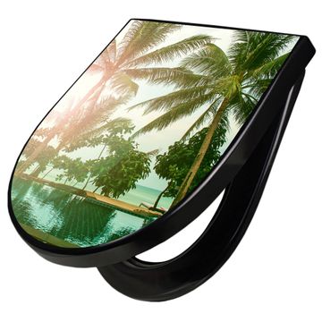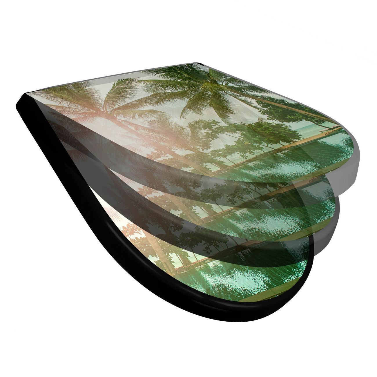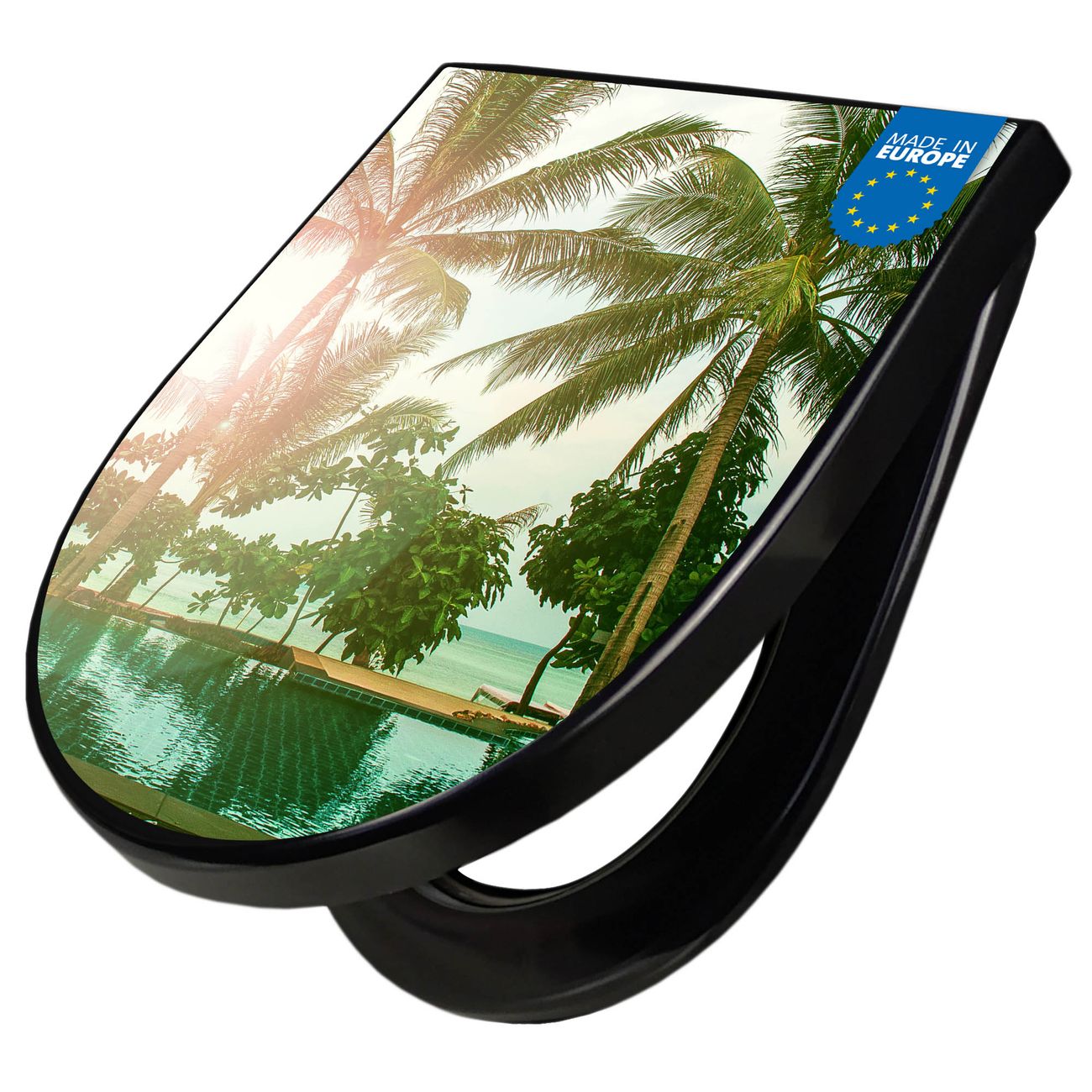 WC Sitz D-Form Schwarz mit Absenkautomatik Motiv Palmen