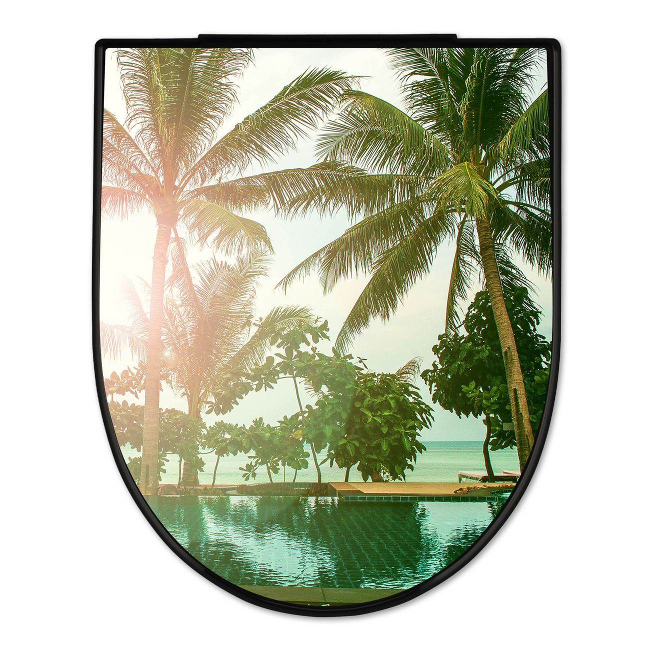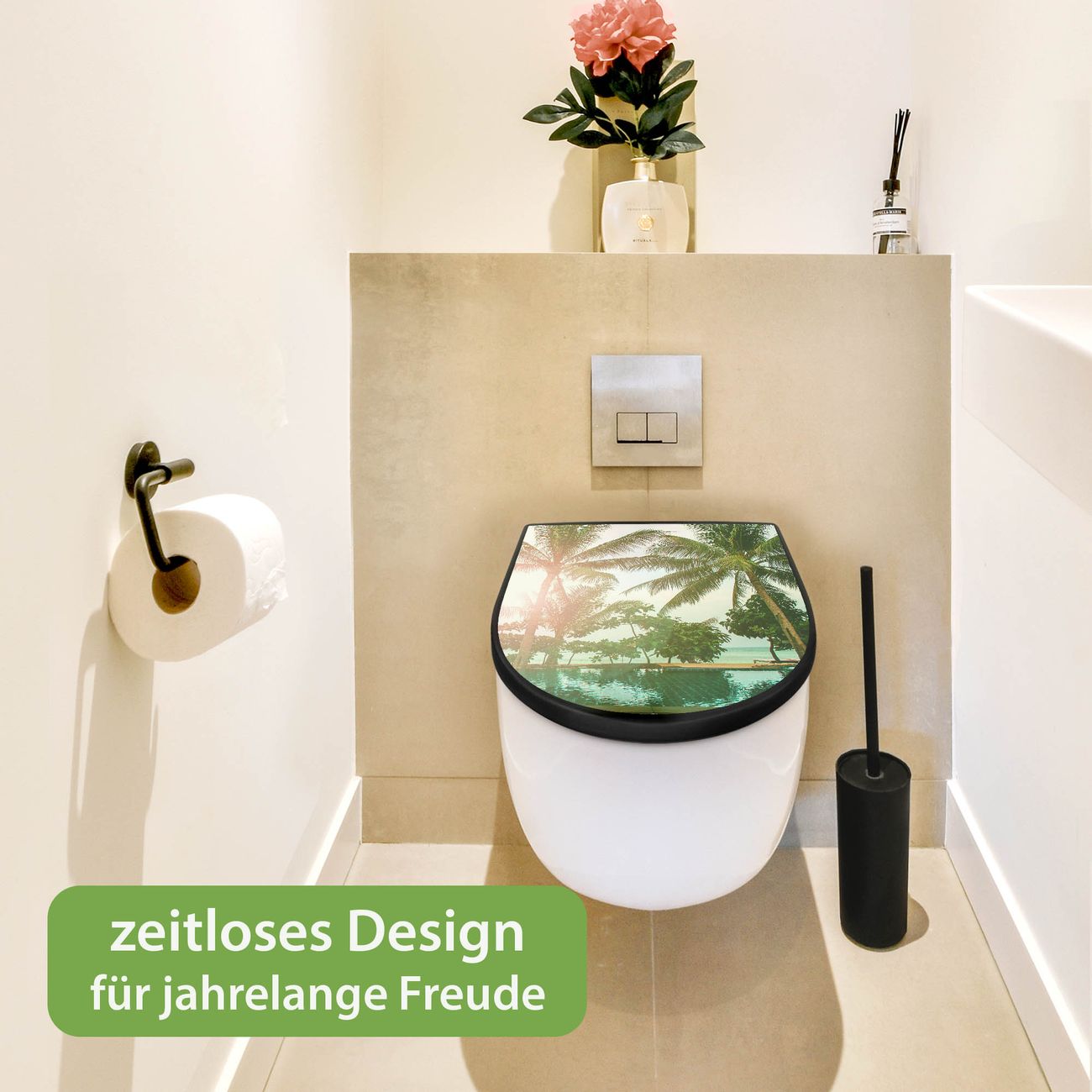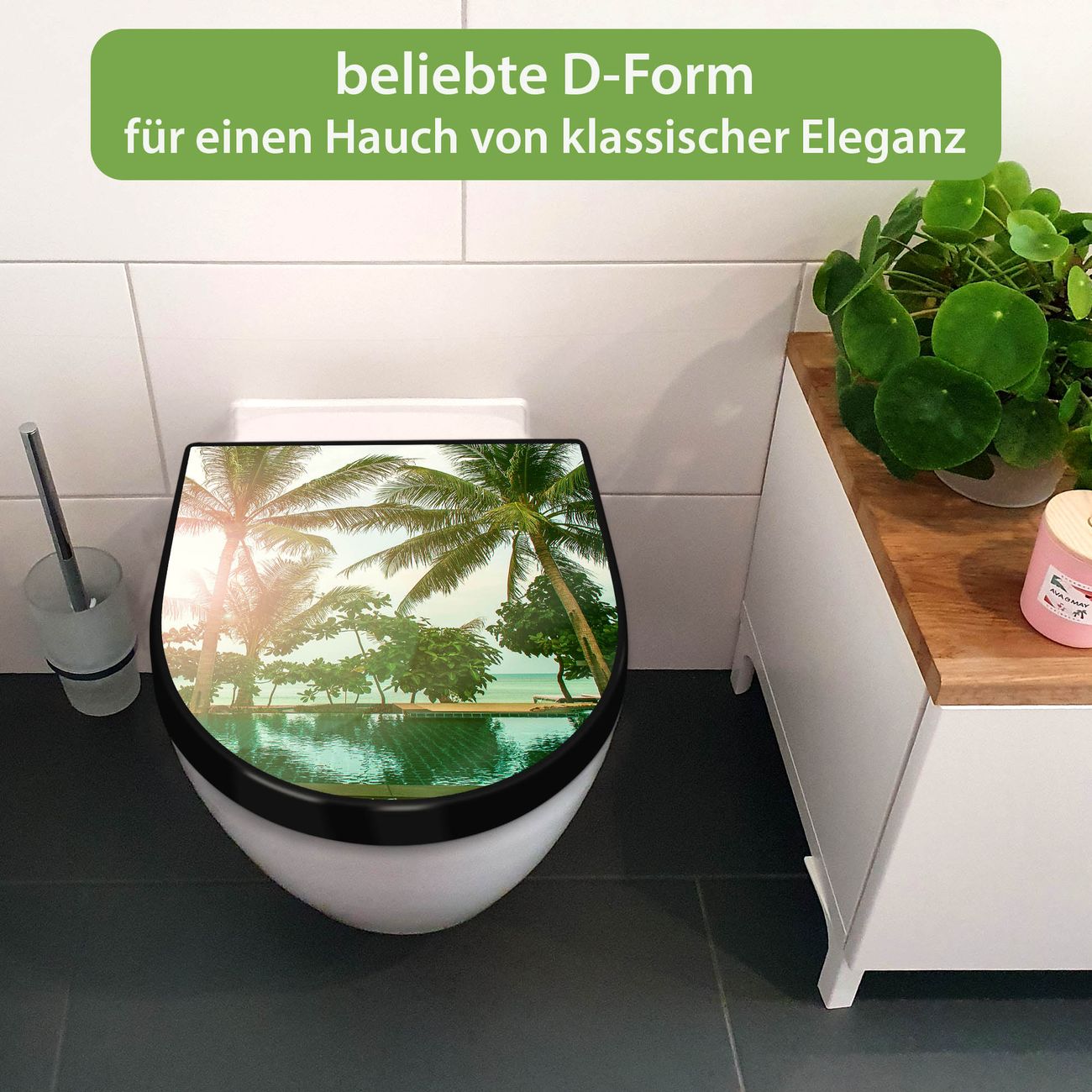 WC Sitz D-Form Schwarz mit Absenkautomatik Motiv Palmen