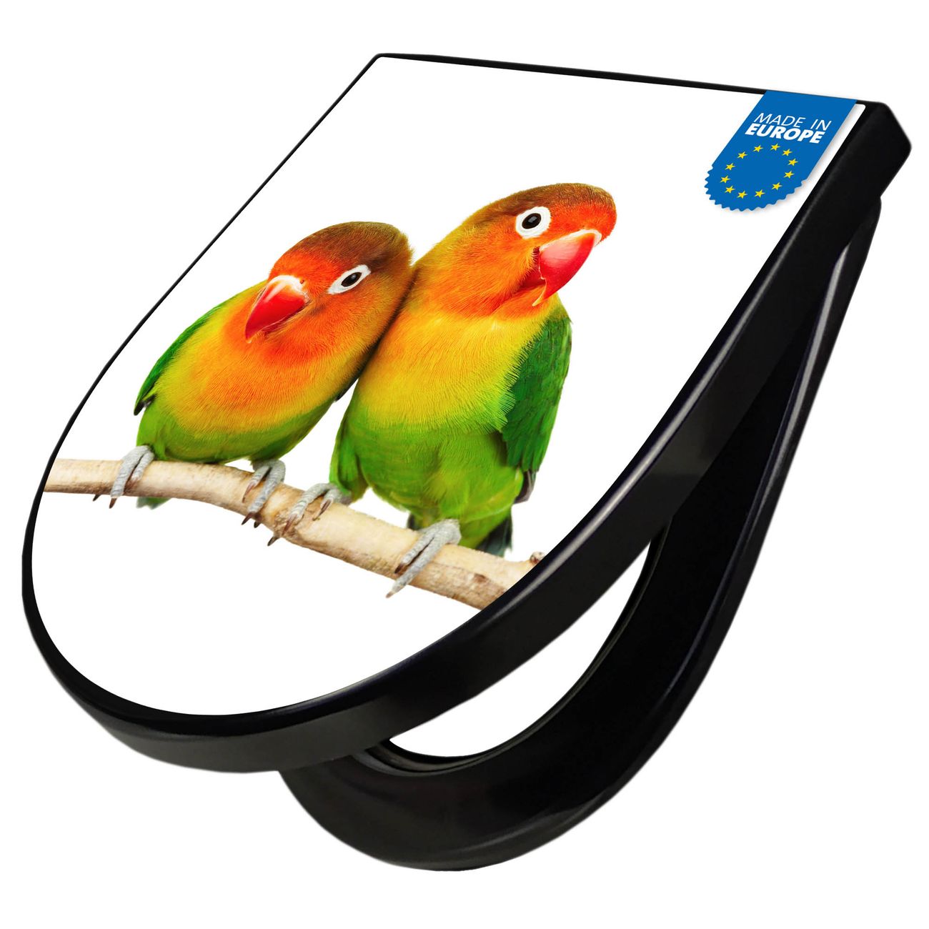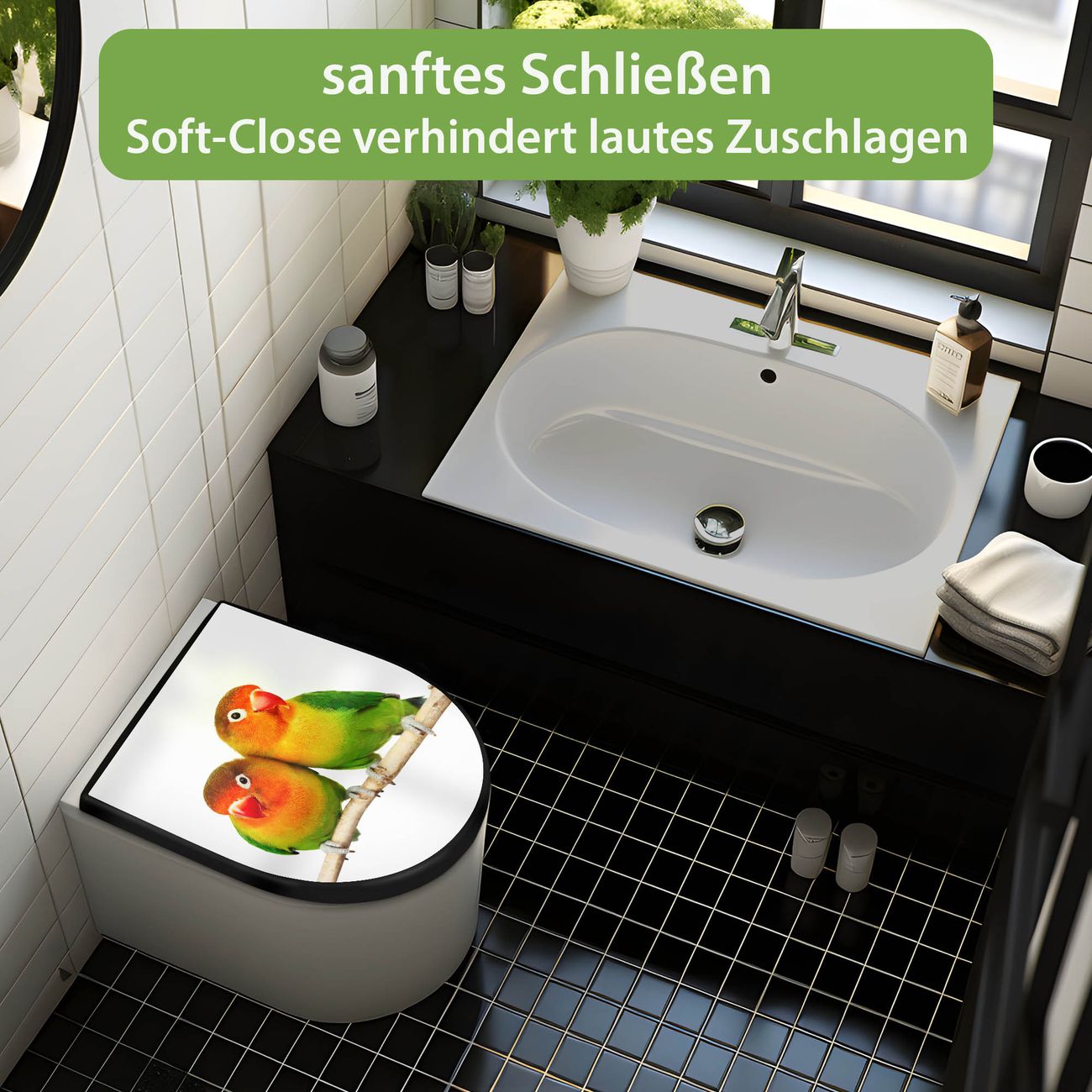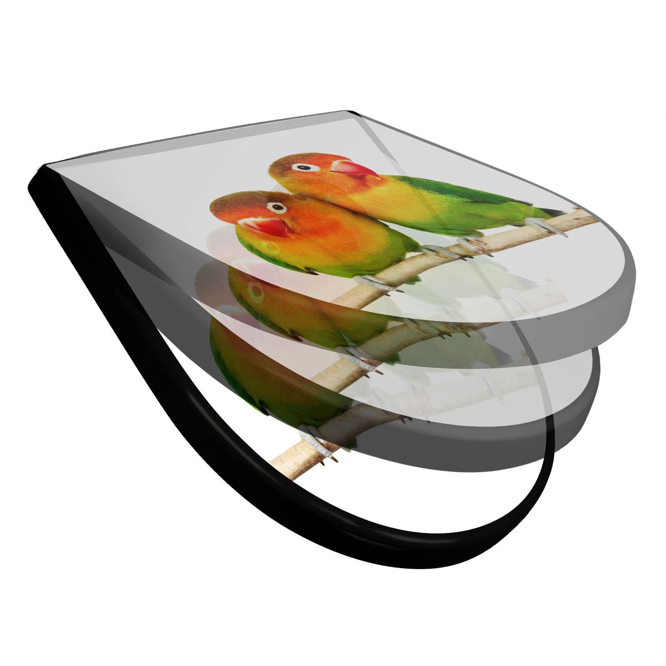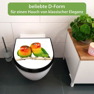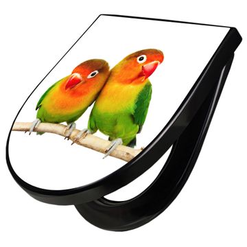 WC Sitz D-Form Schwarz mit Absenkautomatik Motiv Papageien