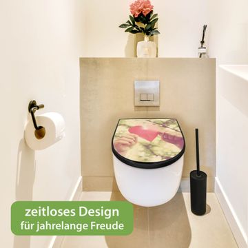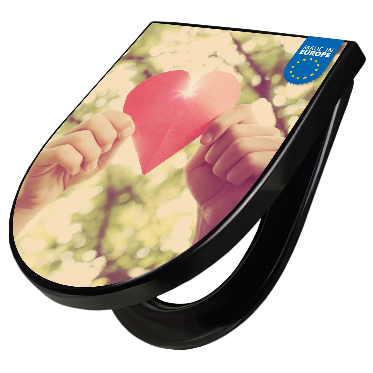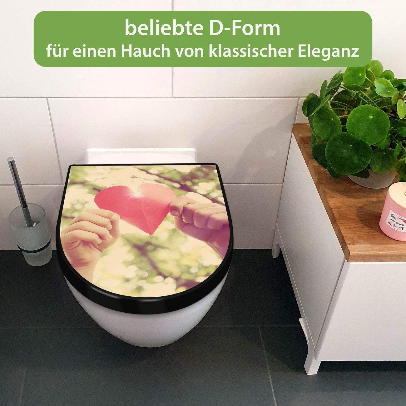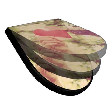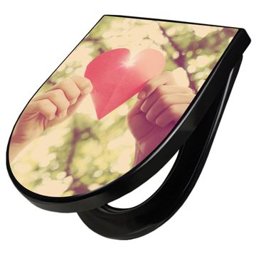 WC Sitz D-Form Schwarz mit Absenkautomatik Motiv Papierherz