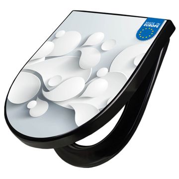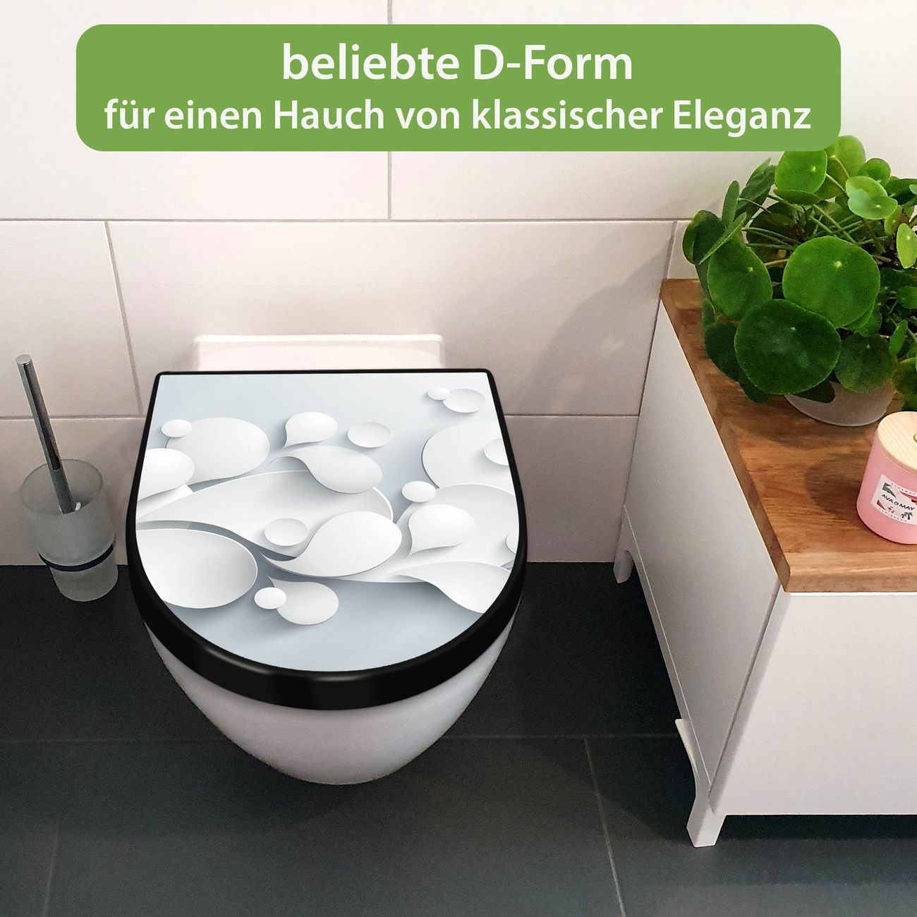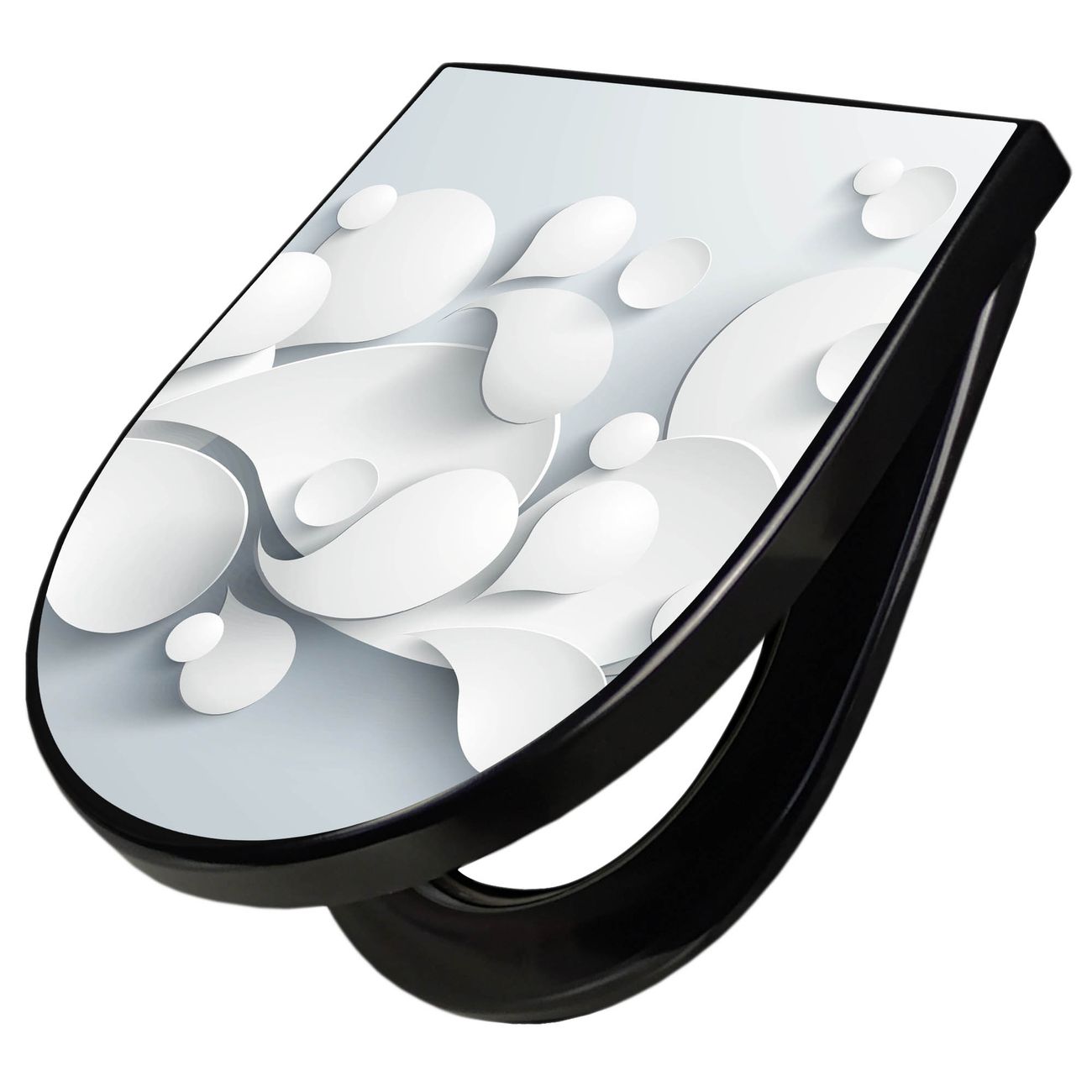WC Sitz D-Form Schwarz mit Absenkautomatik Motiv Papiertropfen