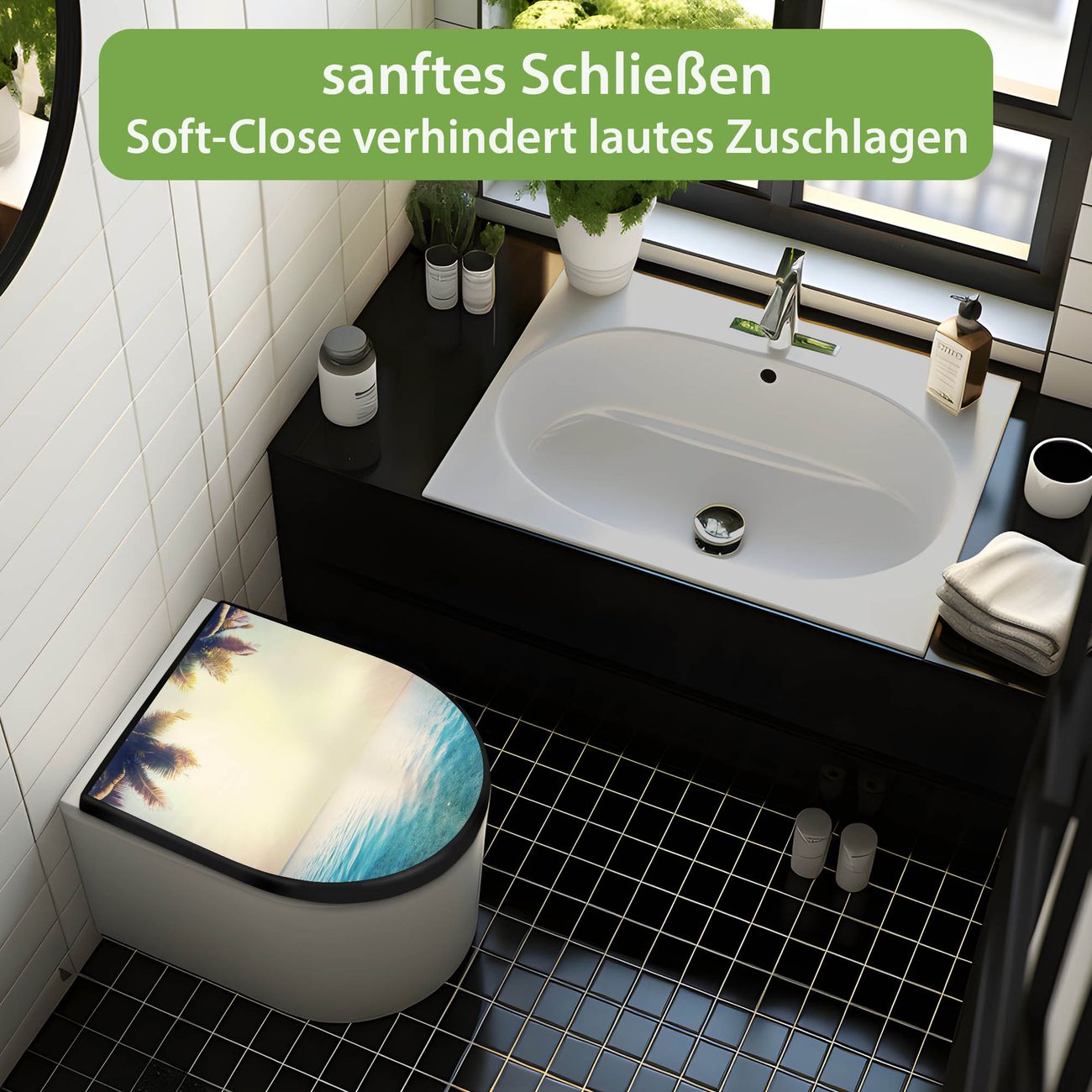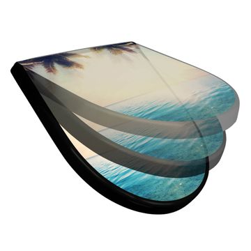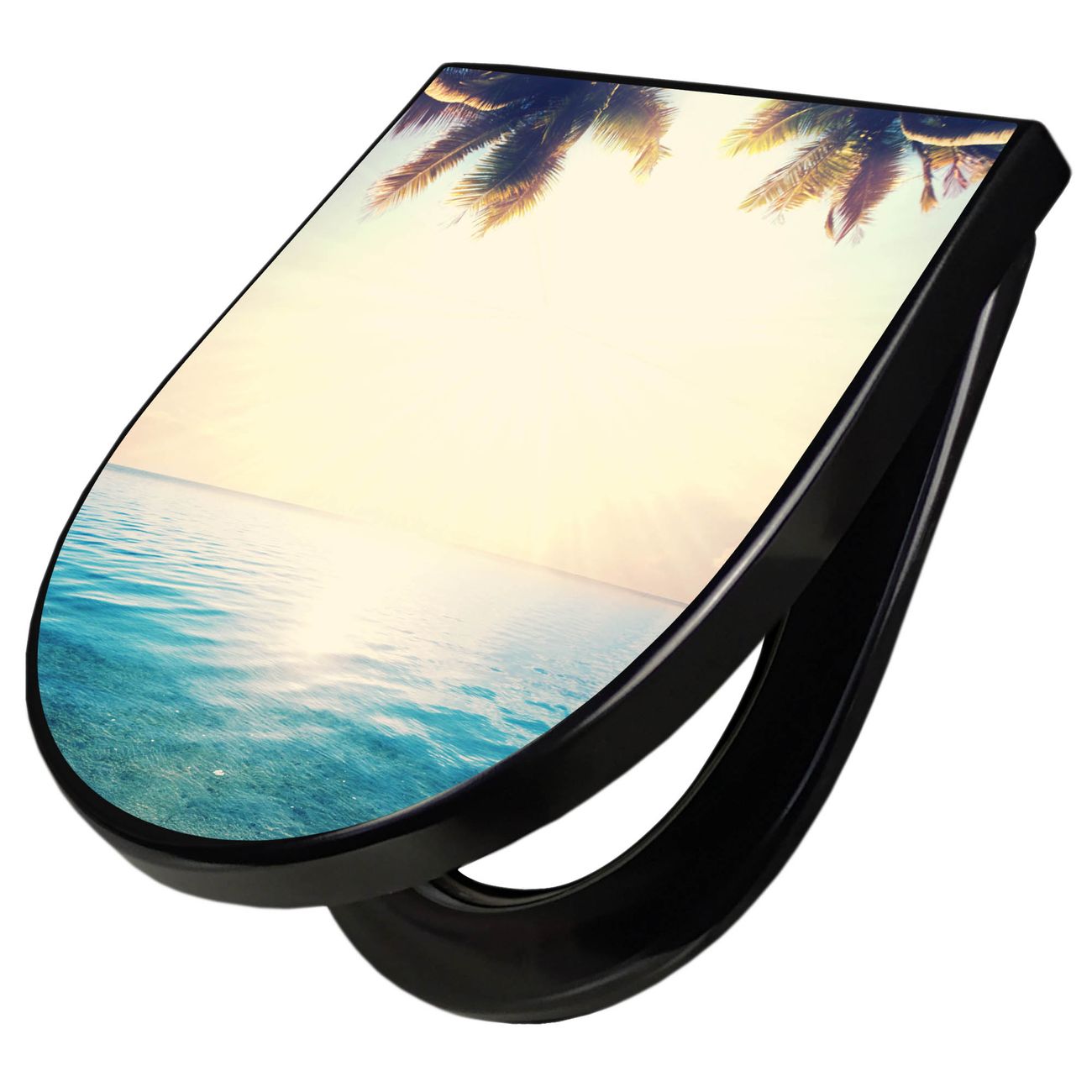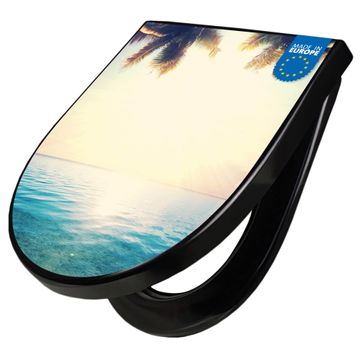 WC Sitz D-Form Schwarz mit Absenkautomatik Motiv Paradis