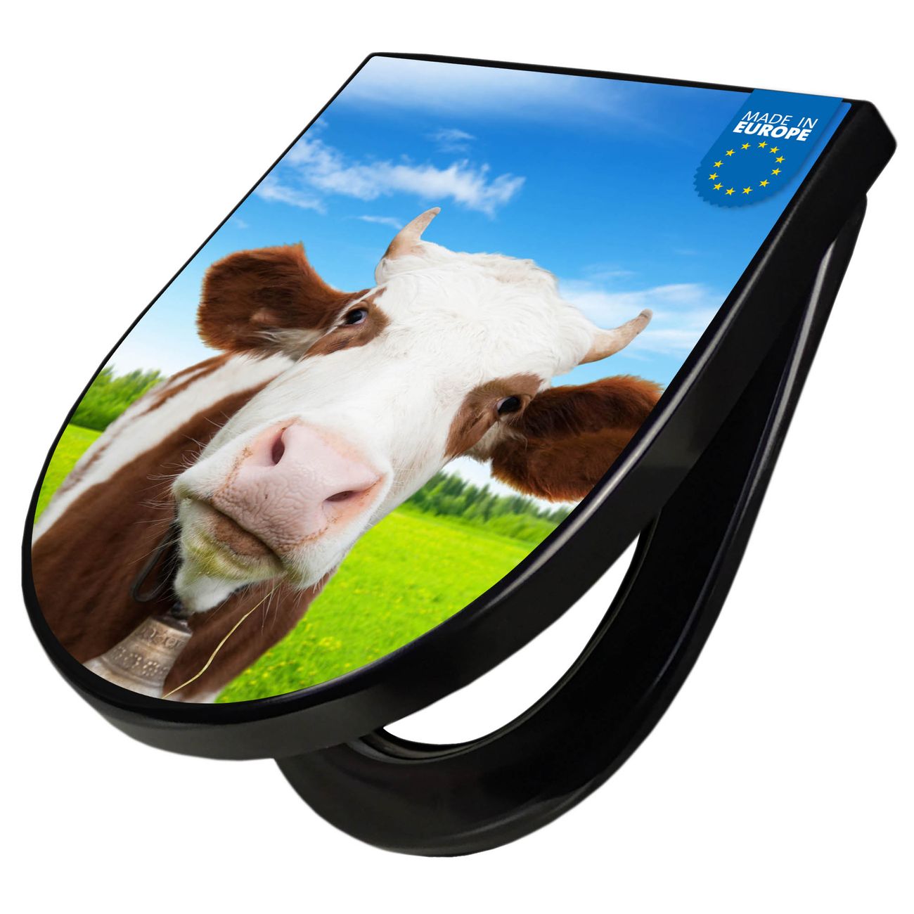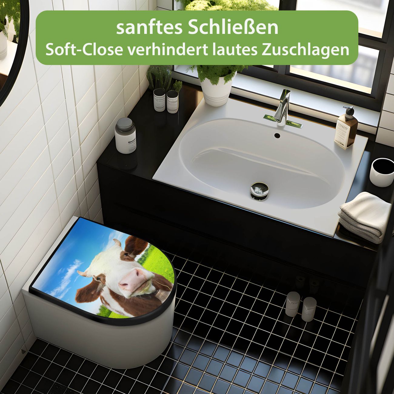 WC Sitz D-Form Schwarz mit Absenkautomatik Motiv Pardon