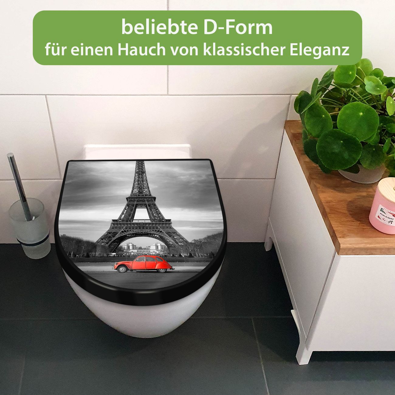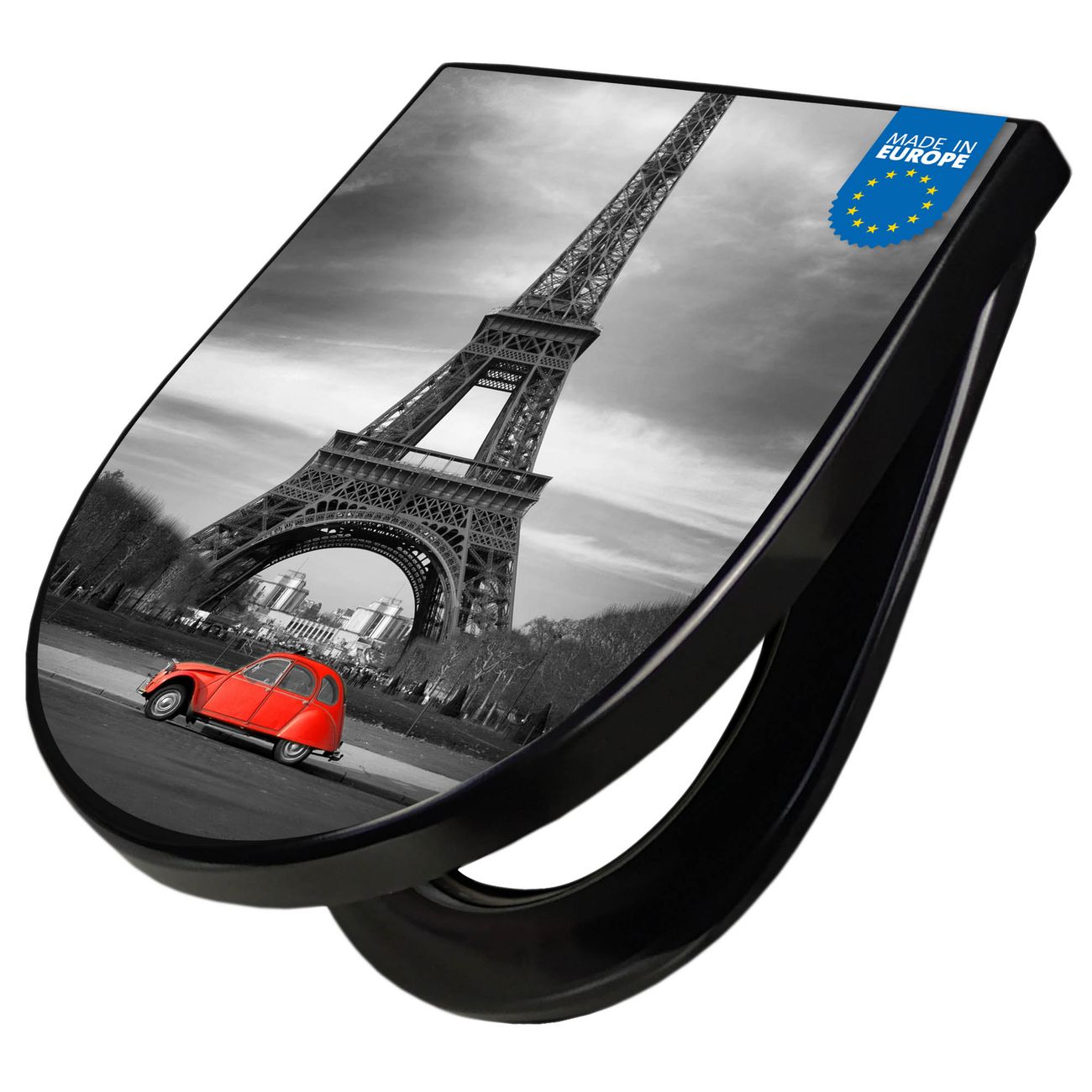 WC Sitz D-Form Schwarz mit Absenkautomatik Motiv Paris