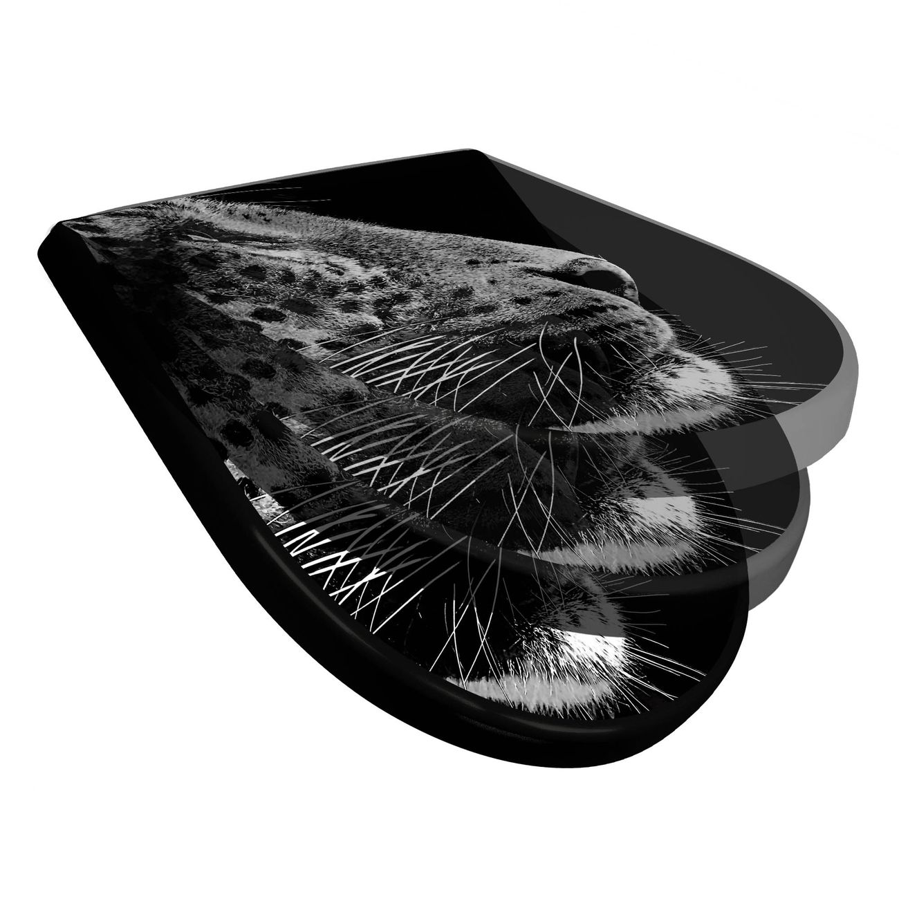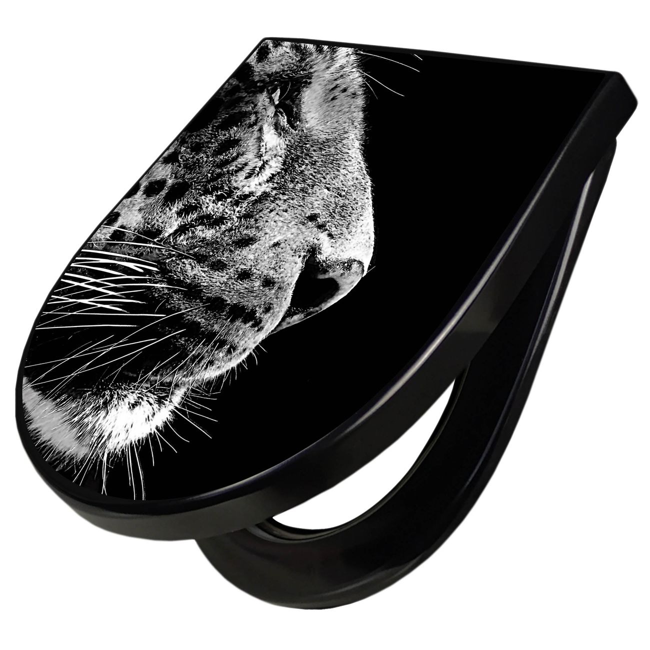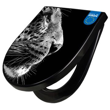 WC Sitz D-Form Schwarz mit Absenkautomatik Motiv Pauline