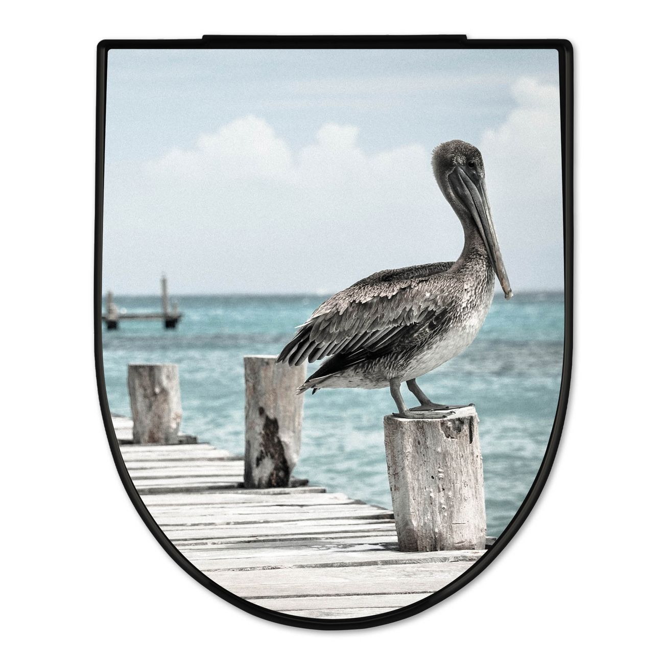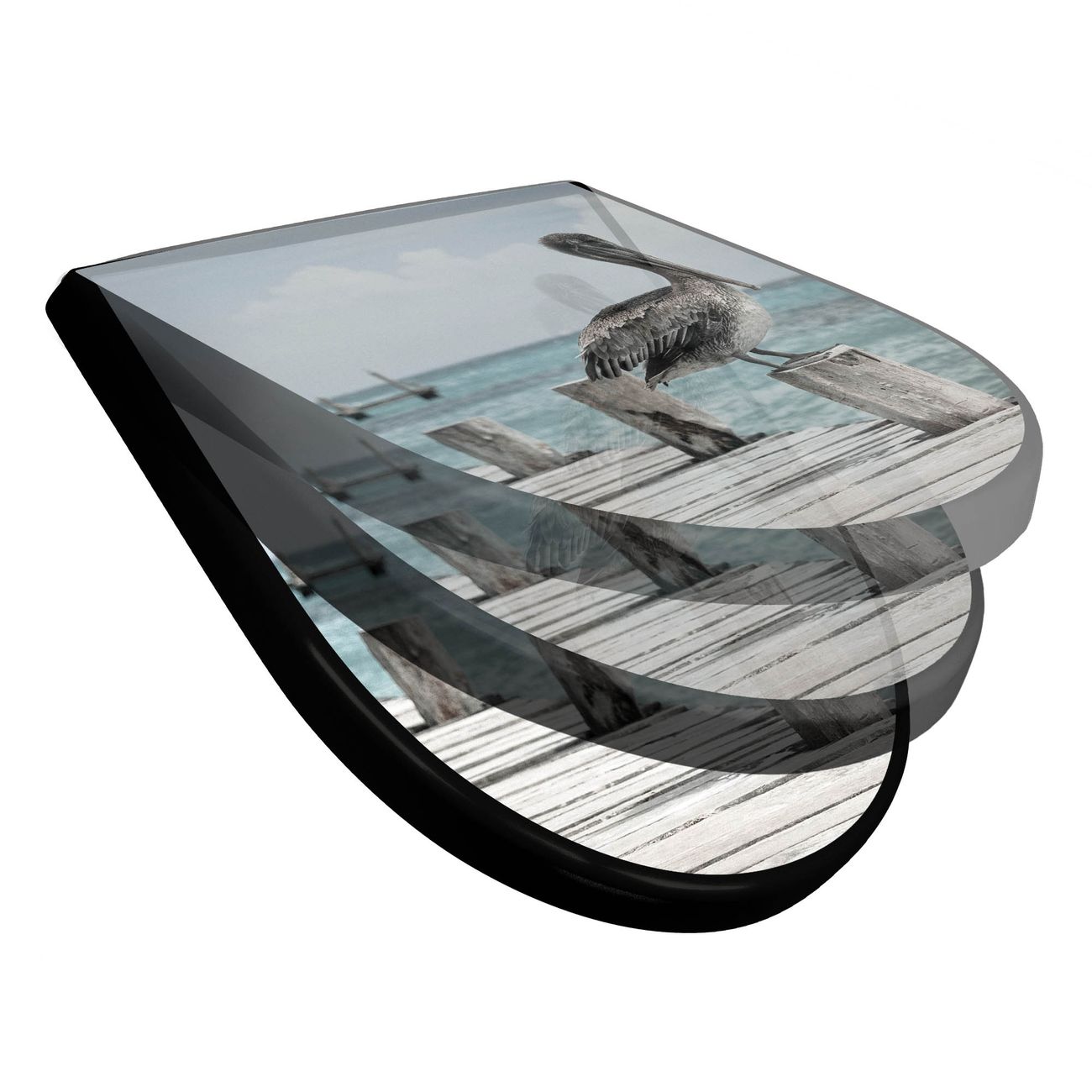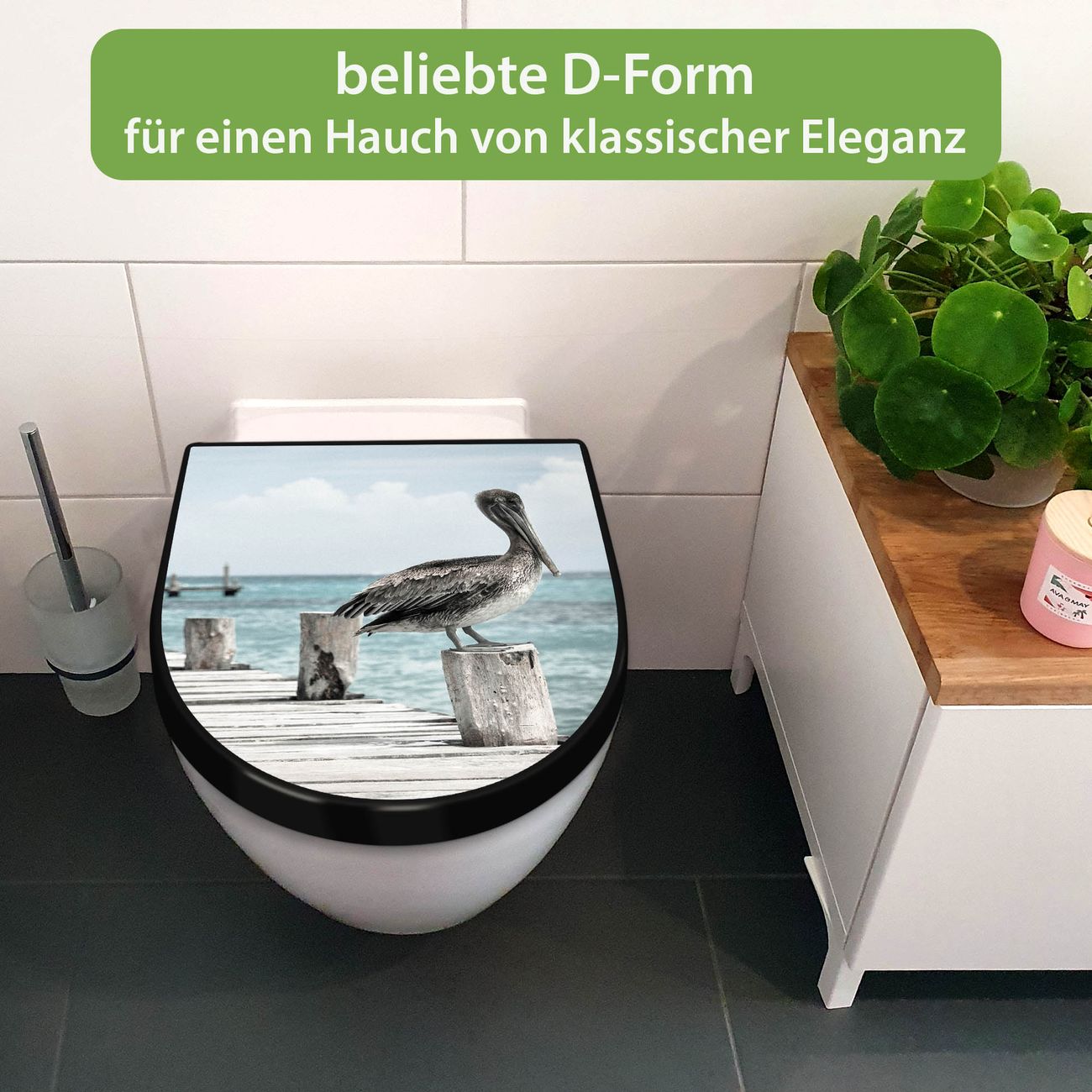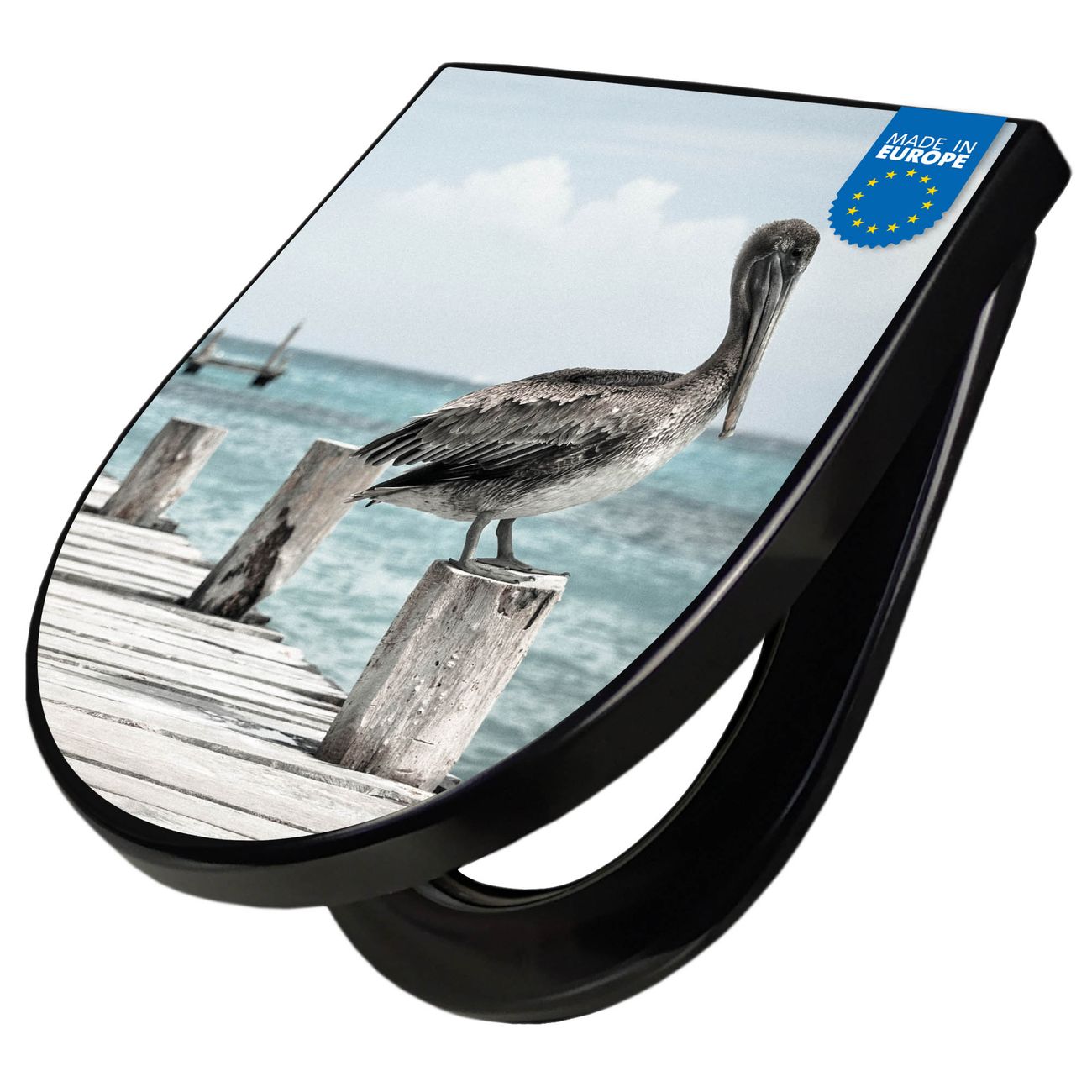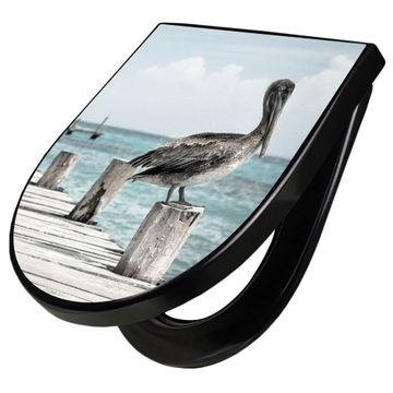 WC Sitz D-Form Schwarz mit Absenkautomatik Motiv Pelikane