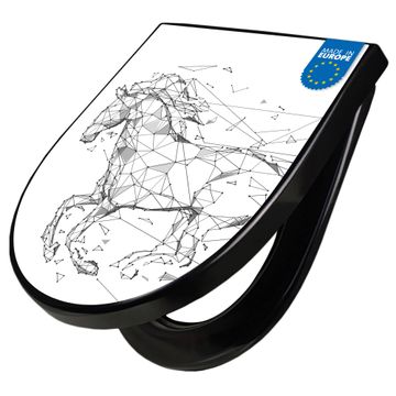 WC Sitz D-Form Schwarz mit Absenkautomatik Motiv Pferd abstrakt 2