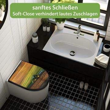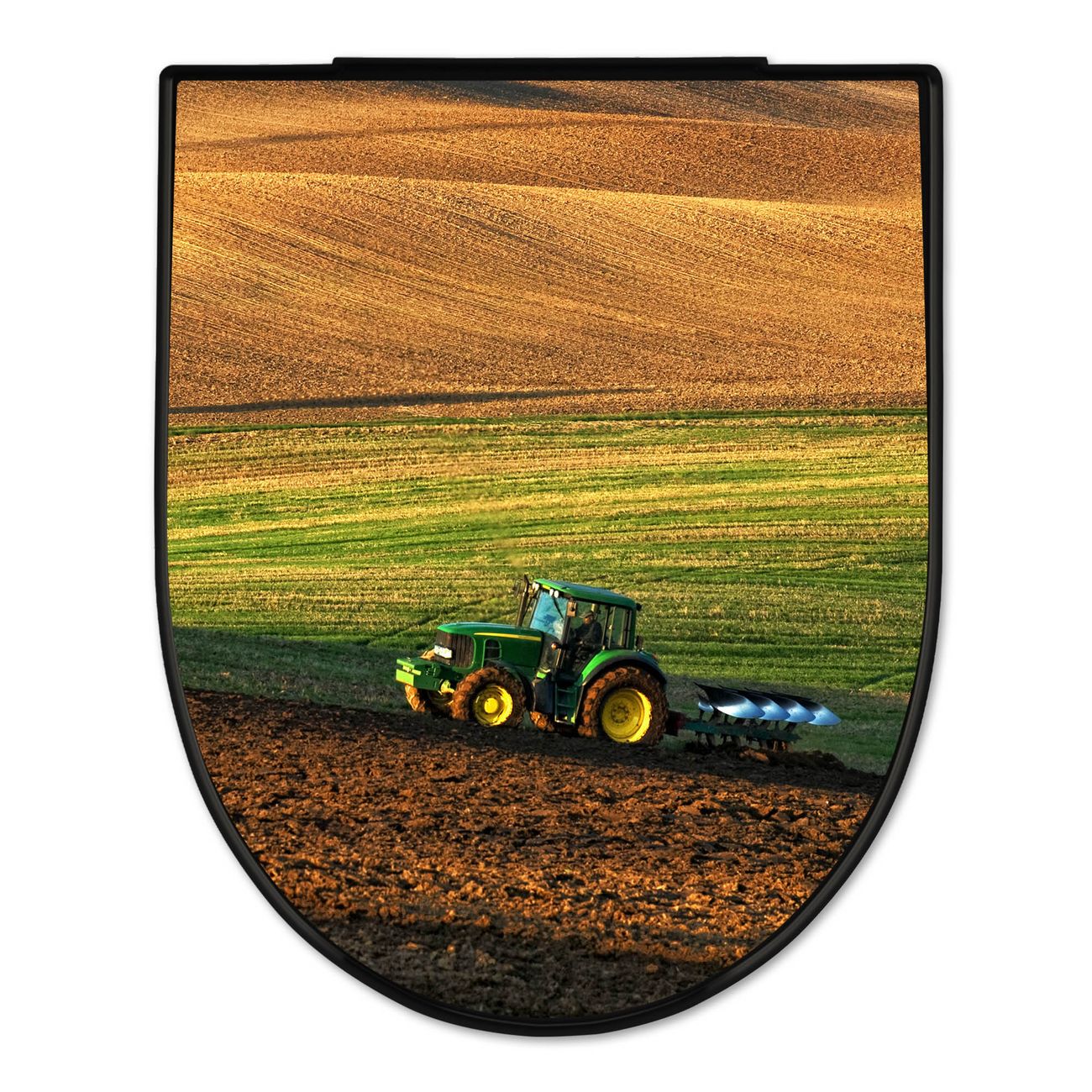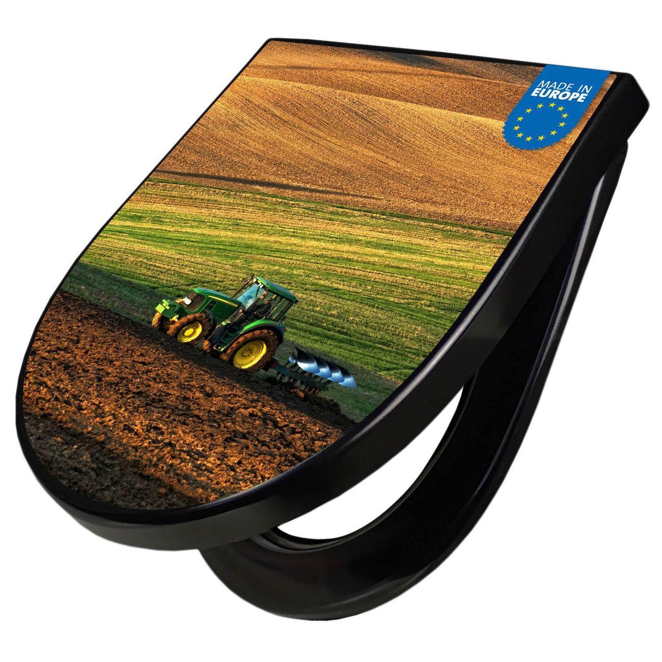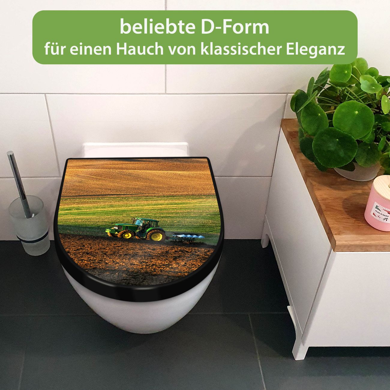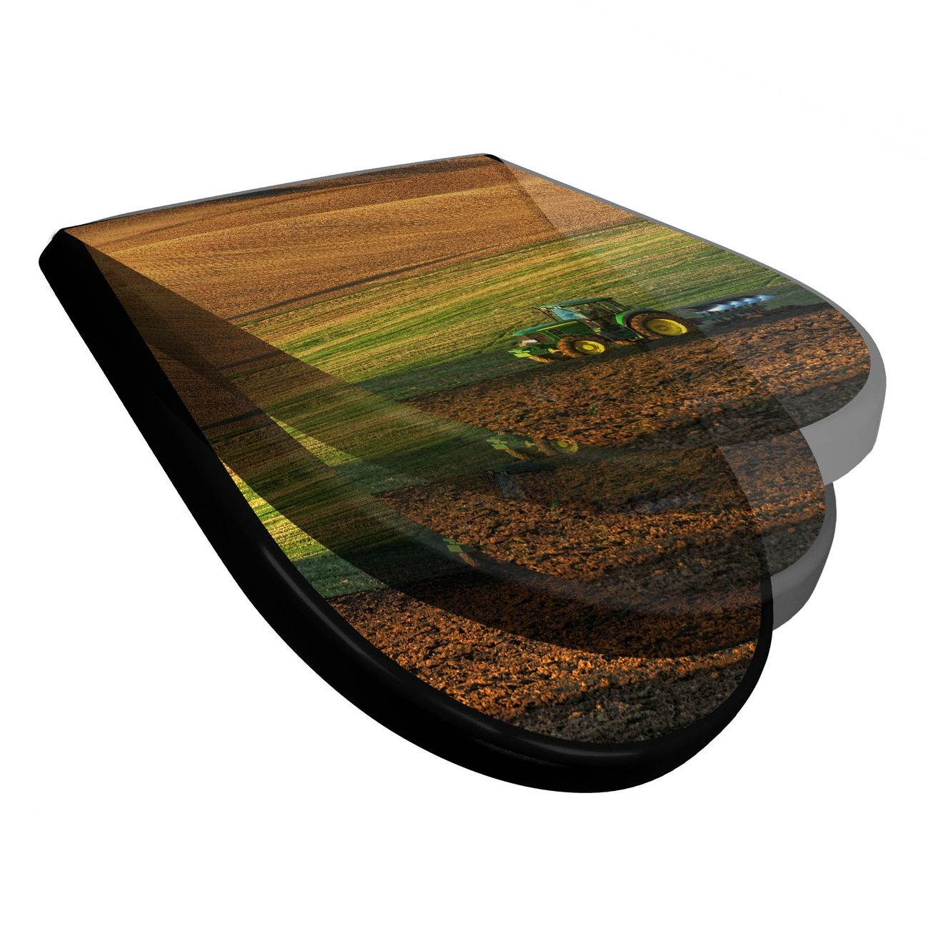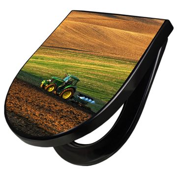 WC Sitz D-Form Schwarz mit Absenkautomatik Motiv Pflügen