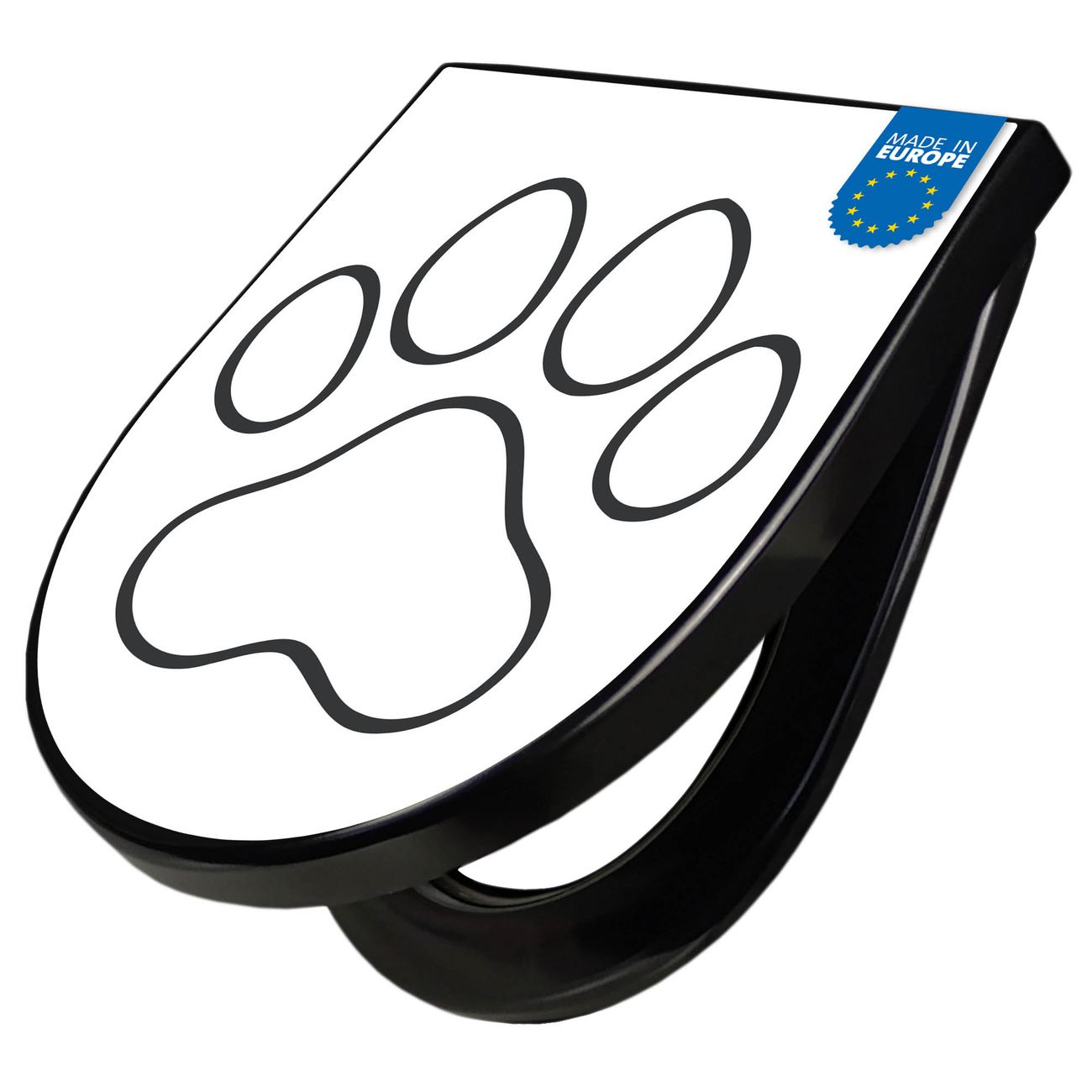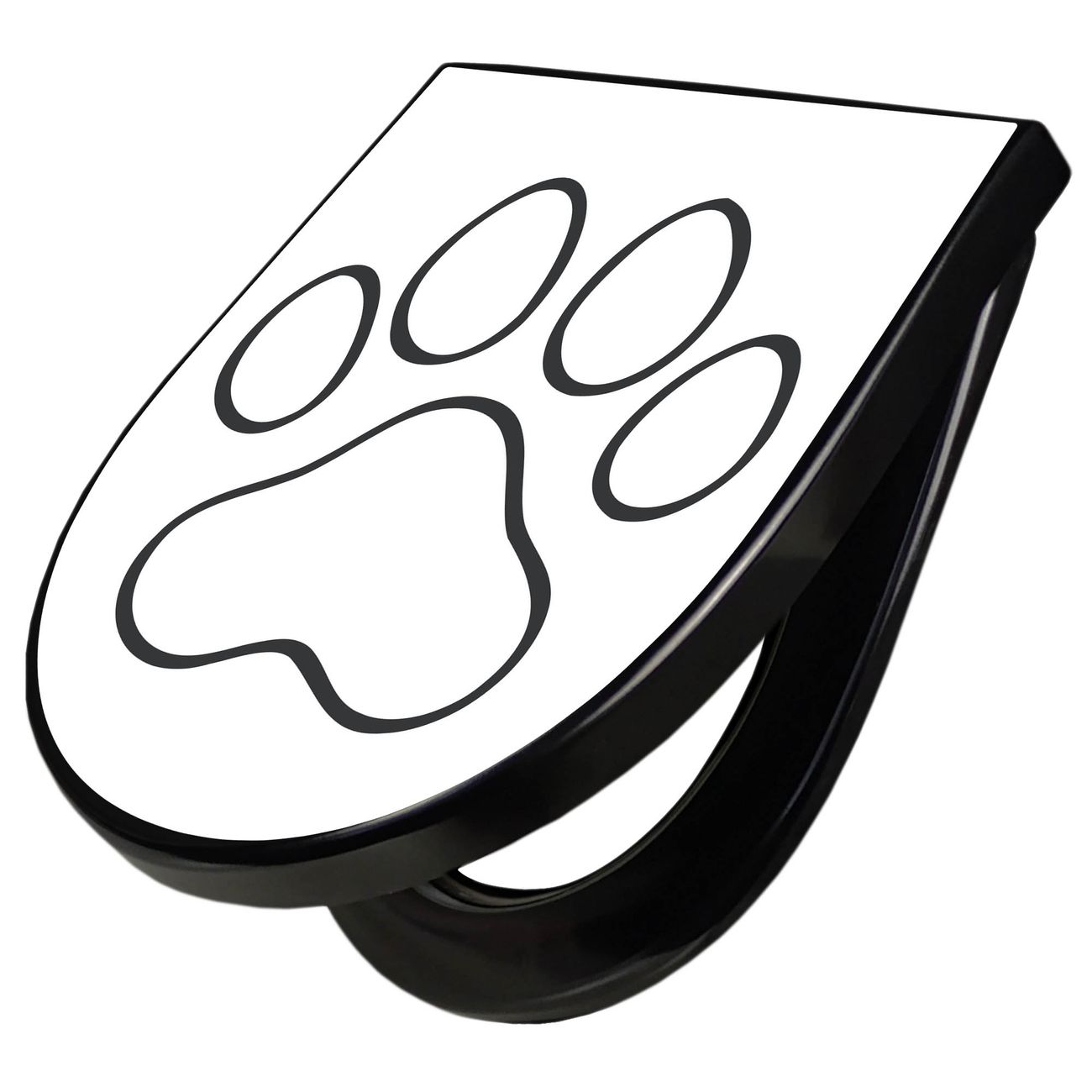 WC Sitz D-Form Schwarz mit Absenkautomatik Motiv Pfote 2