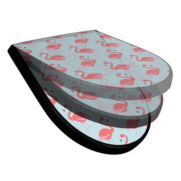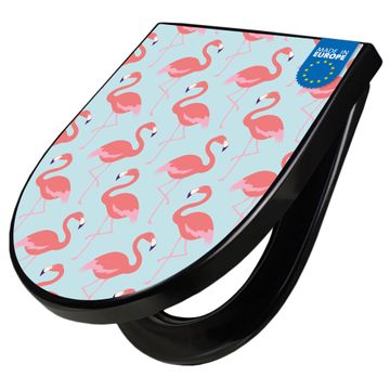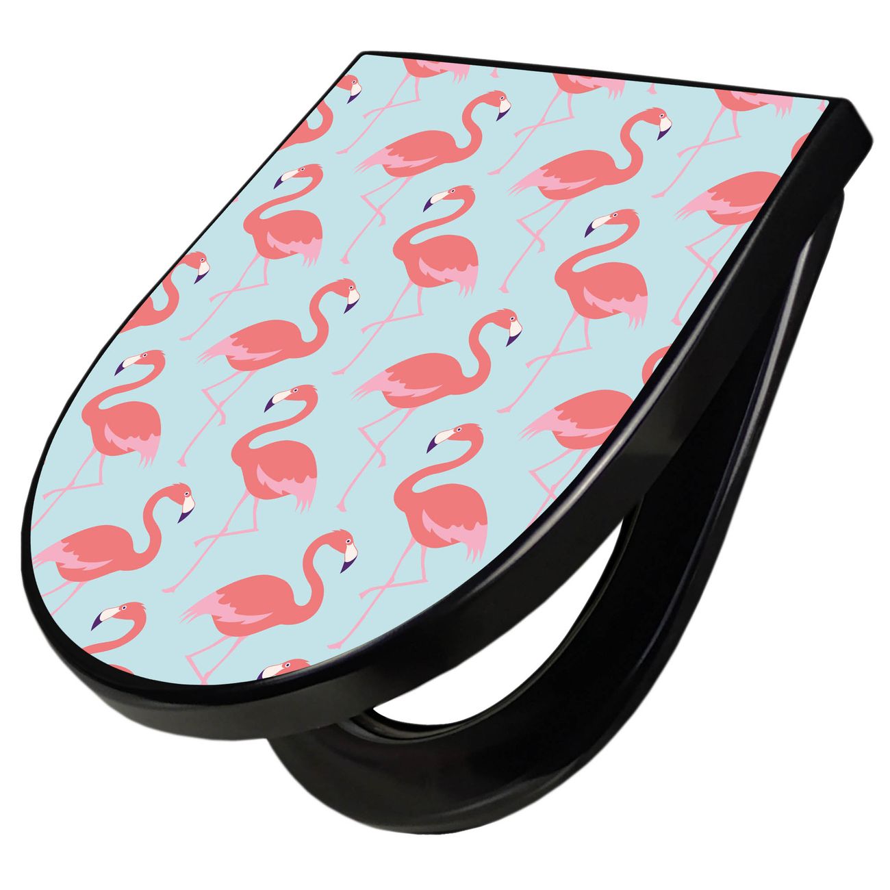 WC Sitz D-Form Schwarz mit Absenkautomatik Motiv Pink Tango