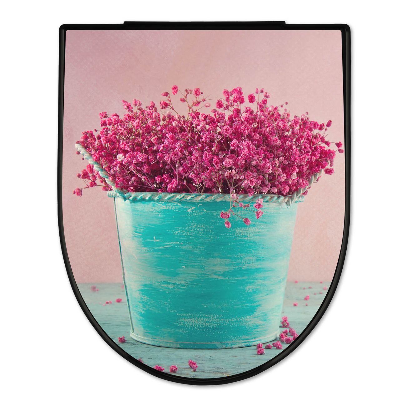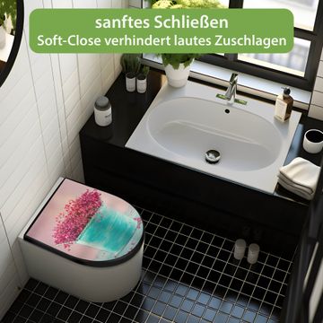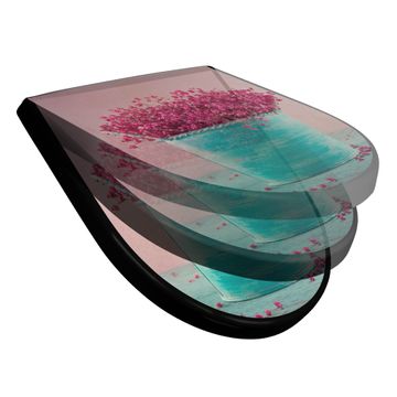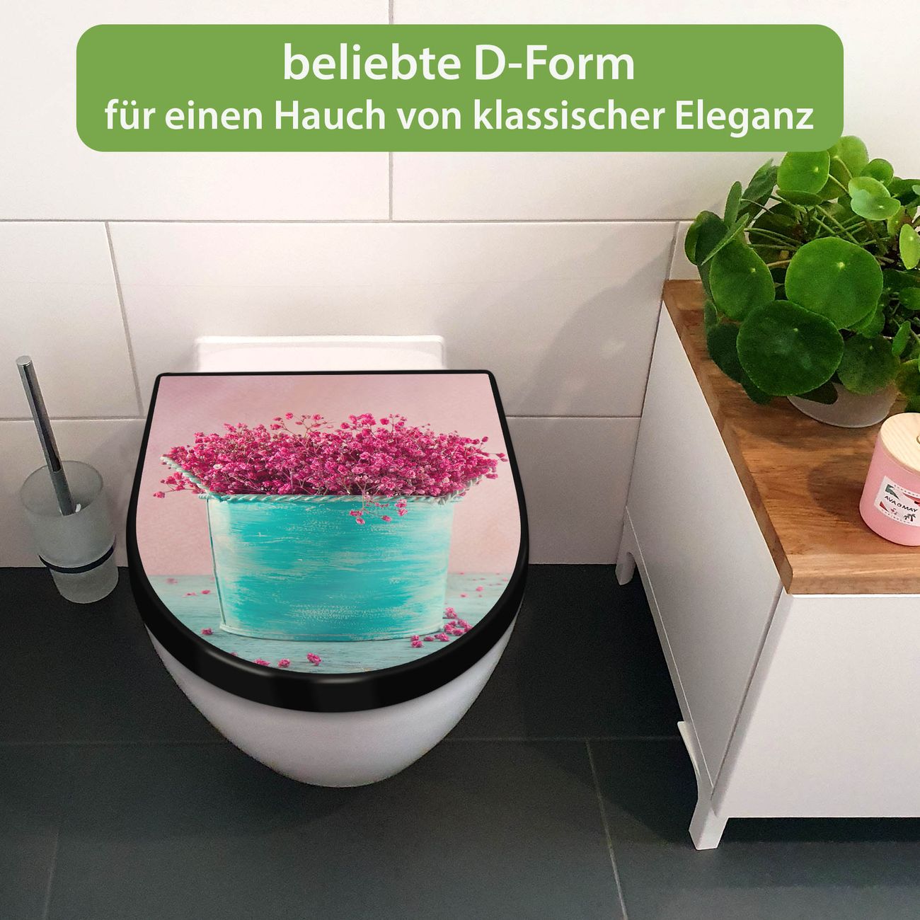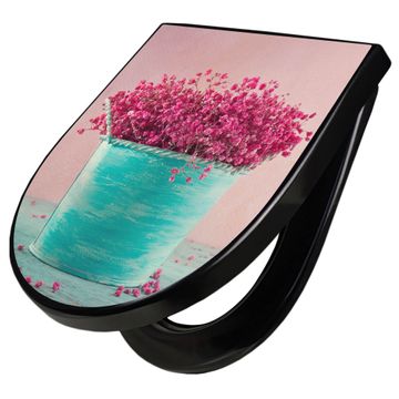 WC Sitz D-Form Schwarz mit Absenkautomatik Motiv Pinke Trockenblumen