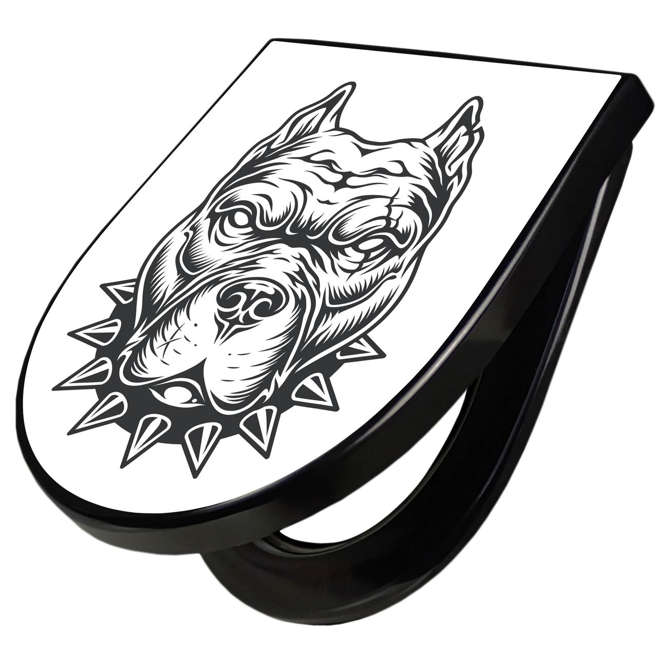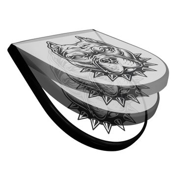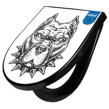 WC Sitz D-Form Schwarz mit Absenkautomatik Motiv Pitbull Silhouette