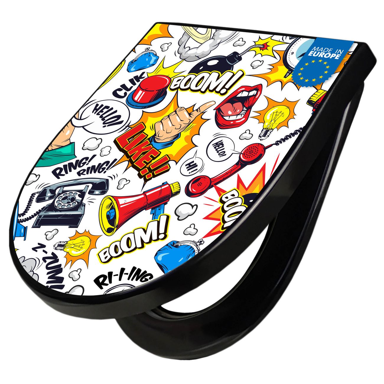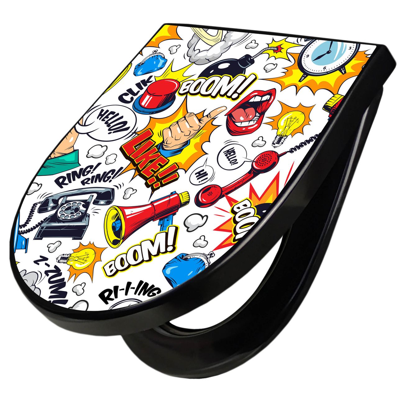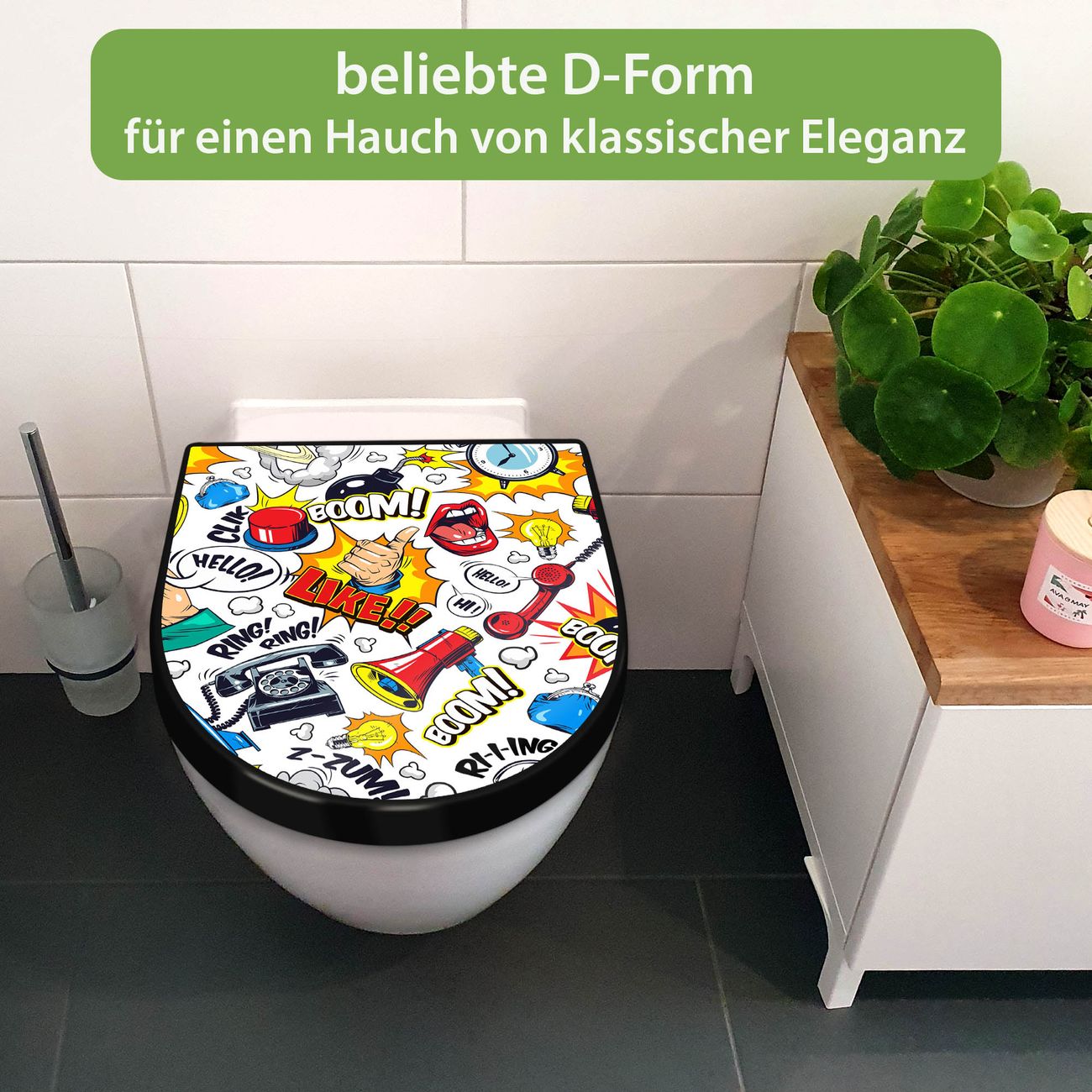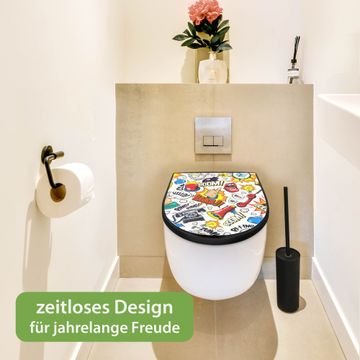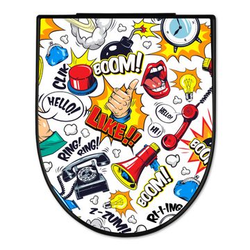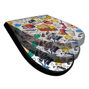 WC Sitz D-Form Schwarz mit Absenkautomatik Motiv Pop-Art Comic Muster