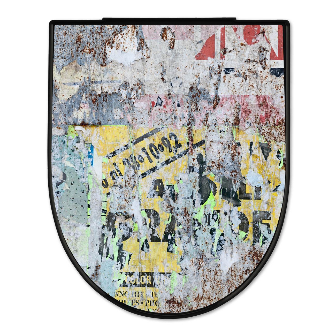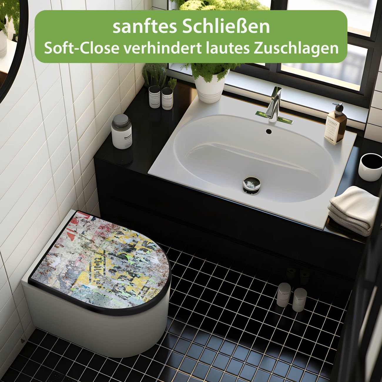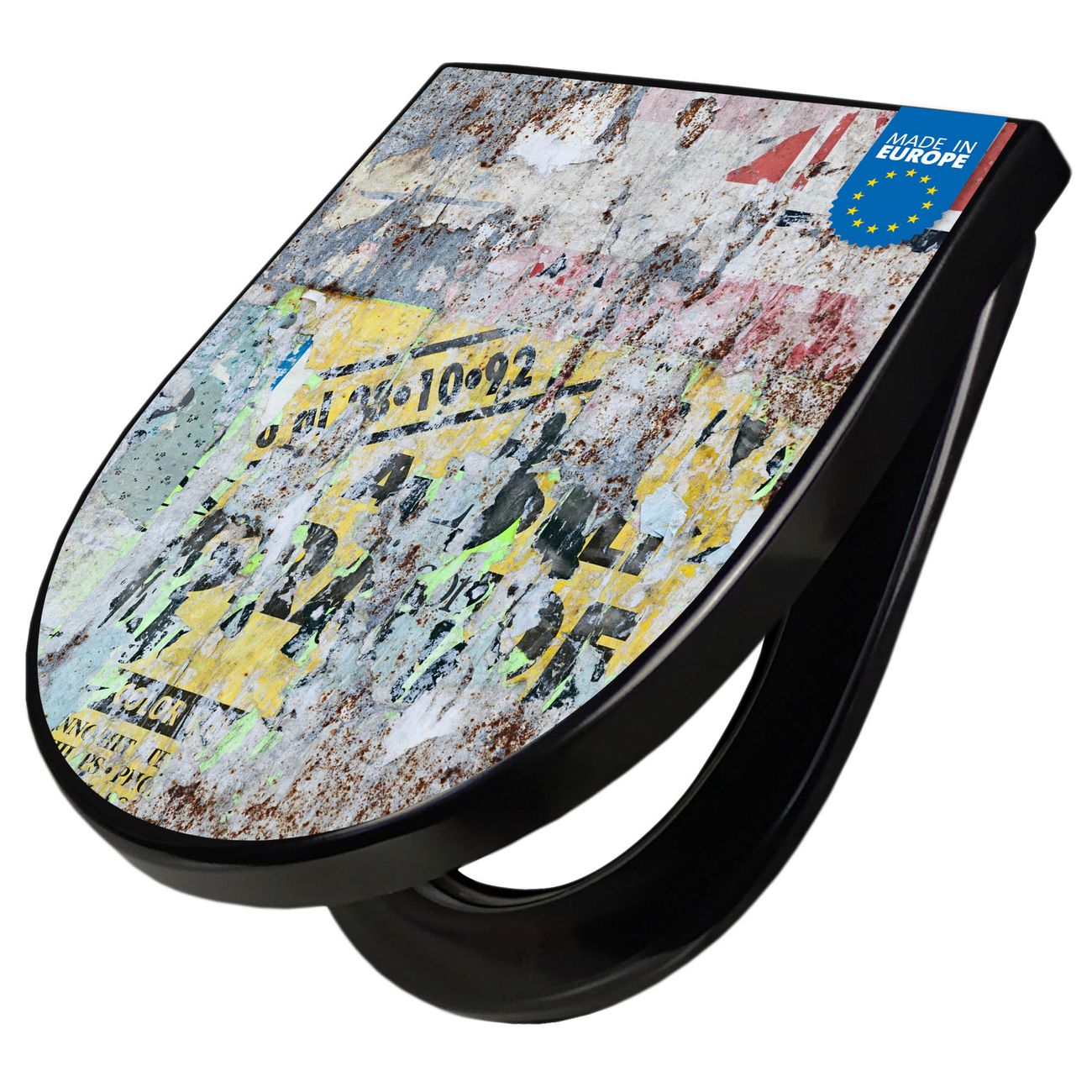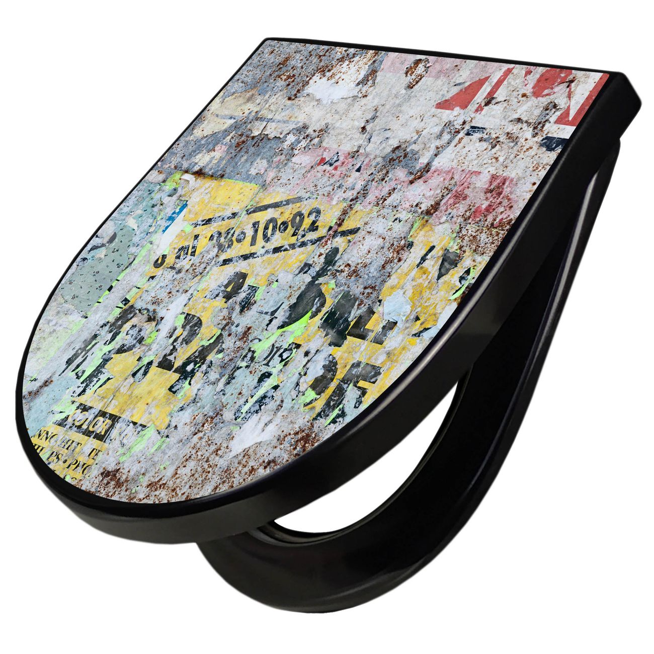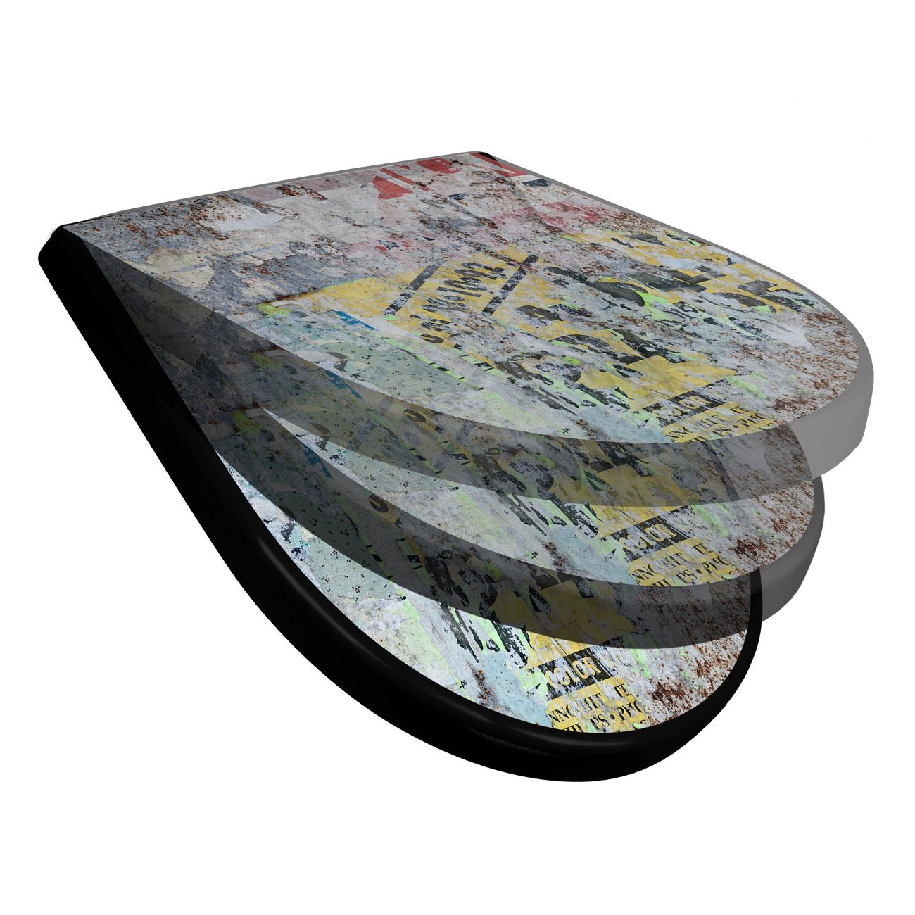 WC Sitz D-Form Schwarz mit Absenkautomatik Motiv Posterwand