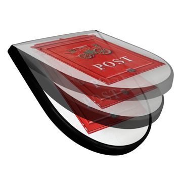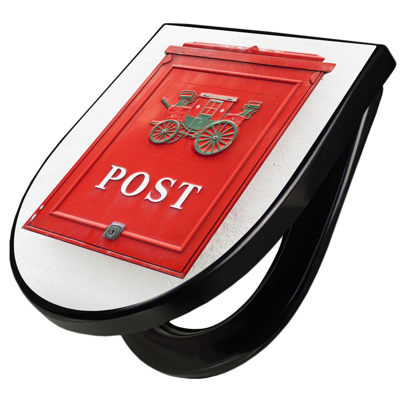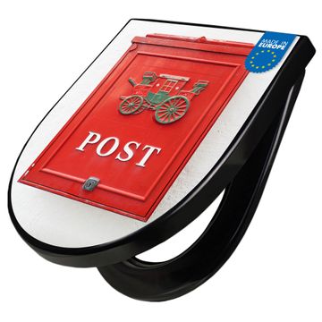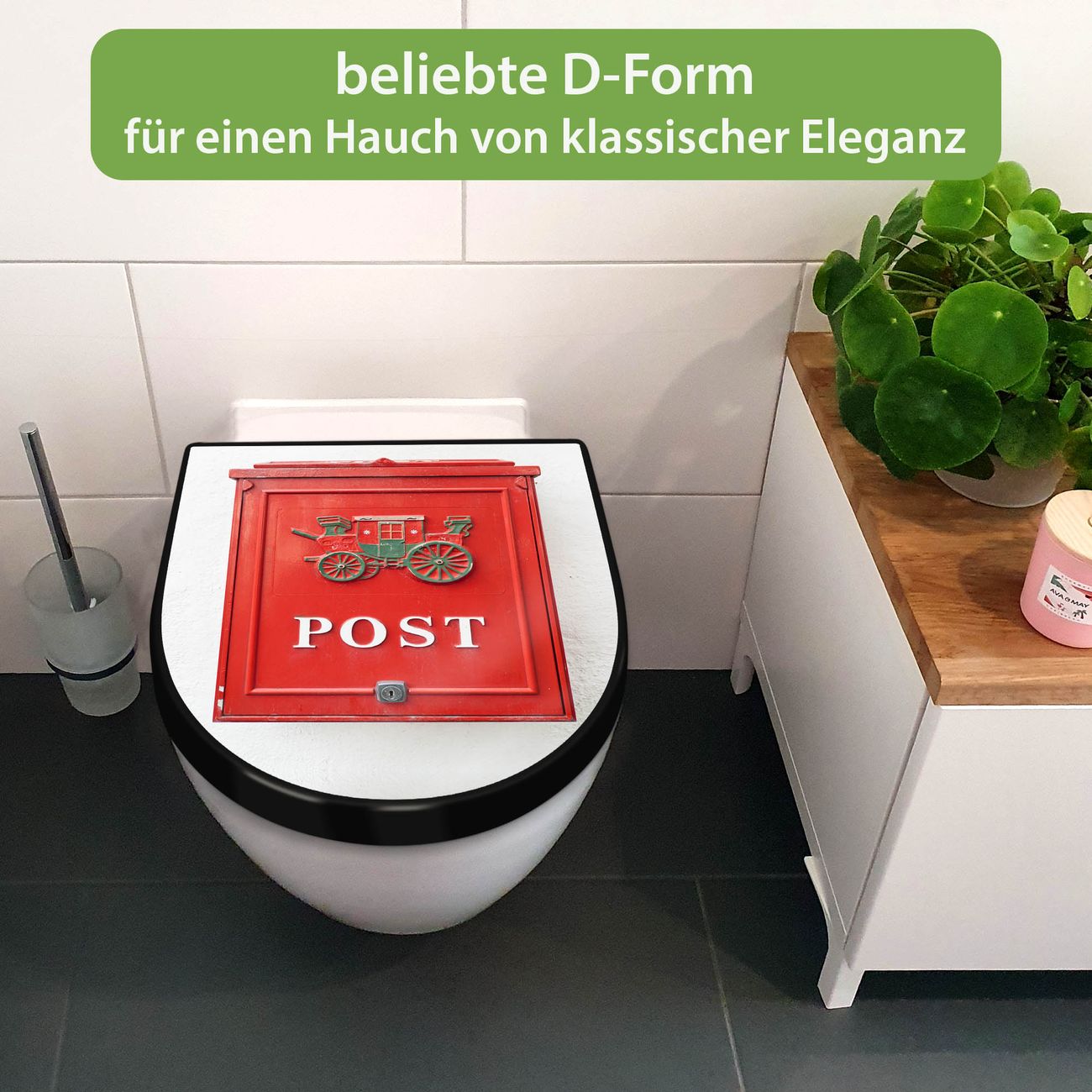 WC Sitz D-Form Schwarz mit Absenkautomatik Motiv Postkasten Nostalgie