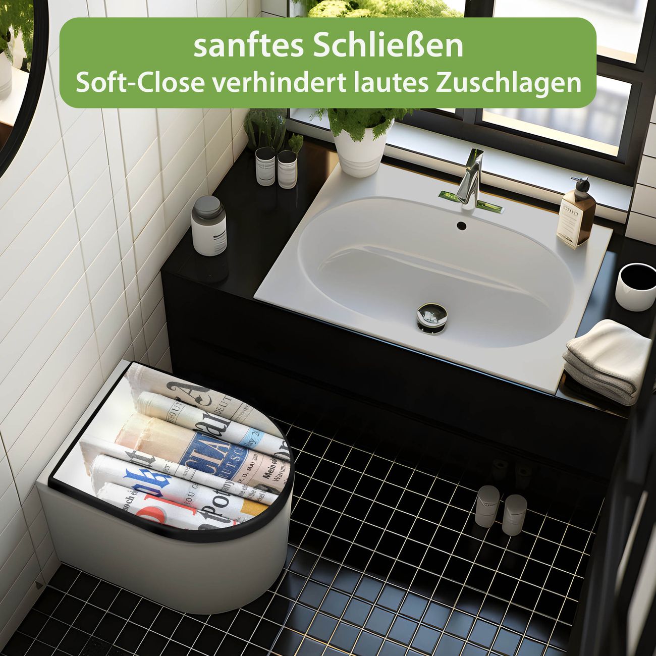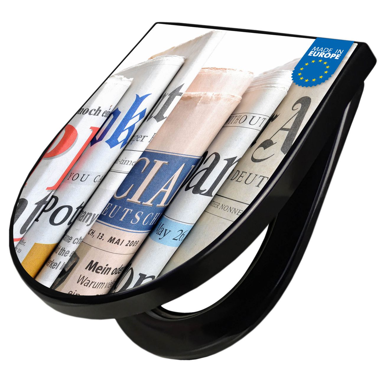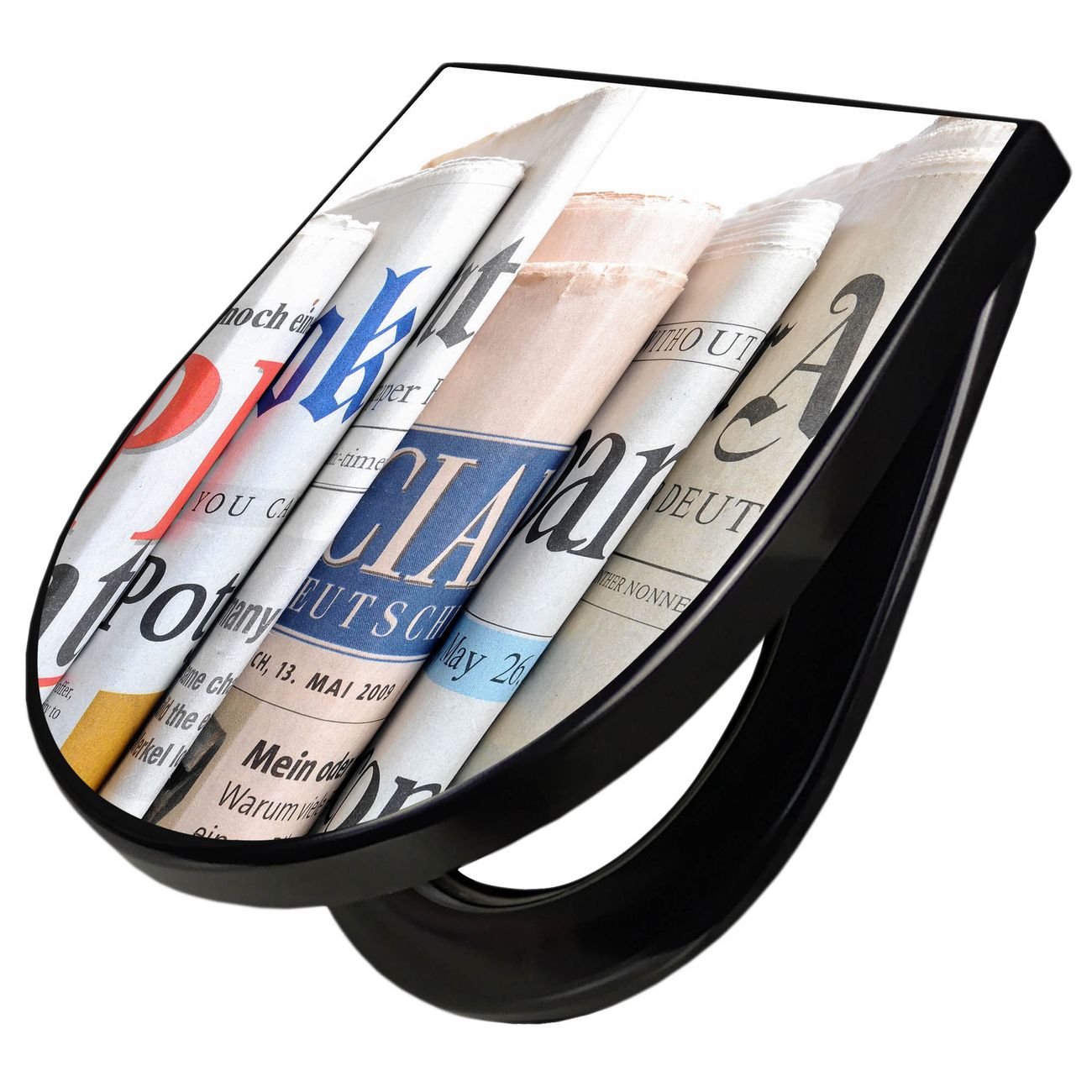 WC Sitz D-Form Schwarz mit Absenkautomatik Motiv Presse