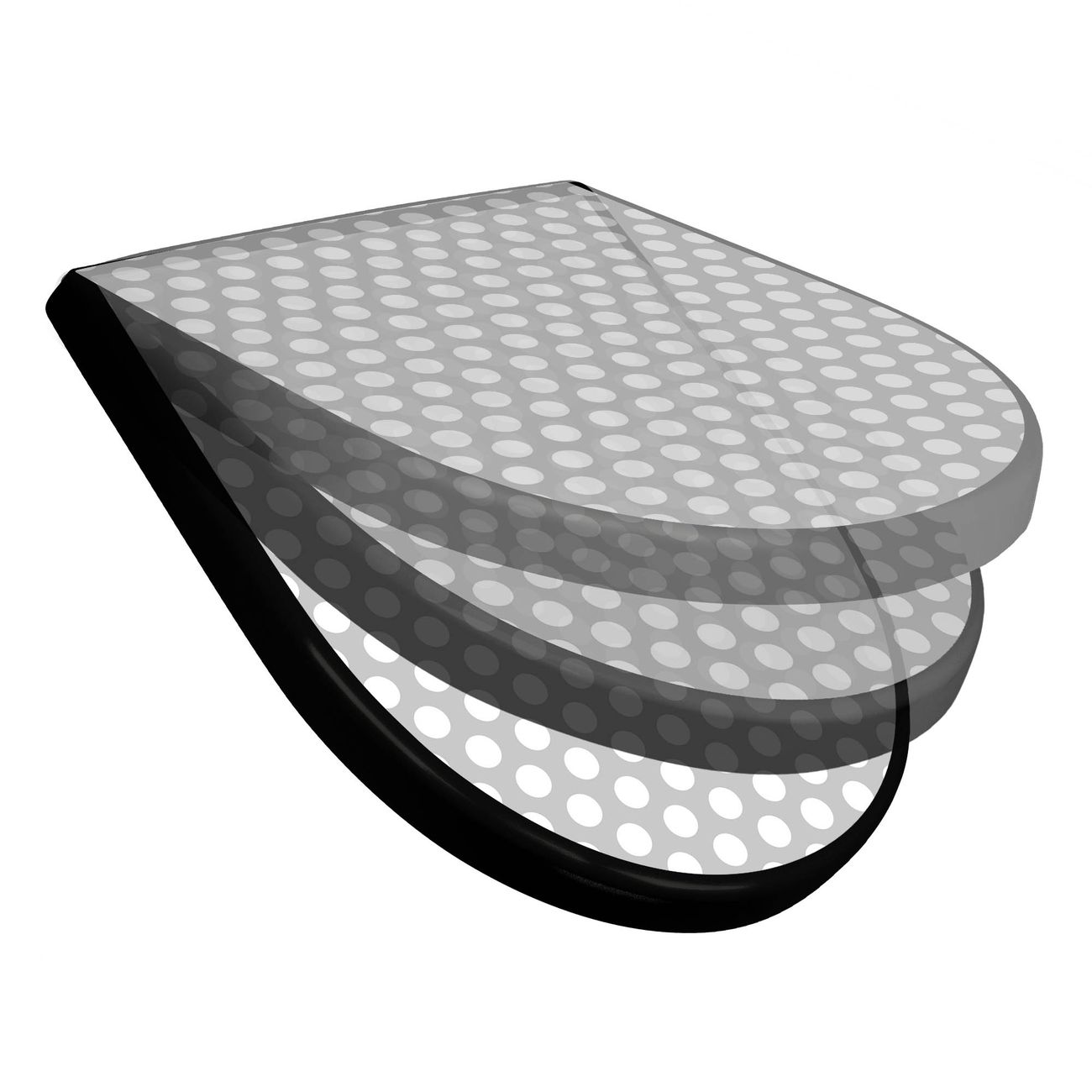 WC Sitz D-Form Schwarz mit Absenkautomatik Motiv Punkte Grau