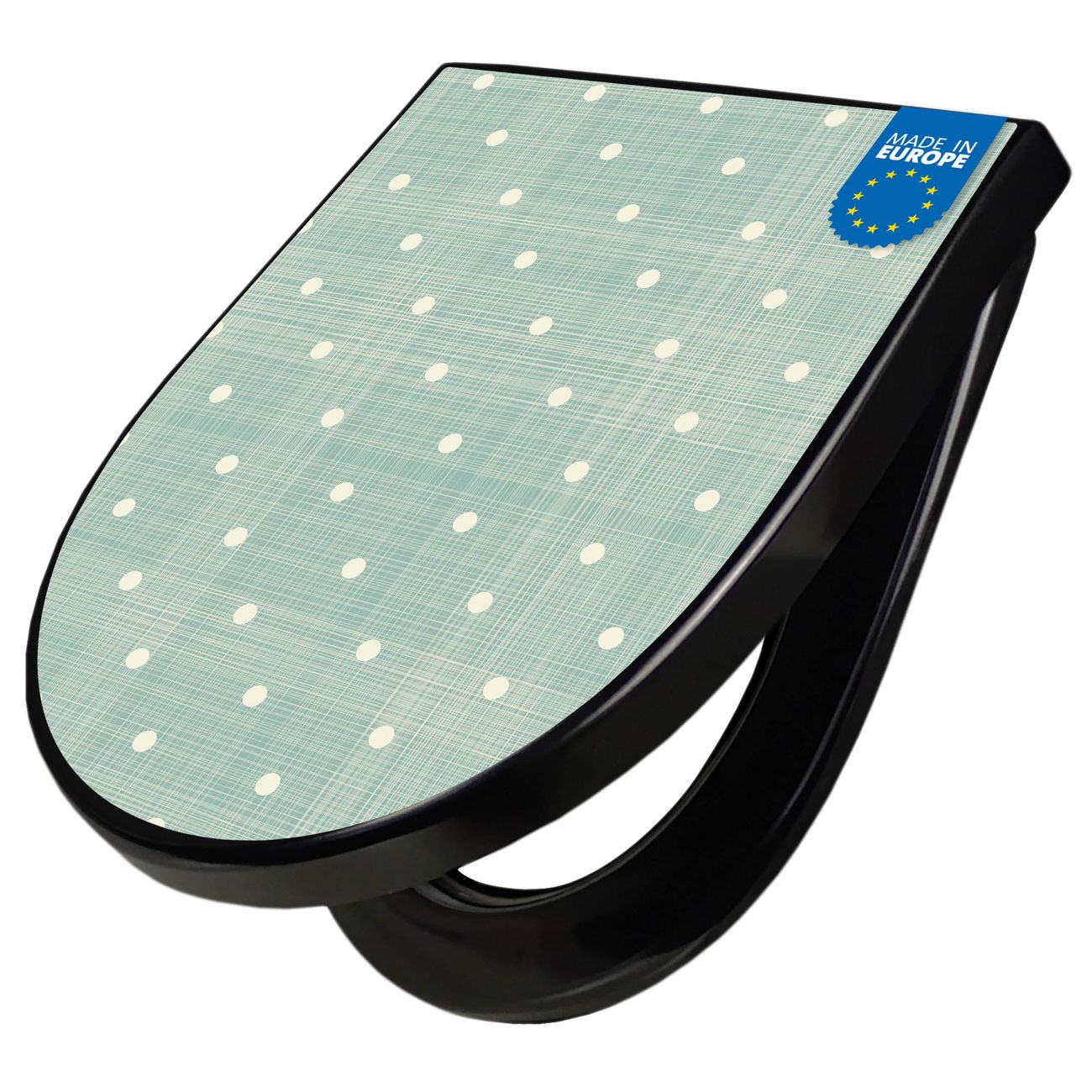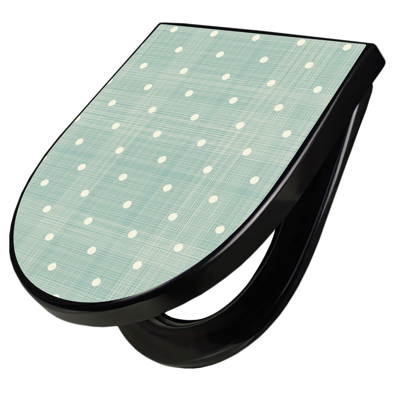 WC Sitz D-Form Schwarz mit Absenkautomatik Motiv Punkte Lindgrün