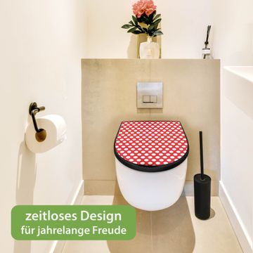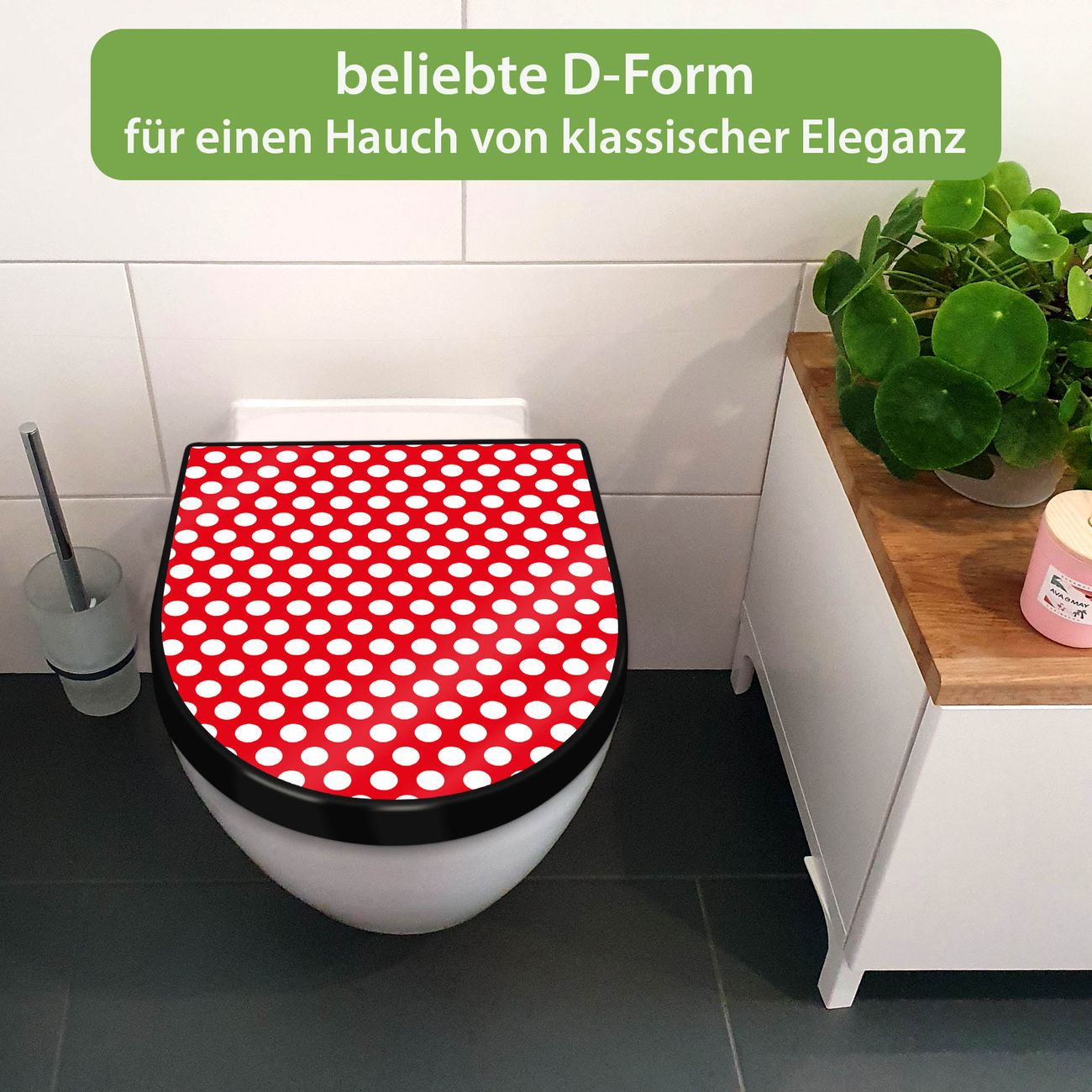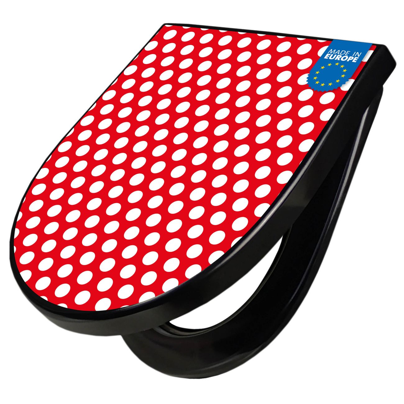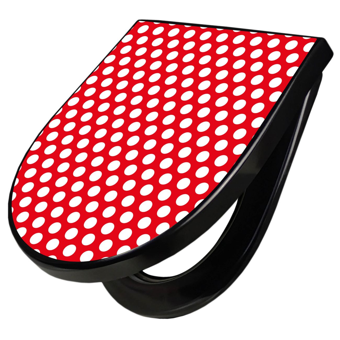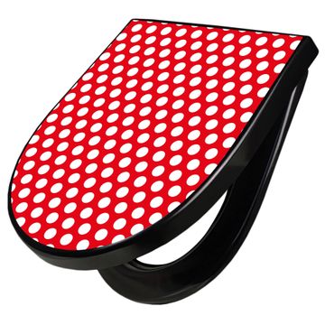 WC Sitz D-Form Schwarz mit Absenkautomatik Motiv Punkte Rot