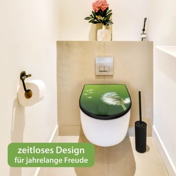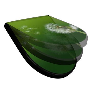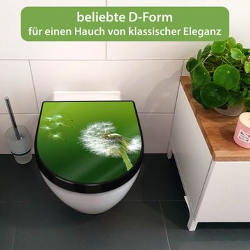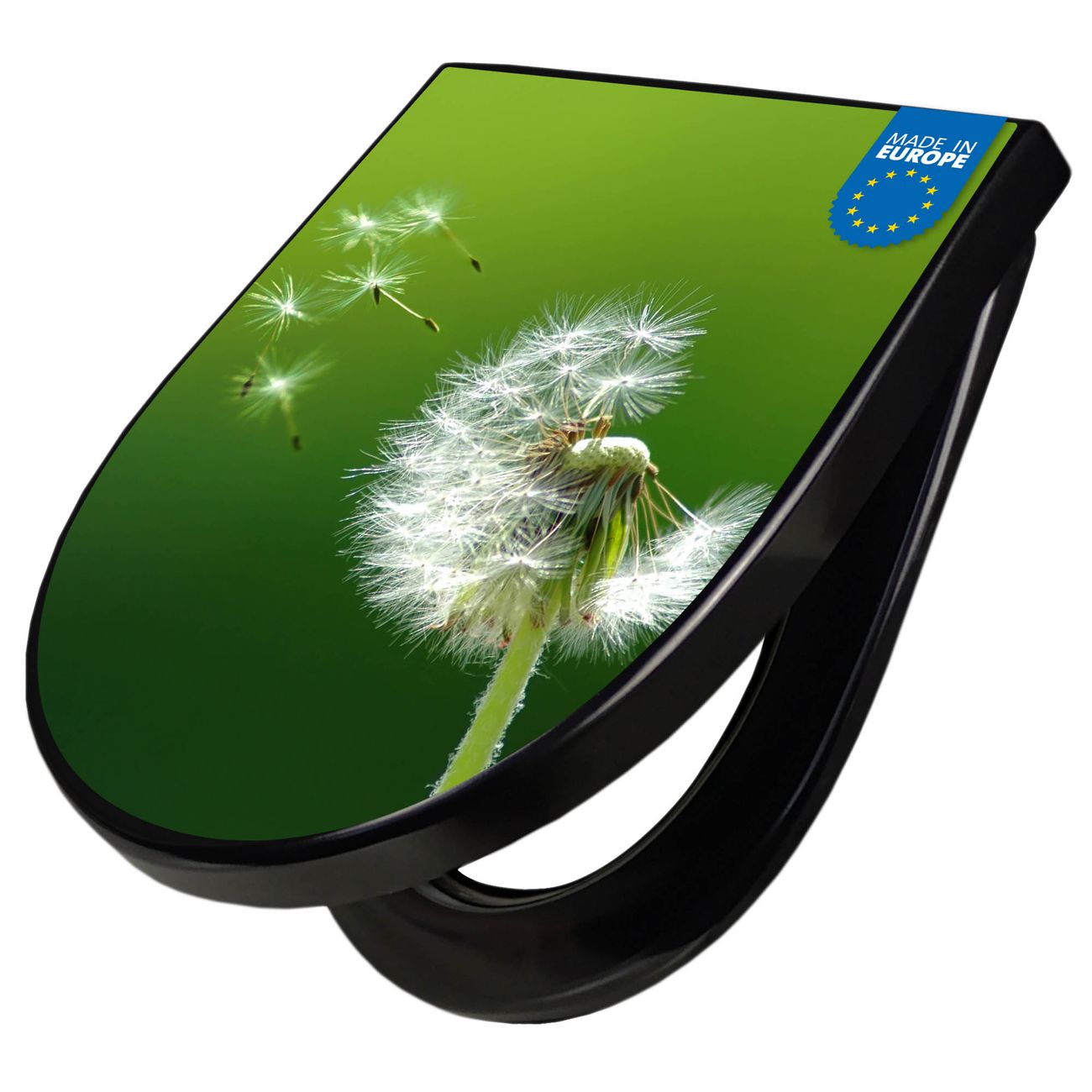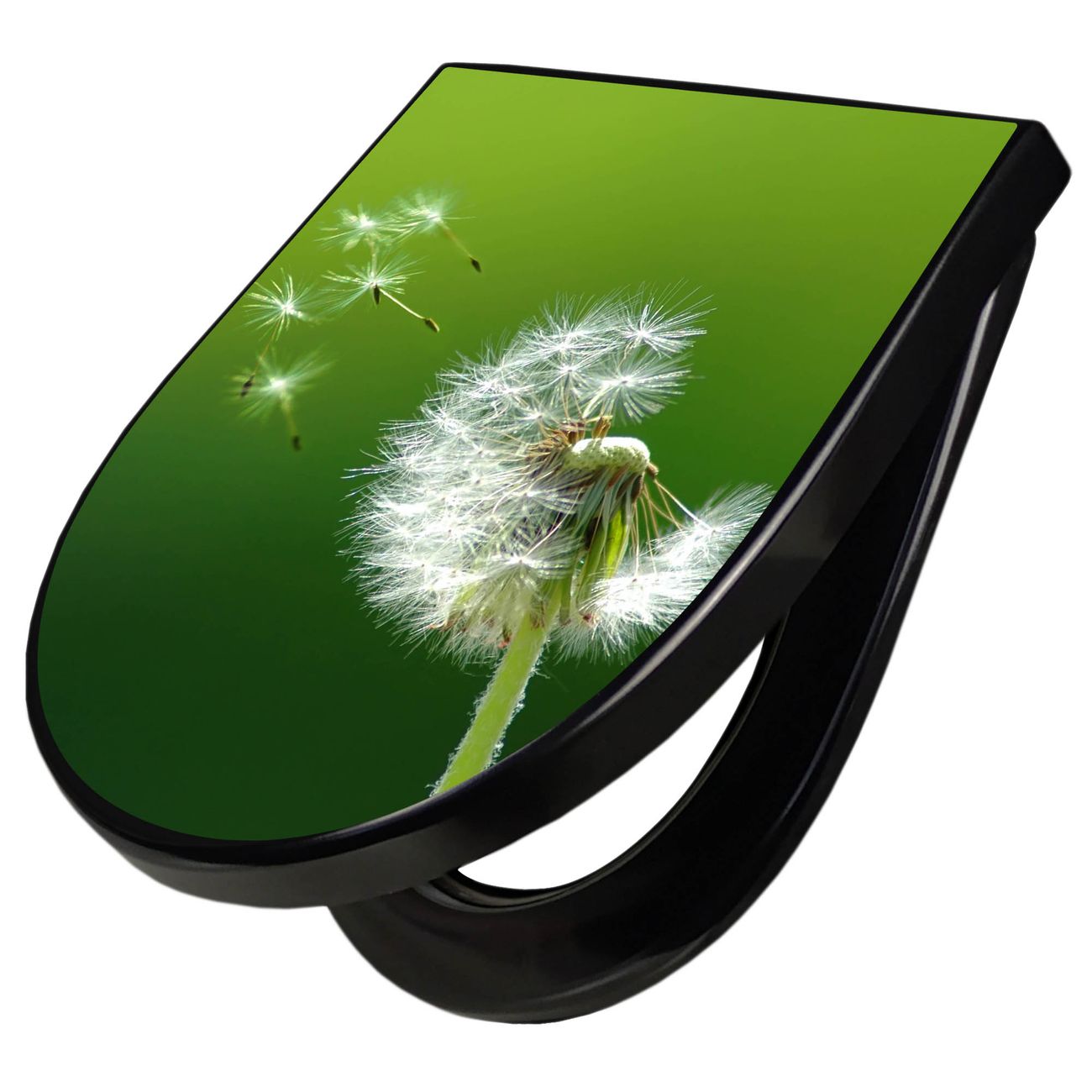 WC Sitz D-Form Schwarz mit Absenkautomatik Motiv Pusteblume