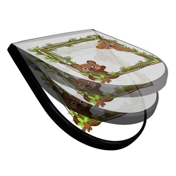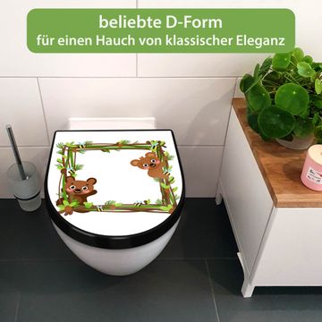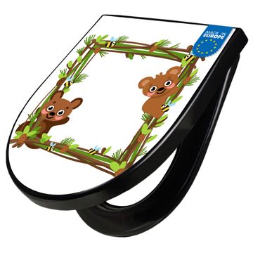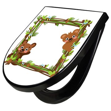 WC Sitz D-Form Schwarz mit Absenkautomatik Motiv Rahmen Bären und Bienen