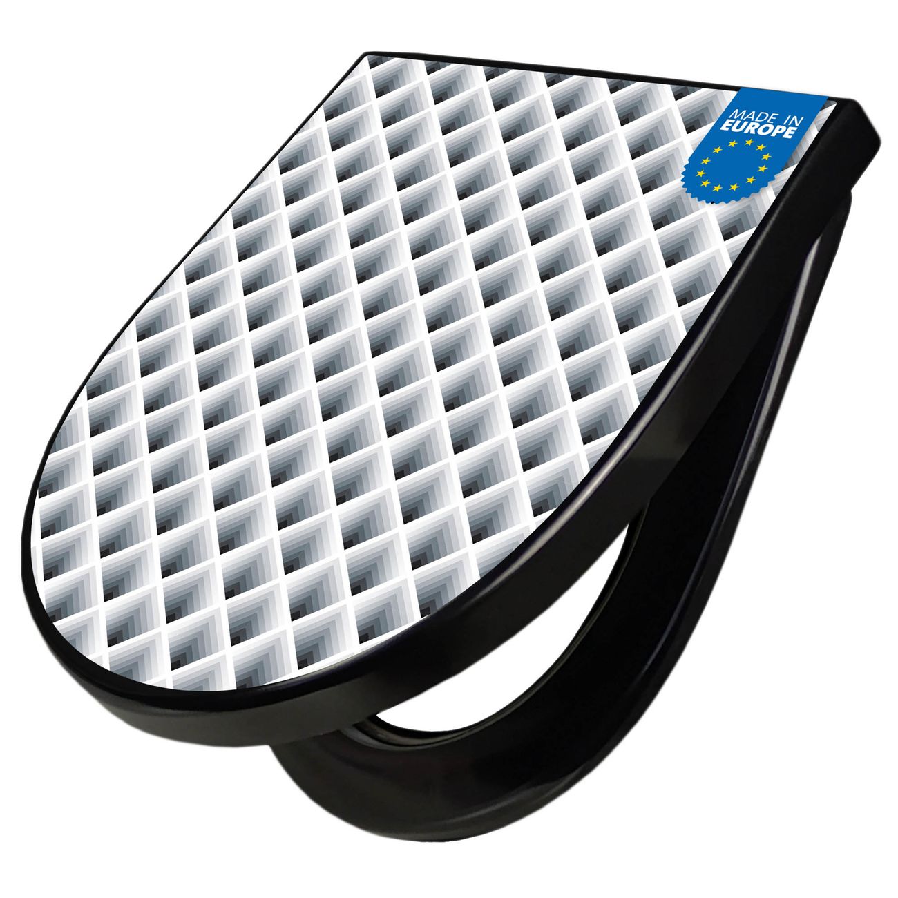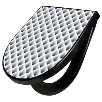 WC Sitz D-Form Schwarz mit Absenkautomatik Motiv Raster 3D Grau