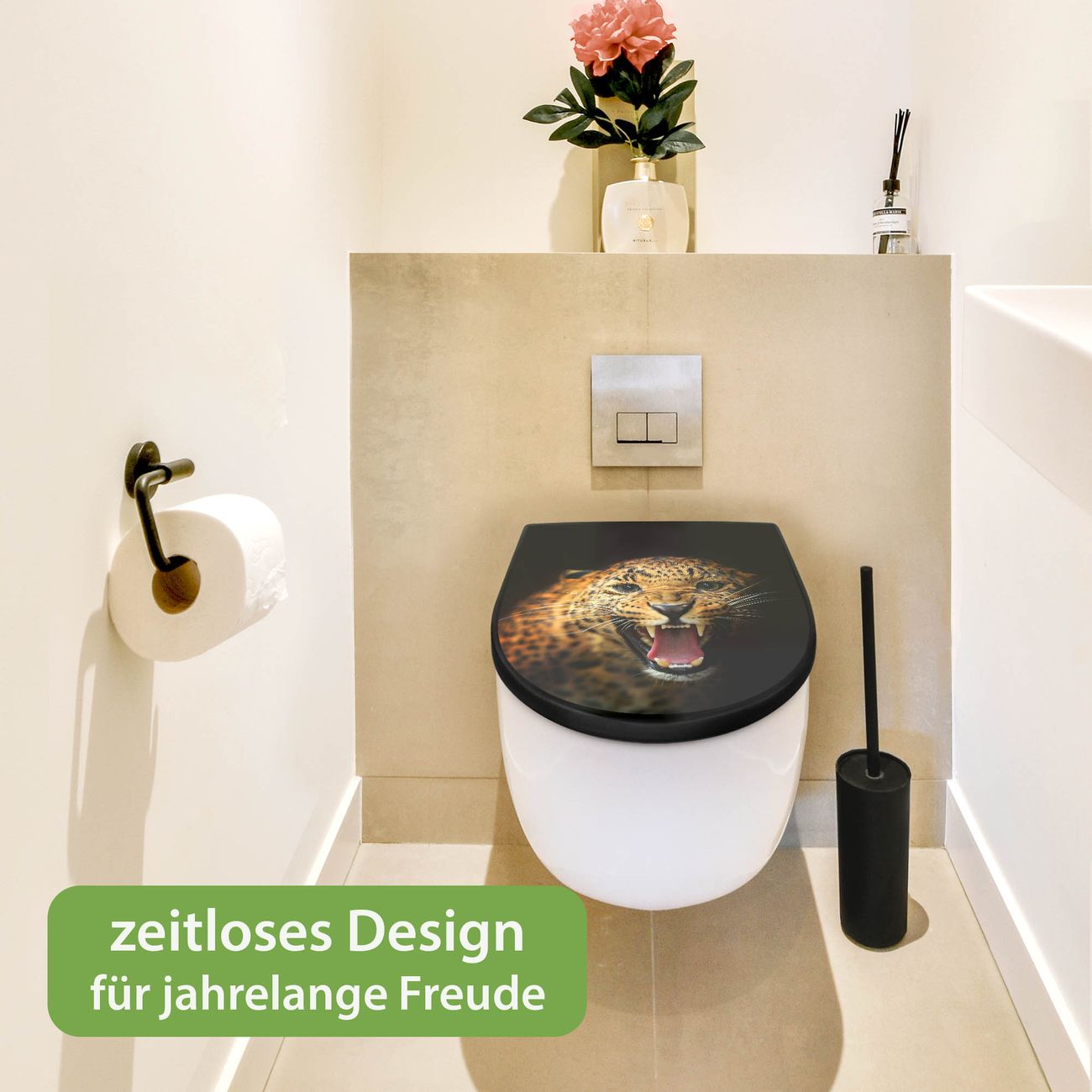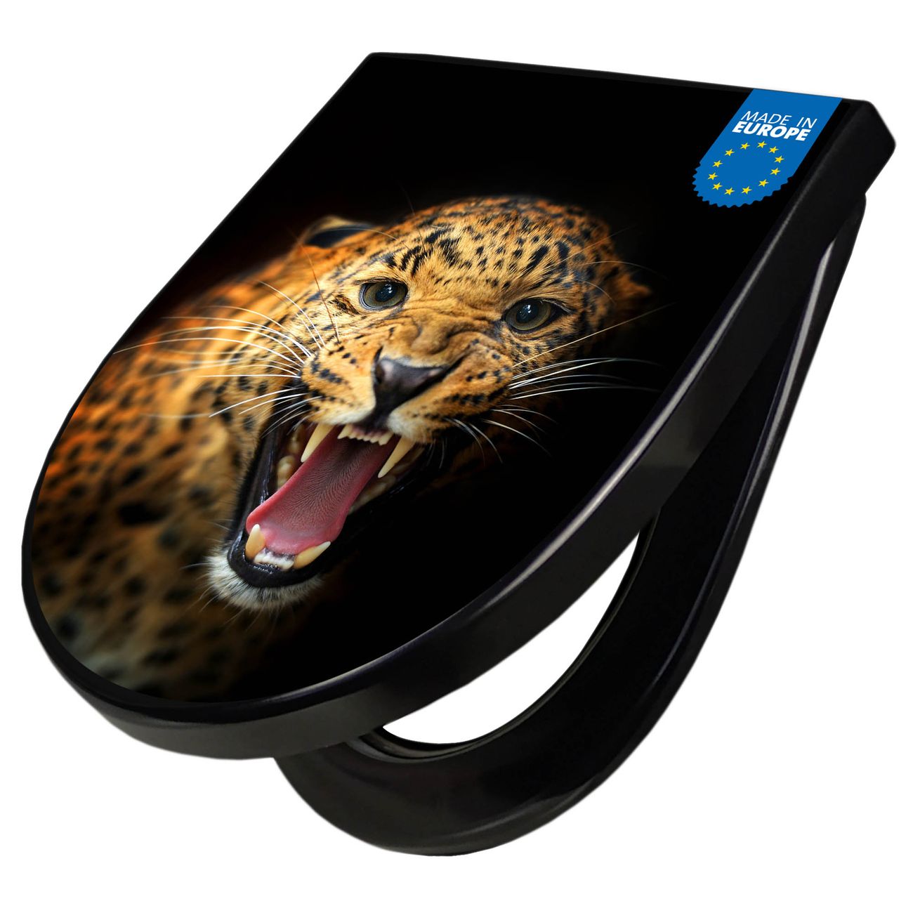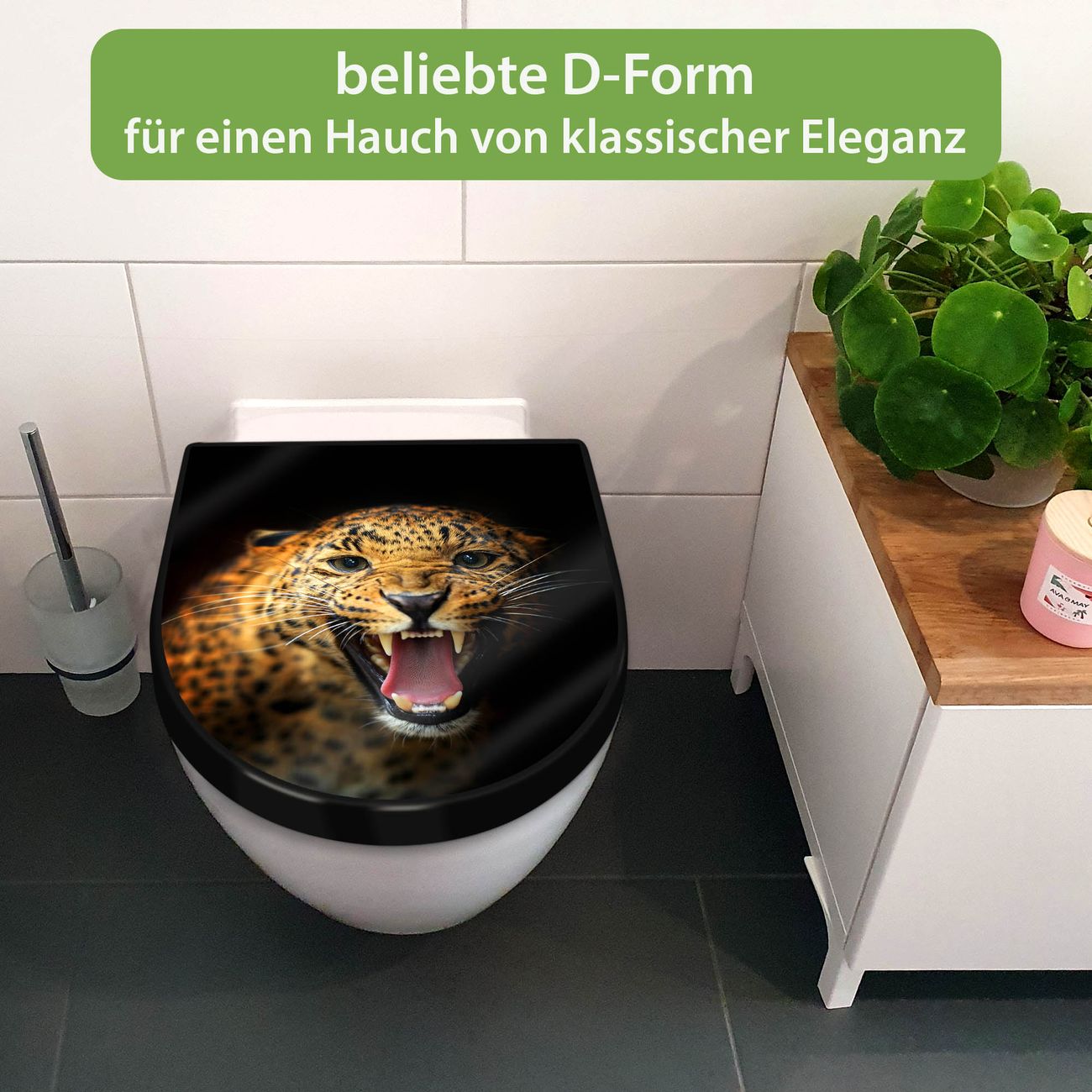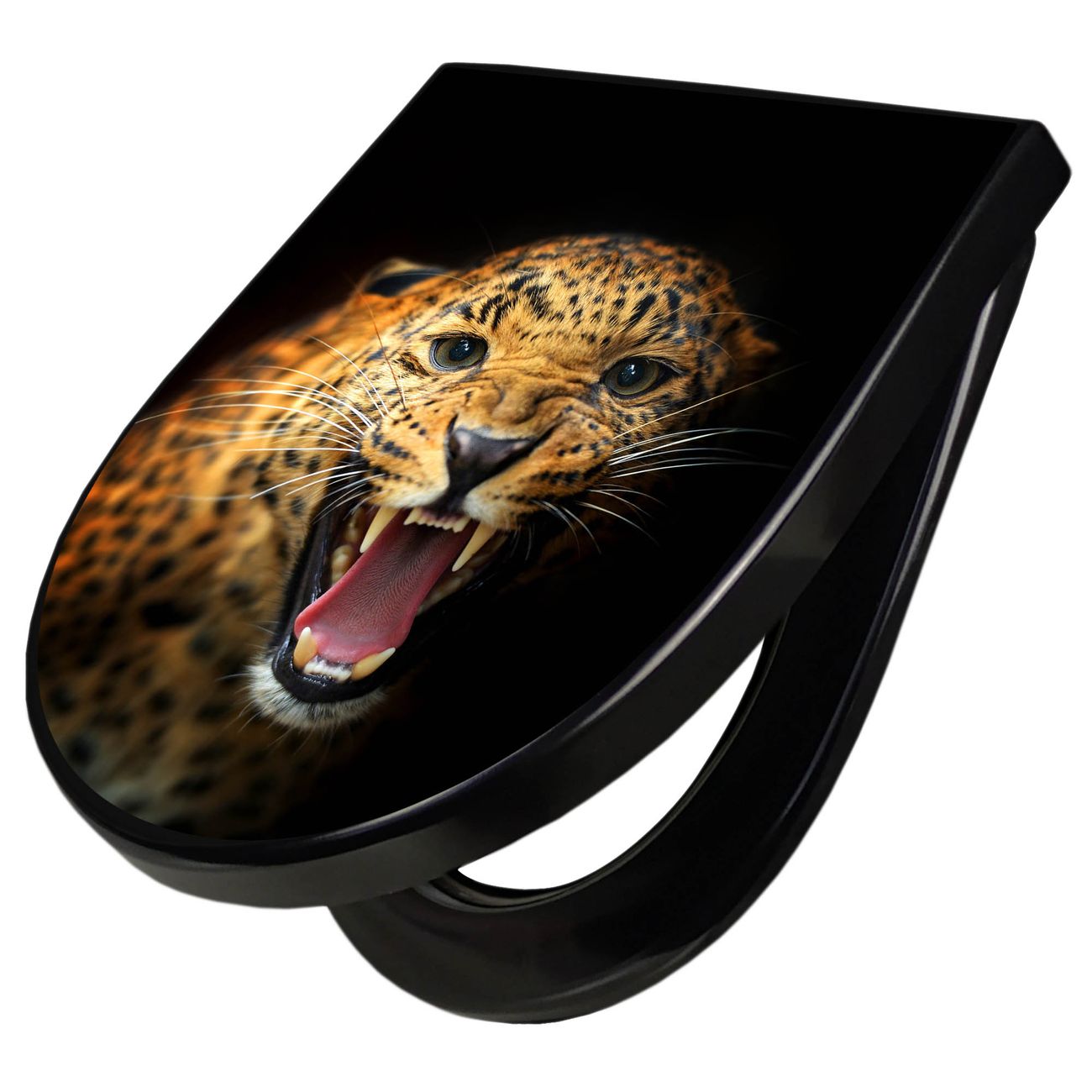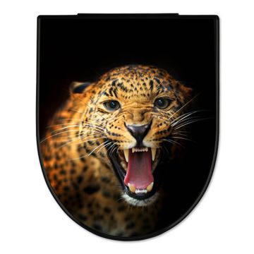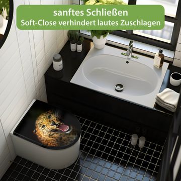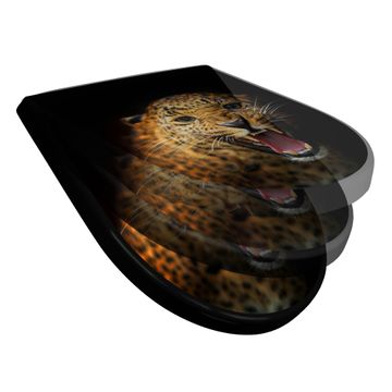 WC Sitz D-Form Schwarz mit Absenkautomatik Motiv Raubkatze