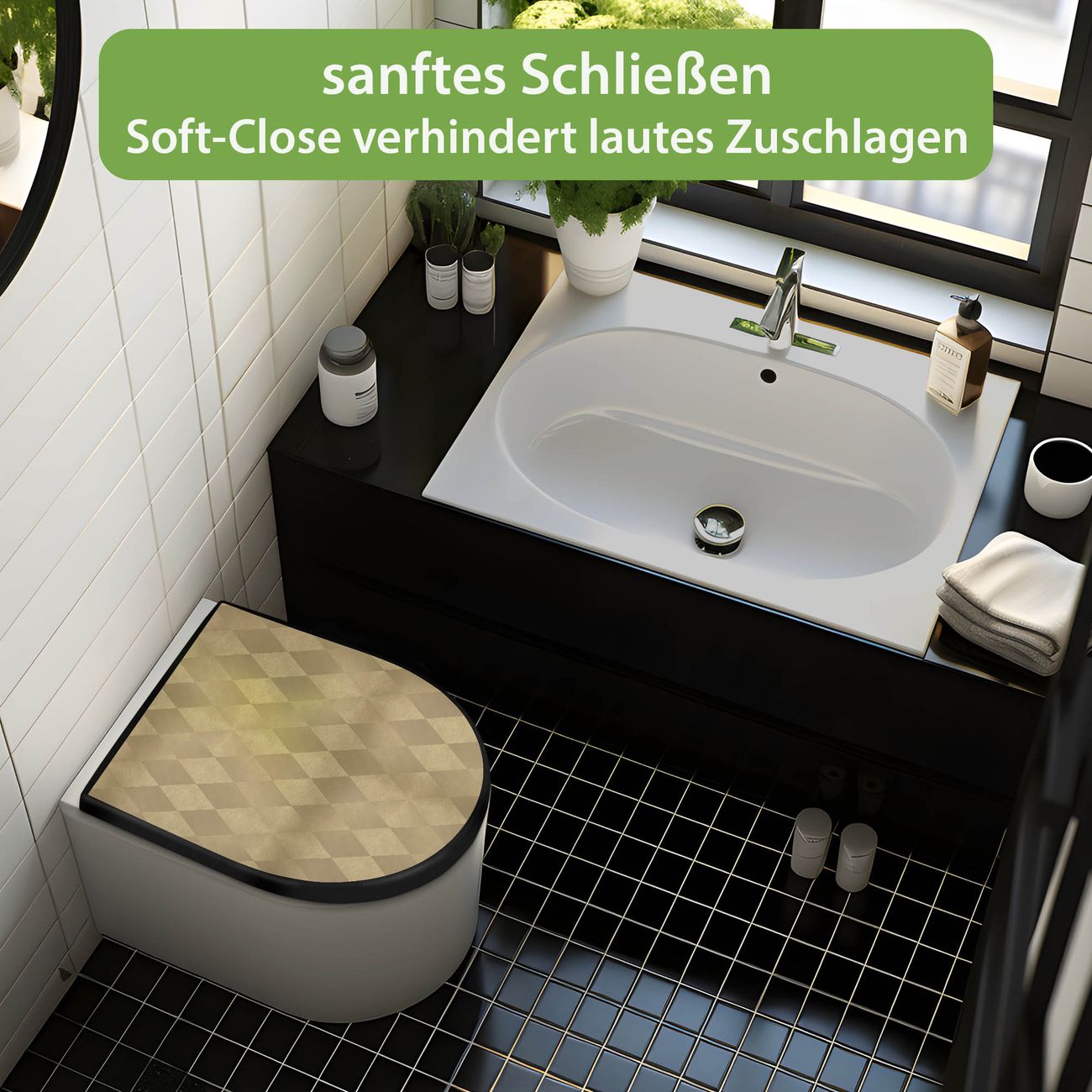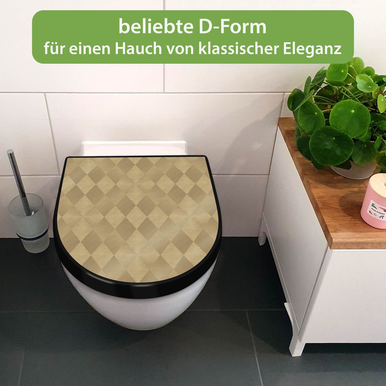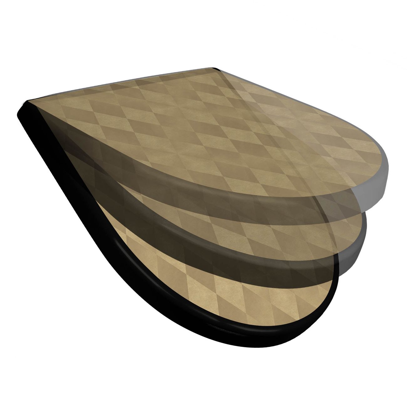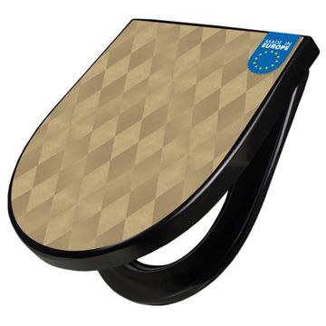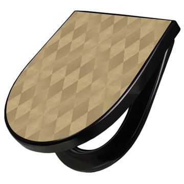 WC Sitz D-Form Schwarz mit Absenkautomatik Motiv Rauten Metall