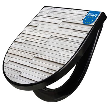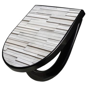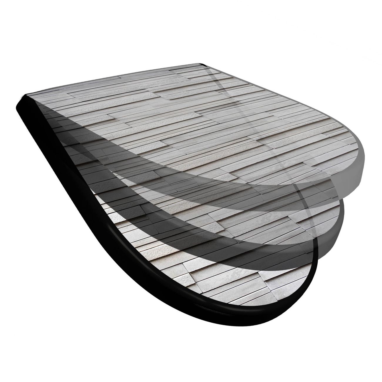 WC Sitz D-Form Schwarz mit Absenkautomatik Motiv Relief