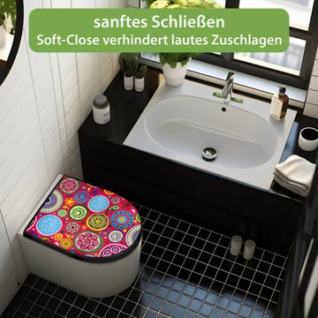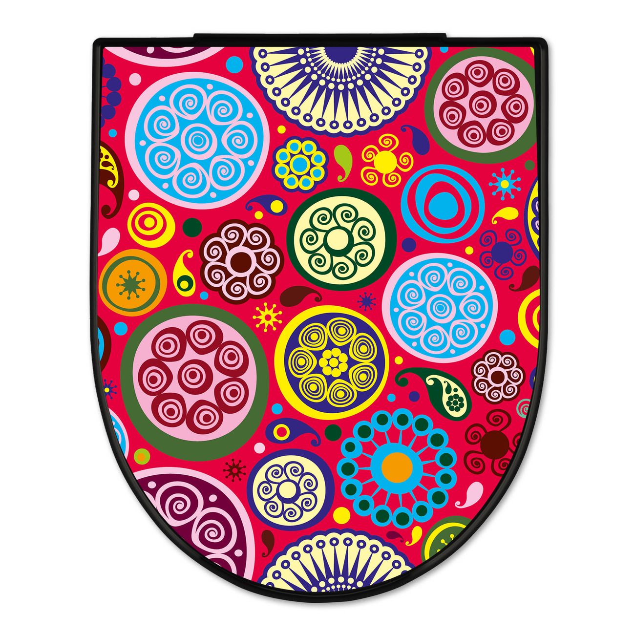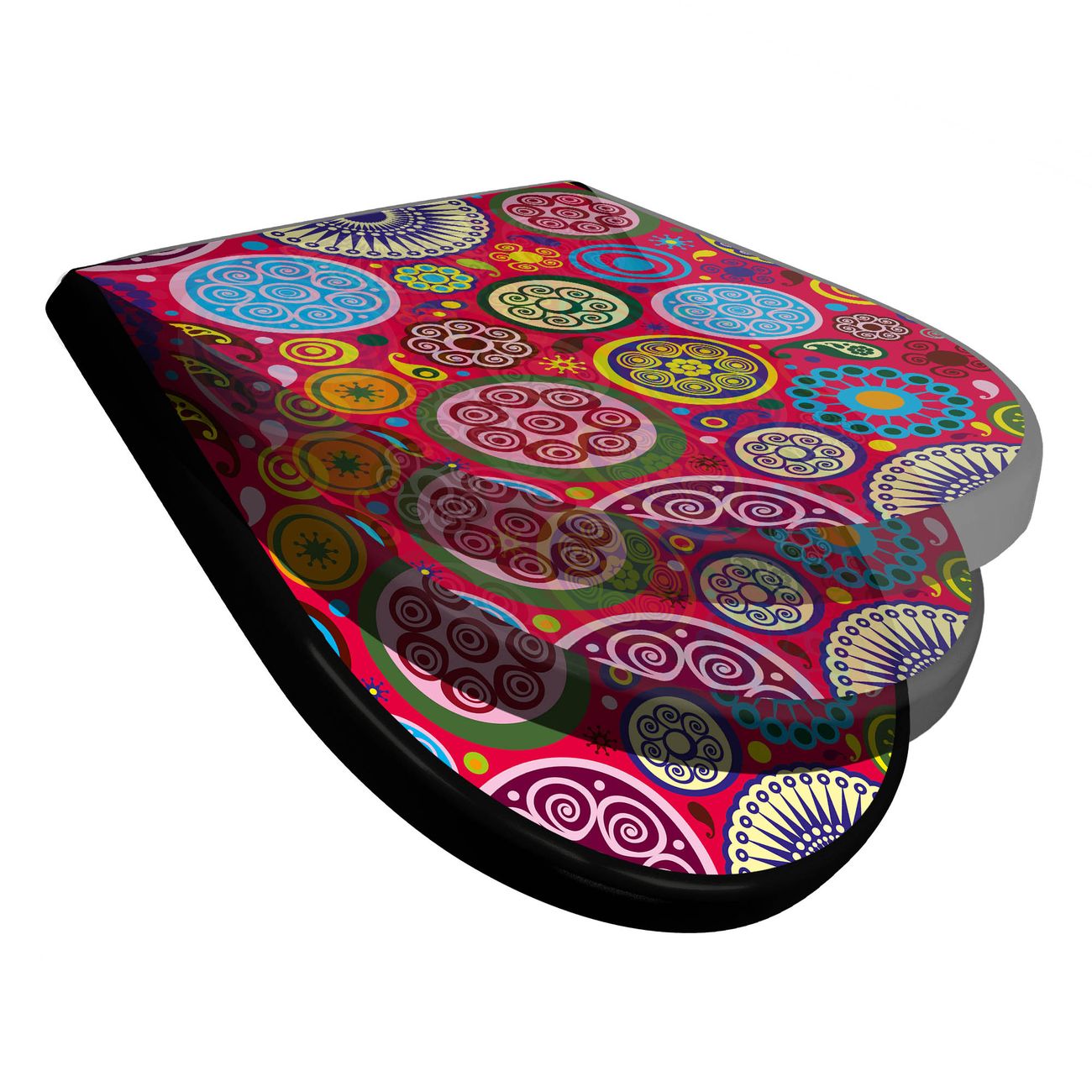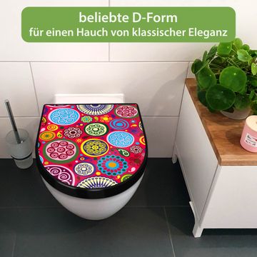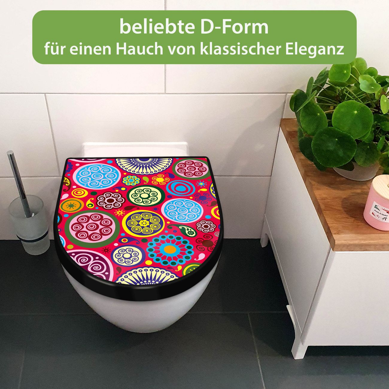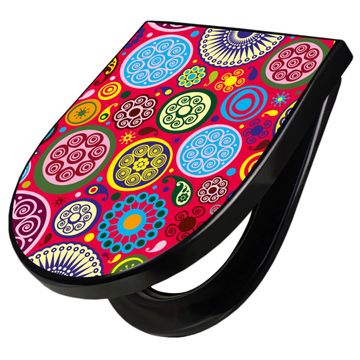 WC Sitz D-Form Schwarz mit Absenkautomatik Motiv Retro Kreise