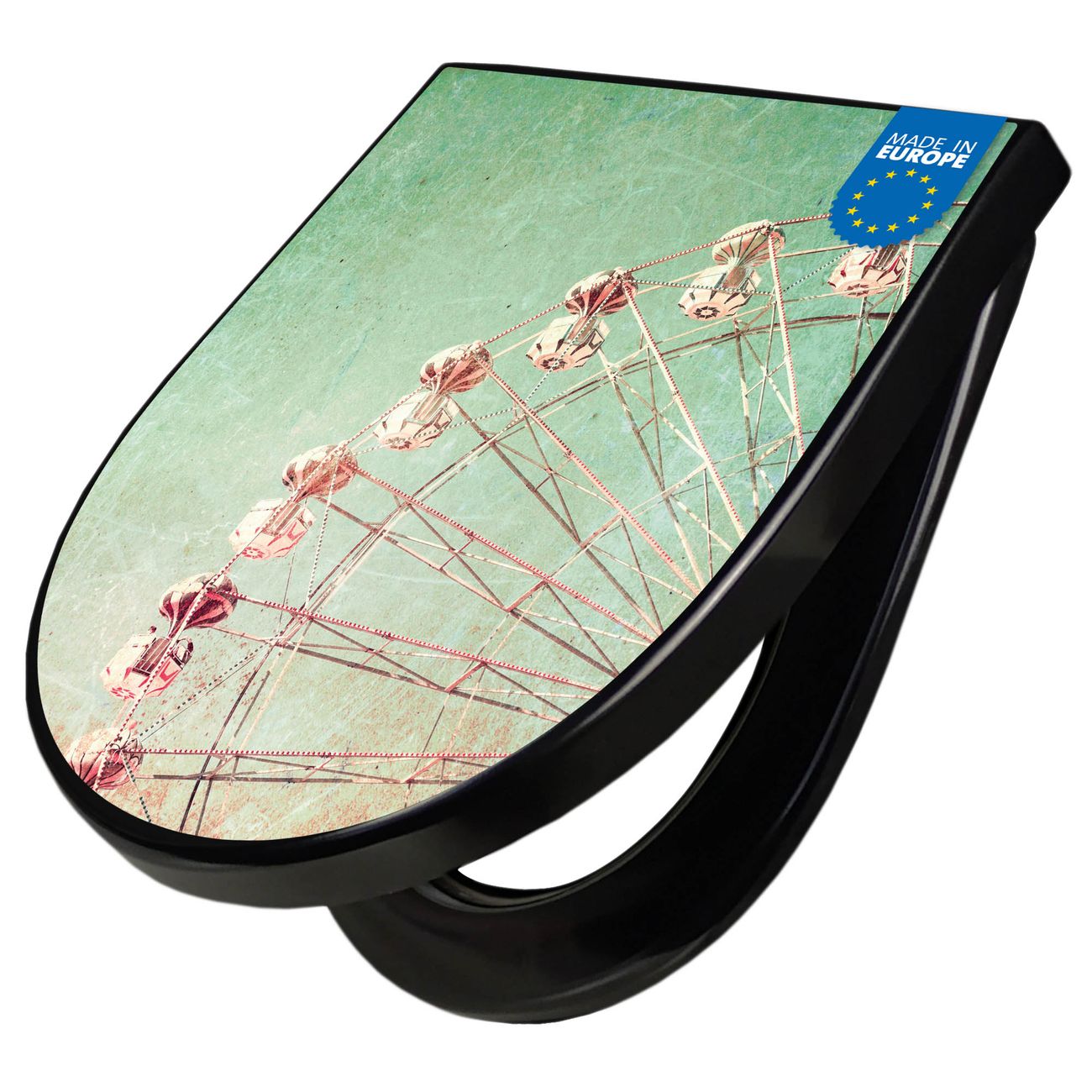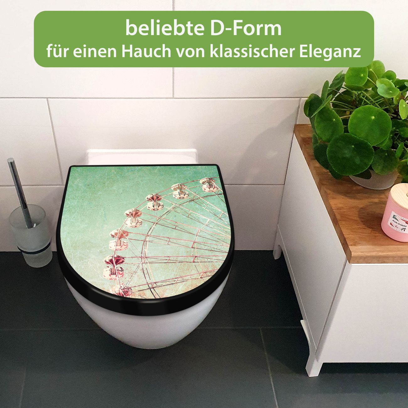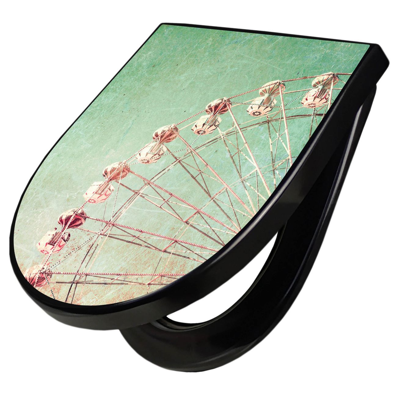 WC Sitz D-Form Schwarz mit Absenkautomatik Motiv Riesenrad 1