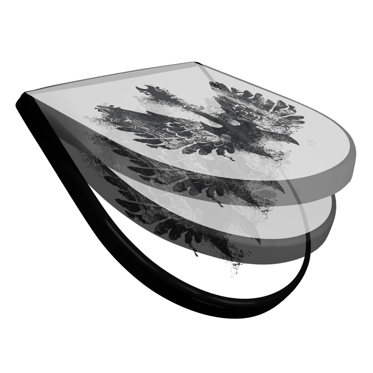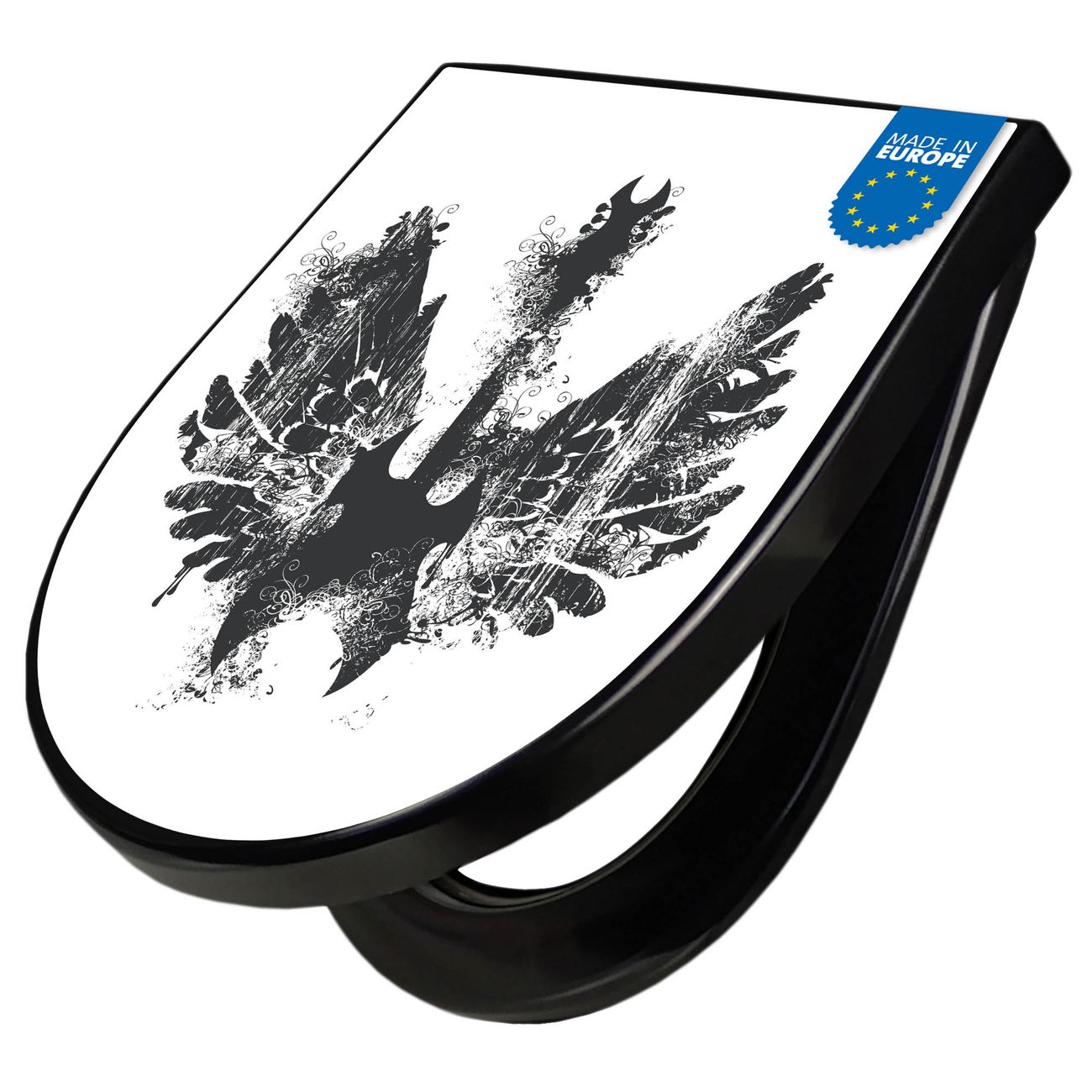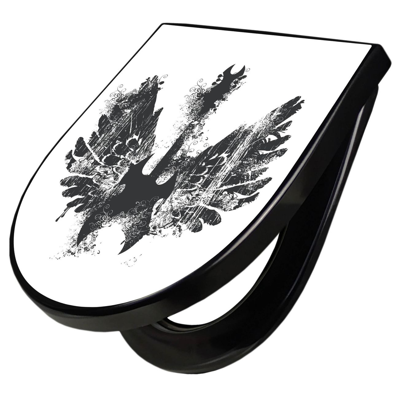 WC Sitz D-Form Schwarz mit Absenkautomatik Motiv Rock Gitarre Flügel