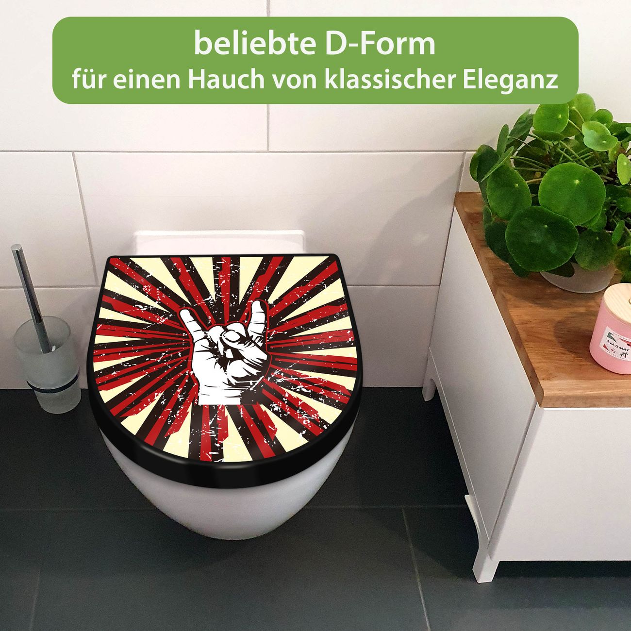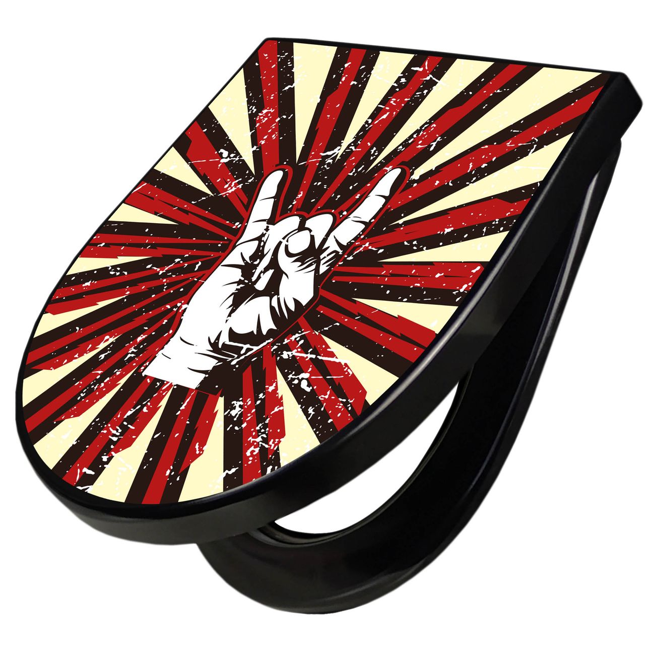 WC Sitz D-Form Schwarz mit Absenkautomatik Motiv Rock On