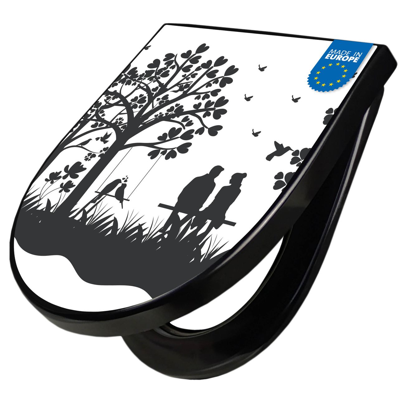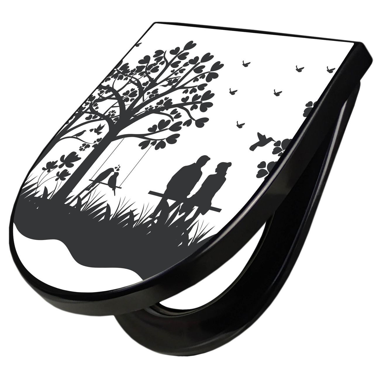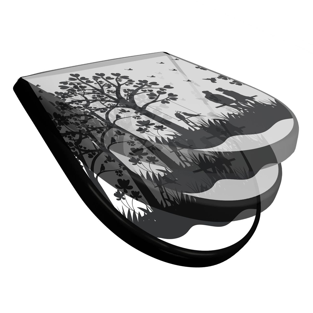 WC Sitz D-Form Schwarz mit Absenkautomatik Motiv Romantische Silhouette im Park