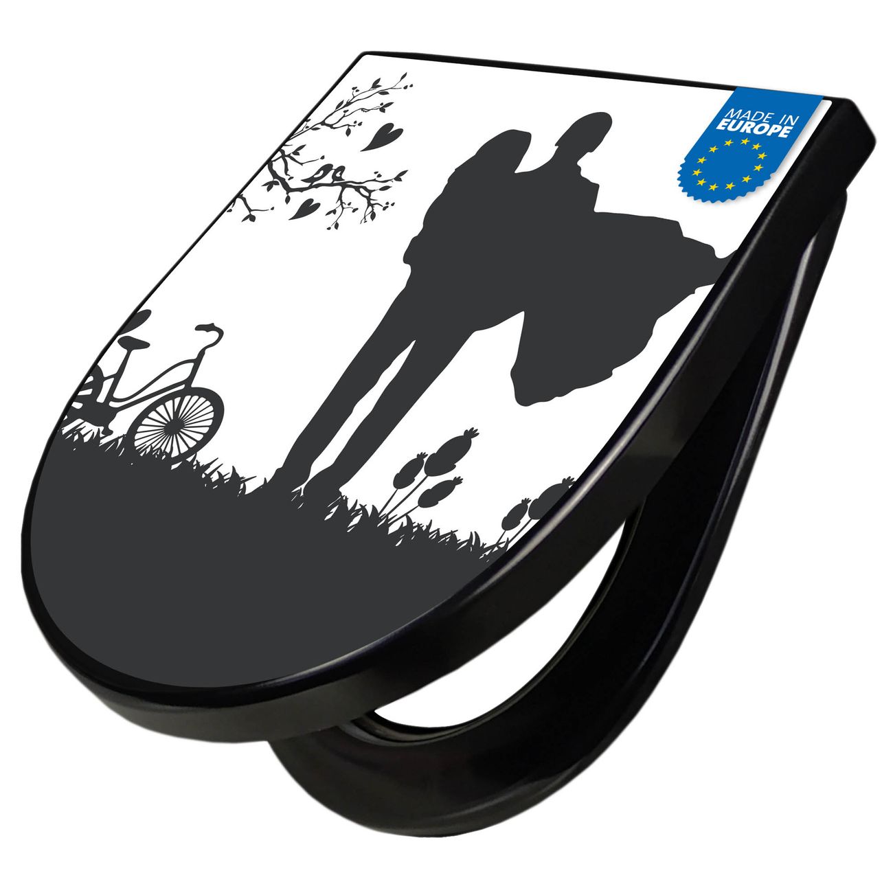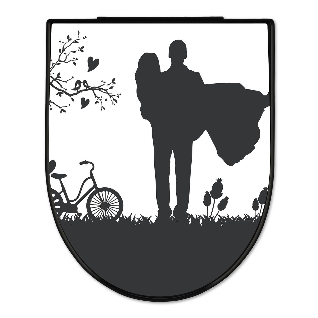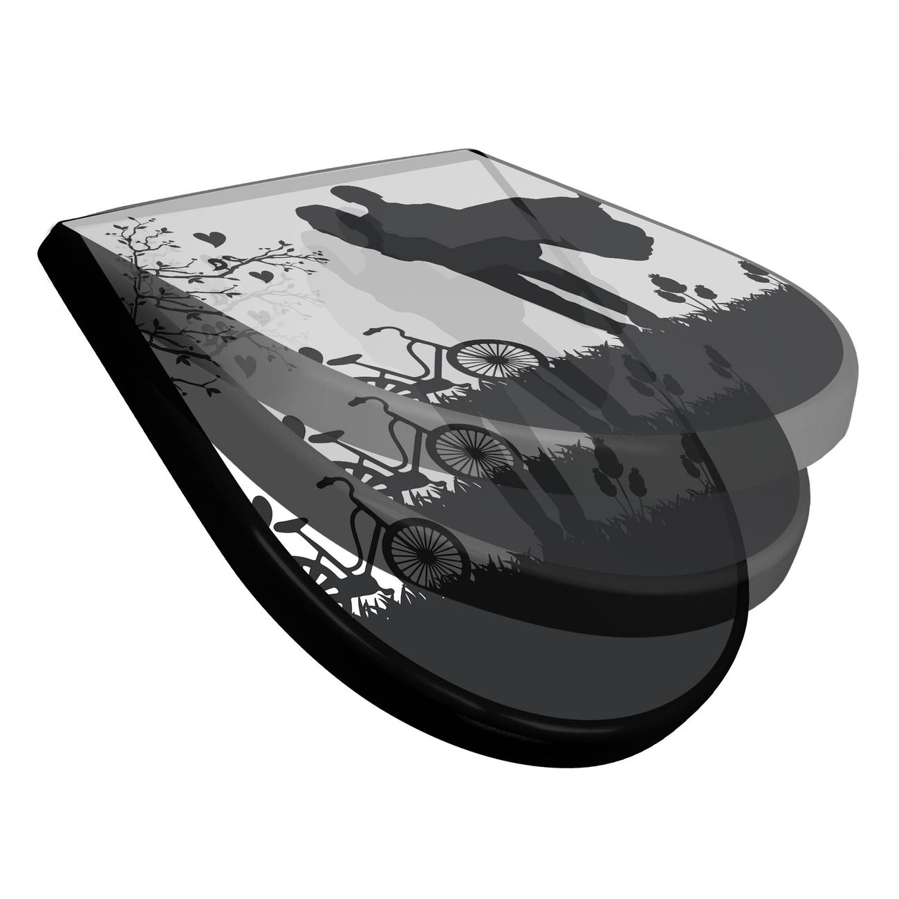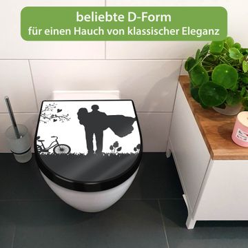 WC Sitz D-Form Schwarz mit Absenkautomatik Motiv Romantische Silhouette